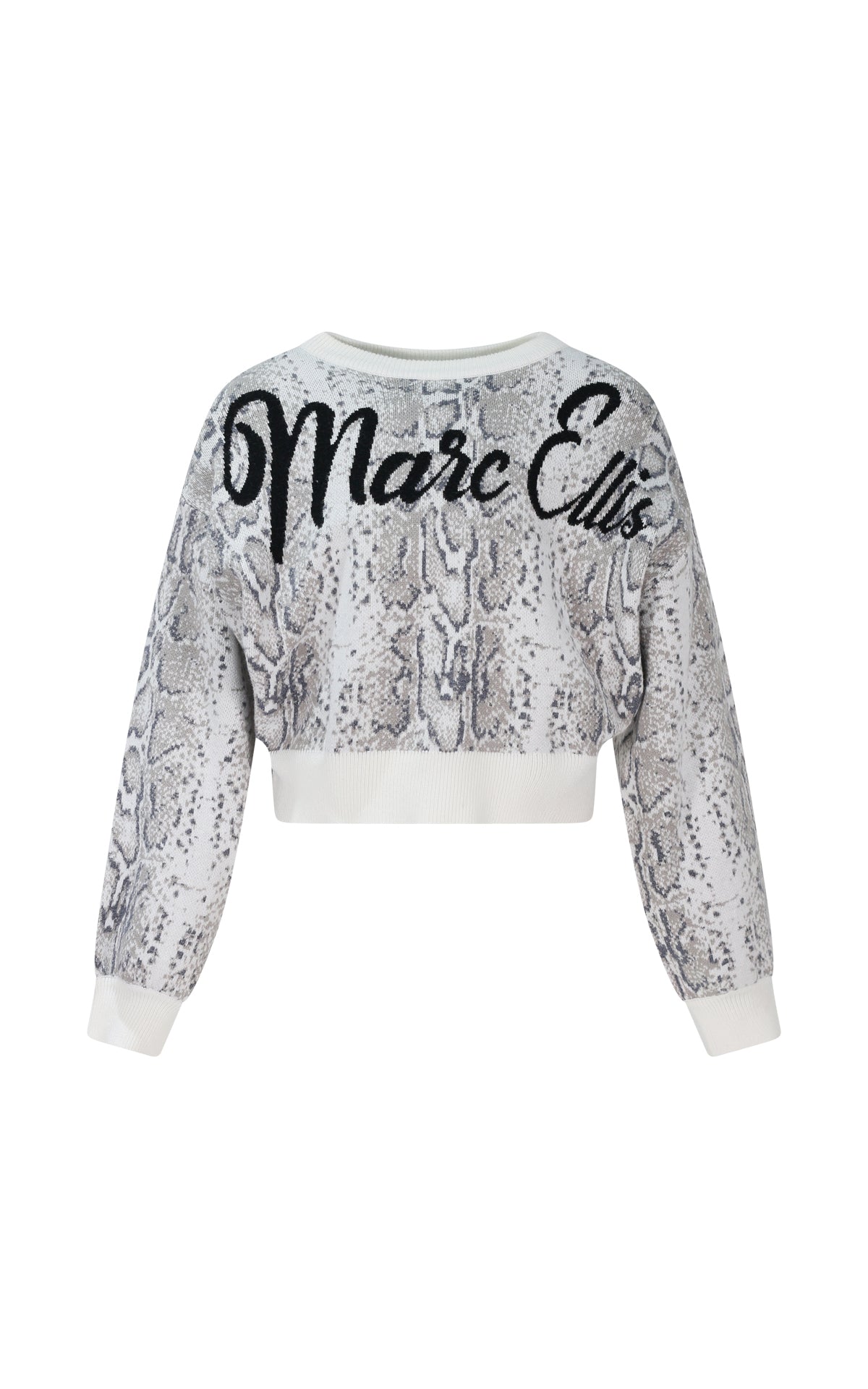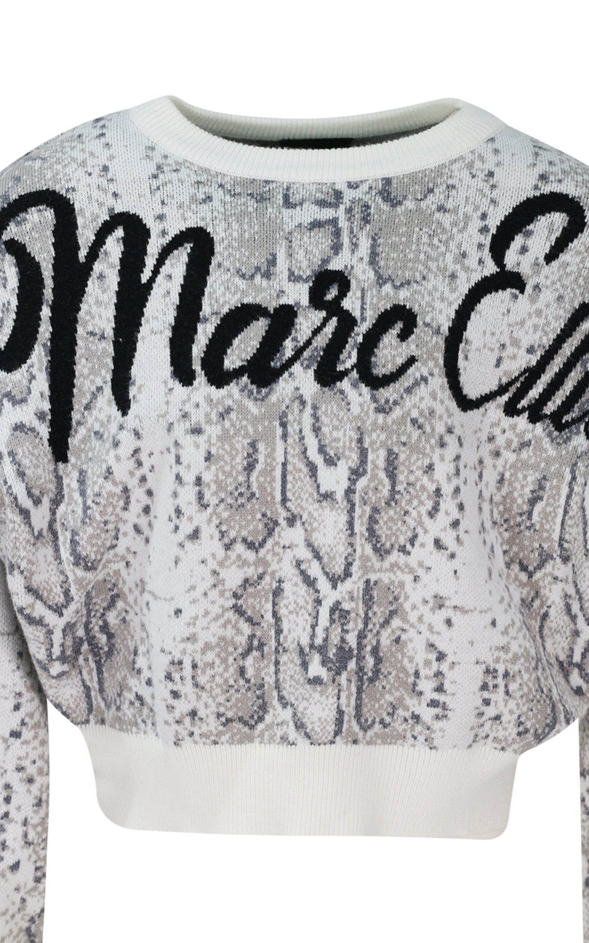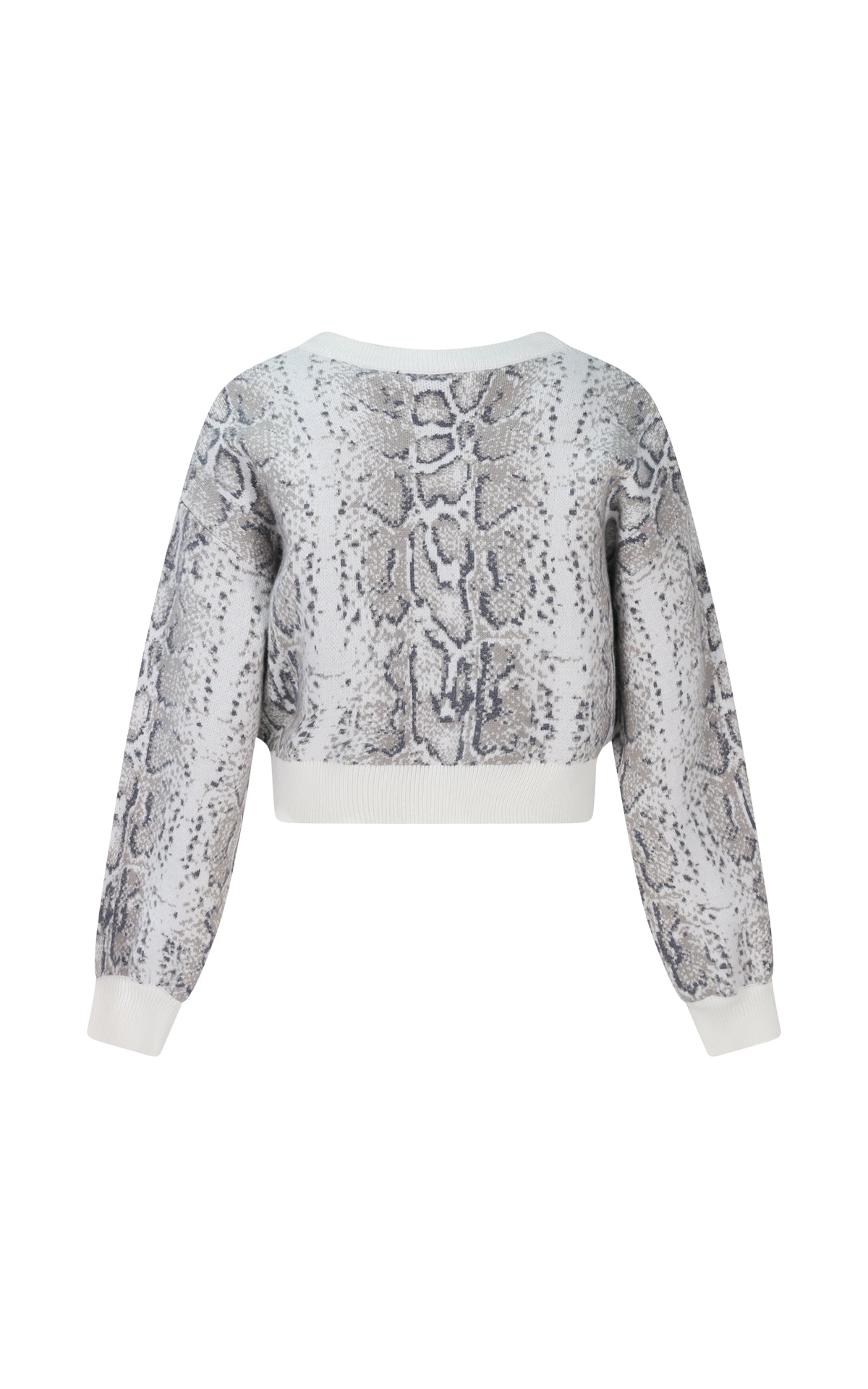 Maglioncino Cropped Over Girocollo con Manica a Sbuffo e Fantasy Pitonata
