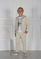 Il pantalone Siviglia che porta lo stile mediterraneo nel guardaroba bambino. Vestibilità classica e tessuti naturali di qualità.