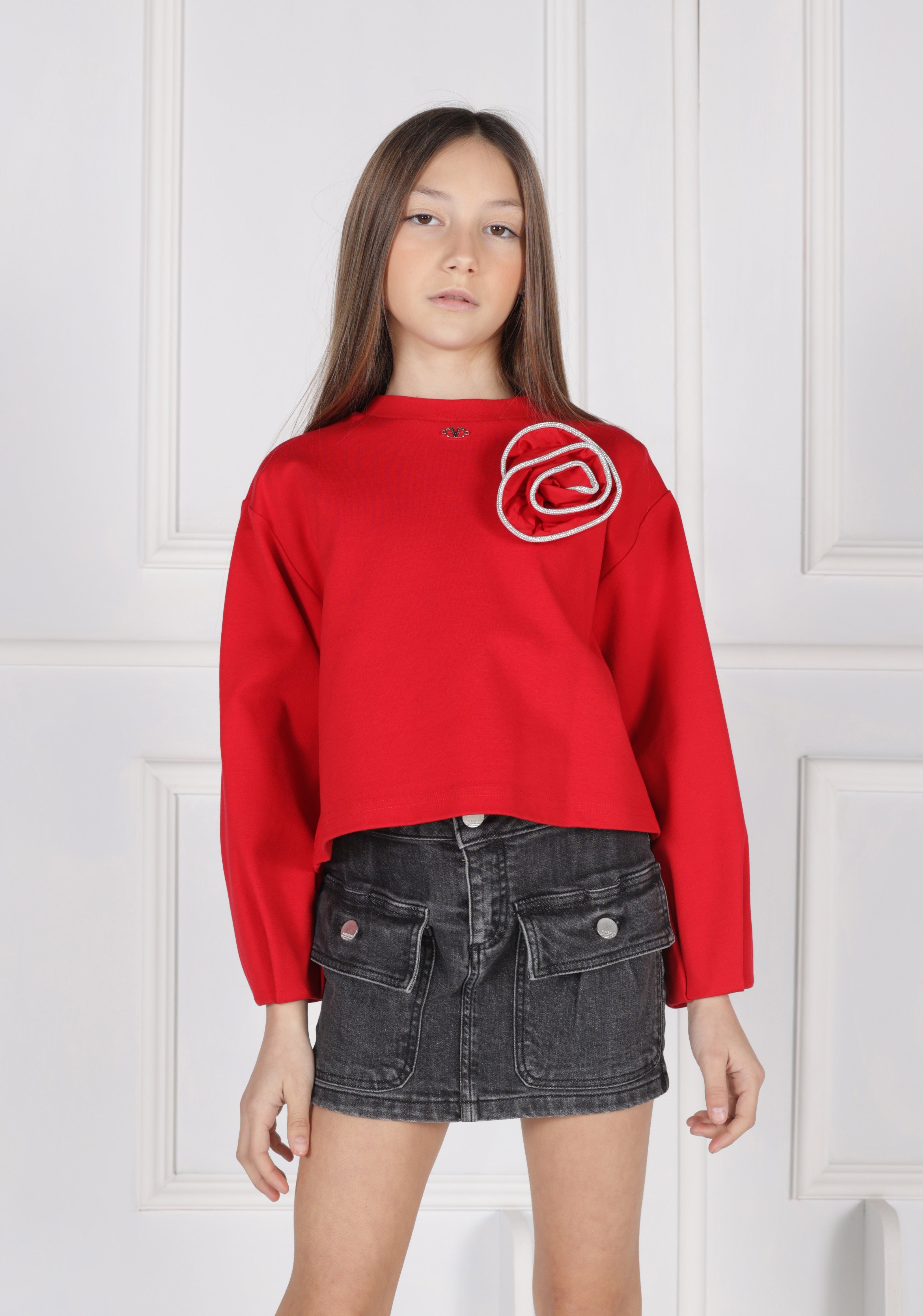 Felpa Girocollo Maniche Lunghe con Applicazioni Strass