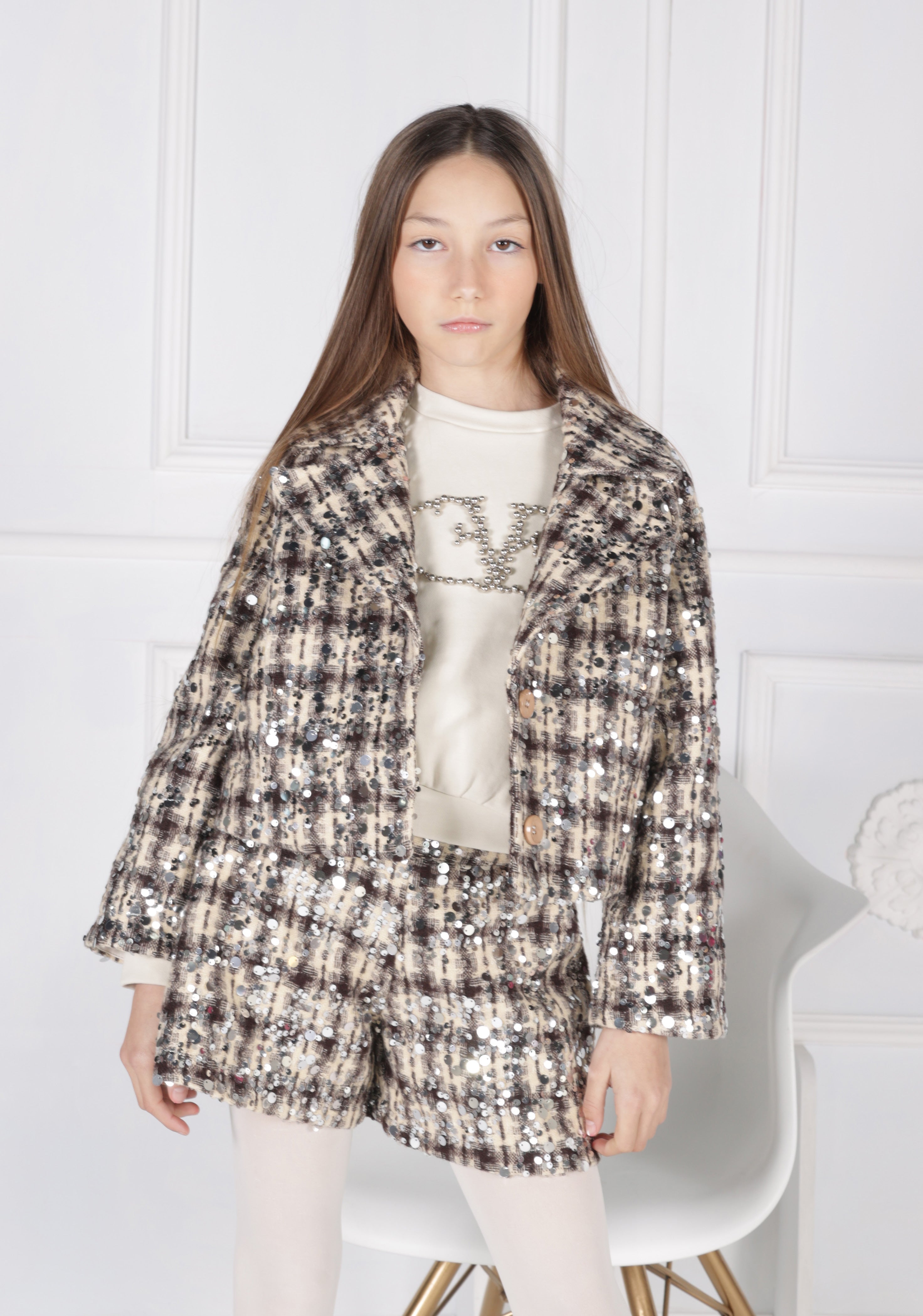 Felpa Over con Collo Alto, Inserti in Paillettes e Ricamo Logo sul Davanti