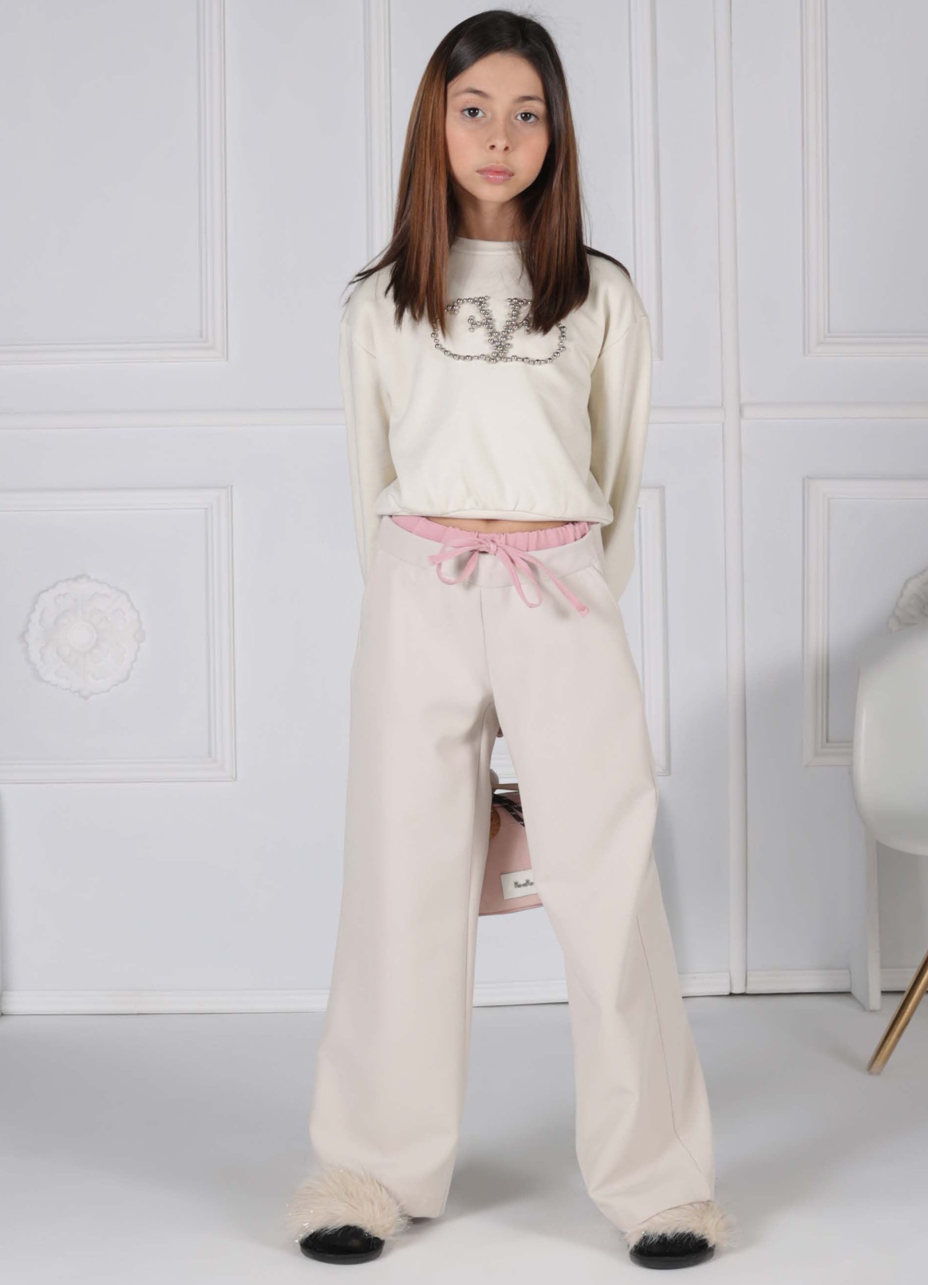Pantalone Jogger in Felpa con Elastico in Vita e Logo in Strass – Fondo con Polsini