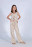 GILET A V IN TESSUTO MISTO COTONE FANTASIA RIGATO CON LAMINA GOLD CON CHIUSURA CENTRO DAVANTI A FIOCCO