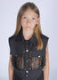 GILET LUNGO GIROMANICA IN TESSUTO COTONE EFFETTO UNCINETTO CON ACCESSORIO CINTA A TRECCIA ABBINATA AL CAPO