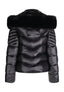 Giubbino Modello Chiodo in Ecopelliccia con Inserti in Ecopelle e Zip in Metallo