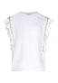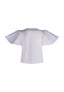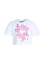 Maglietta Lupetto Elasticizzata con Arriccio e Fiori in Tessuto