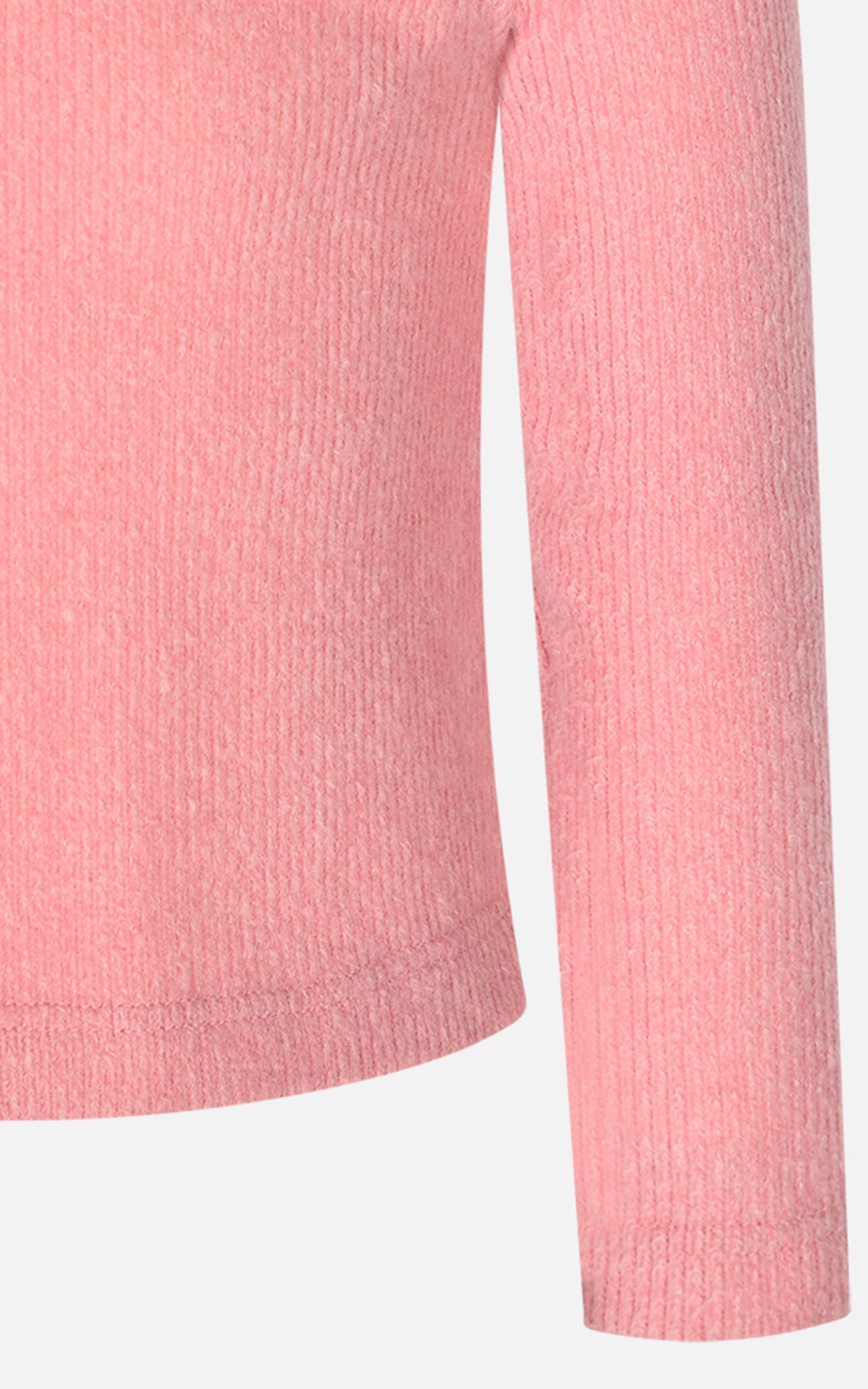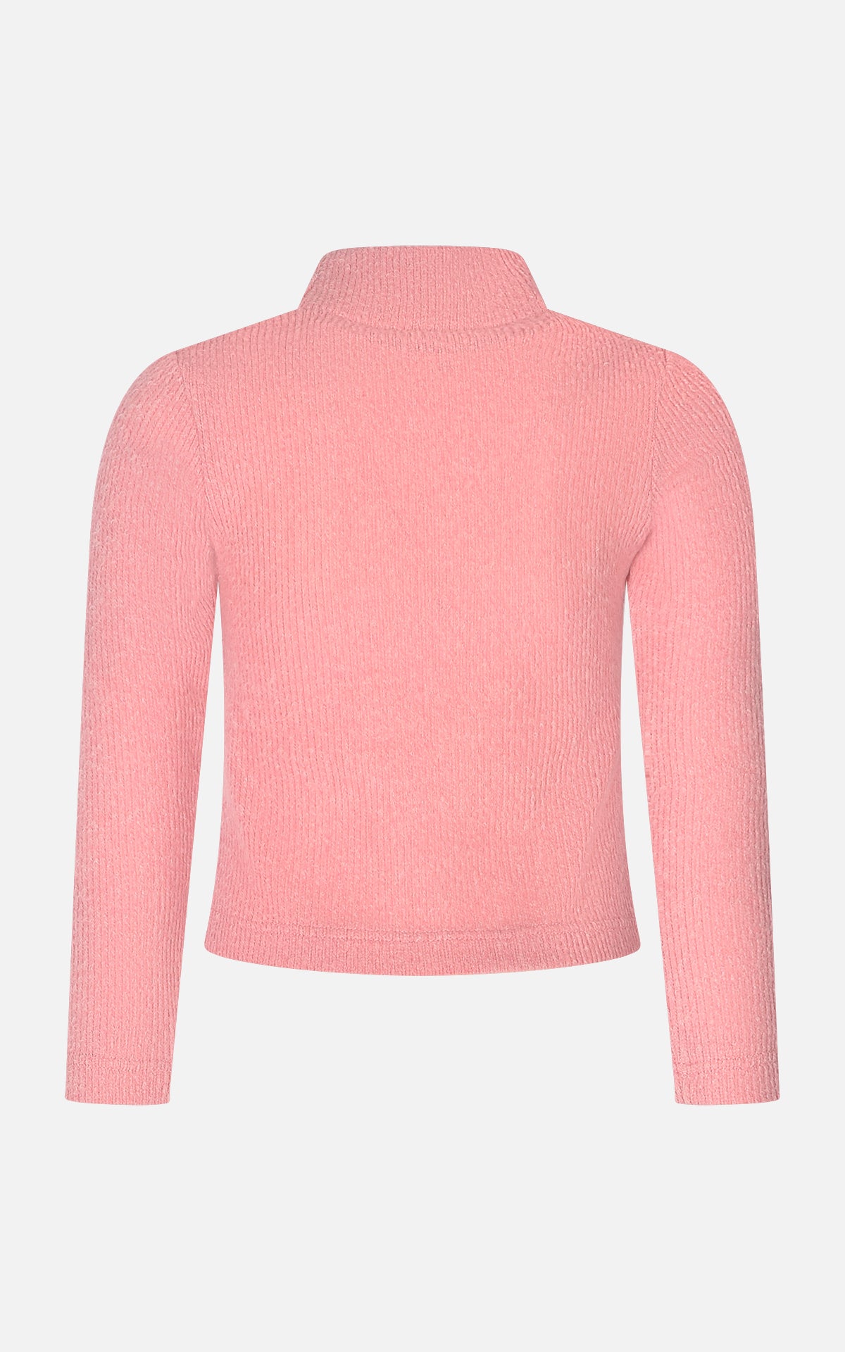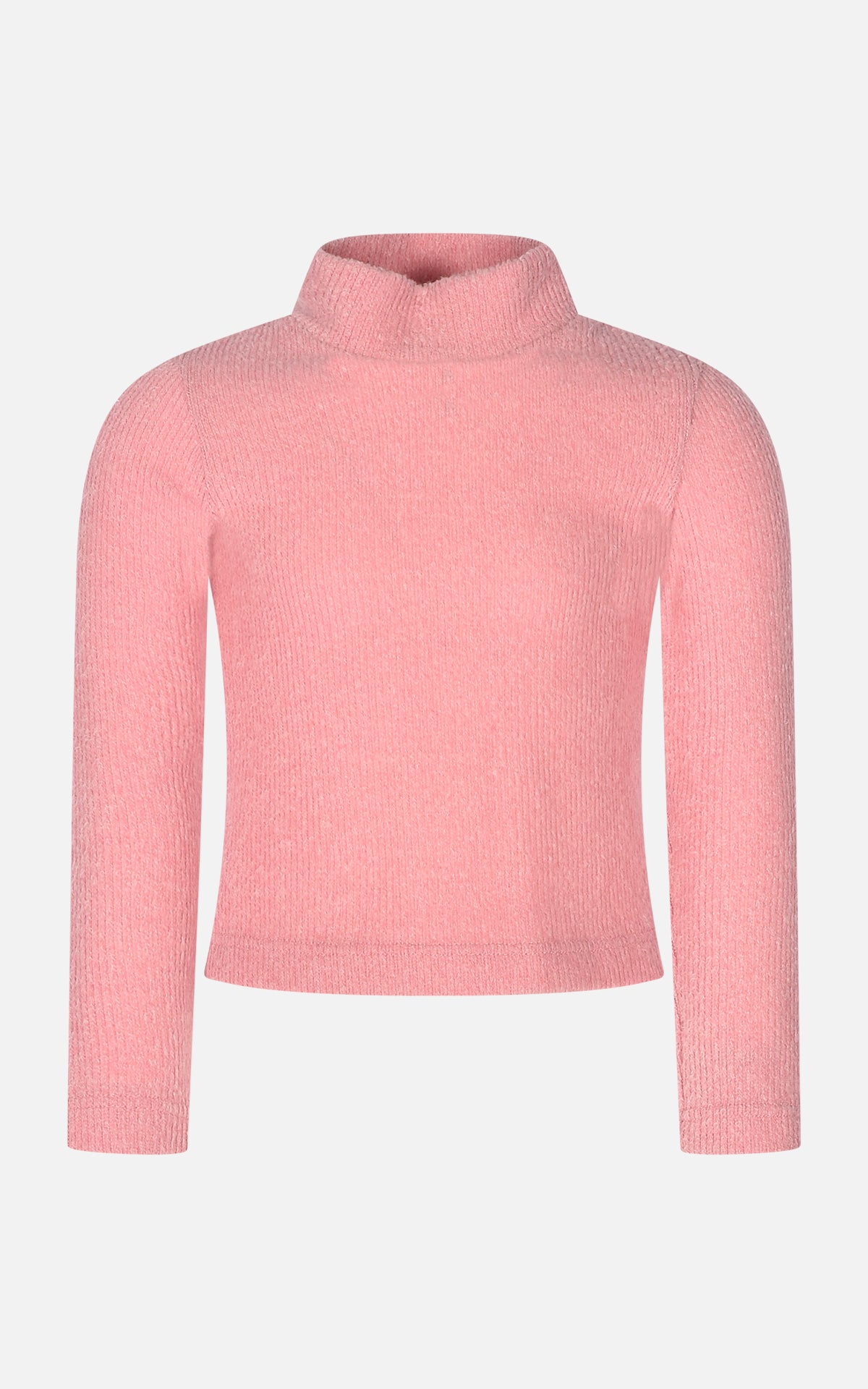 Pullover in maglia a coste soft touch. Collo alto e maniche lunghe. Dettaglio frontale con logo applicato.