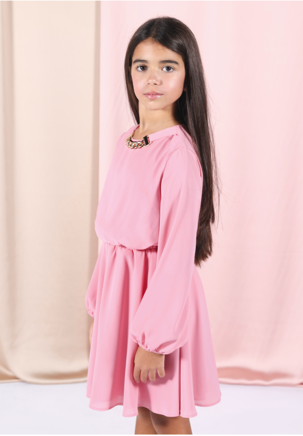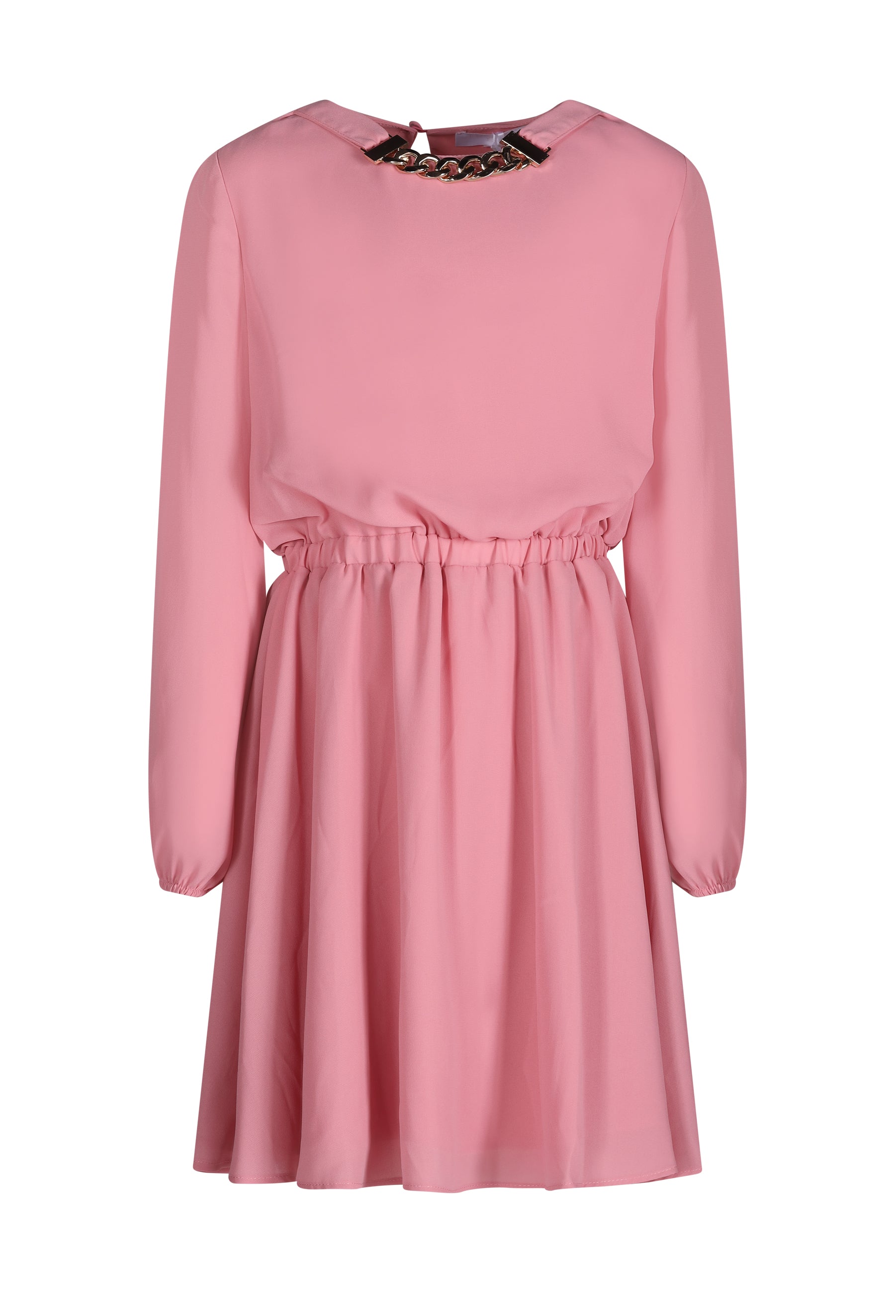 Abito Fun&Fun disponibile in rosa o multicolor, con elegante catena al collo. Un design vivace e sofisticato che aggiunge un tocco di originalità al guardaroba.