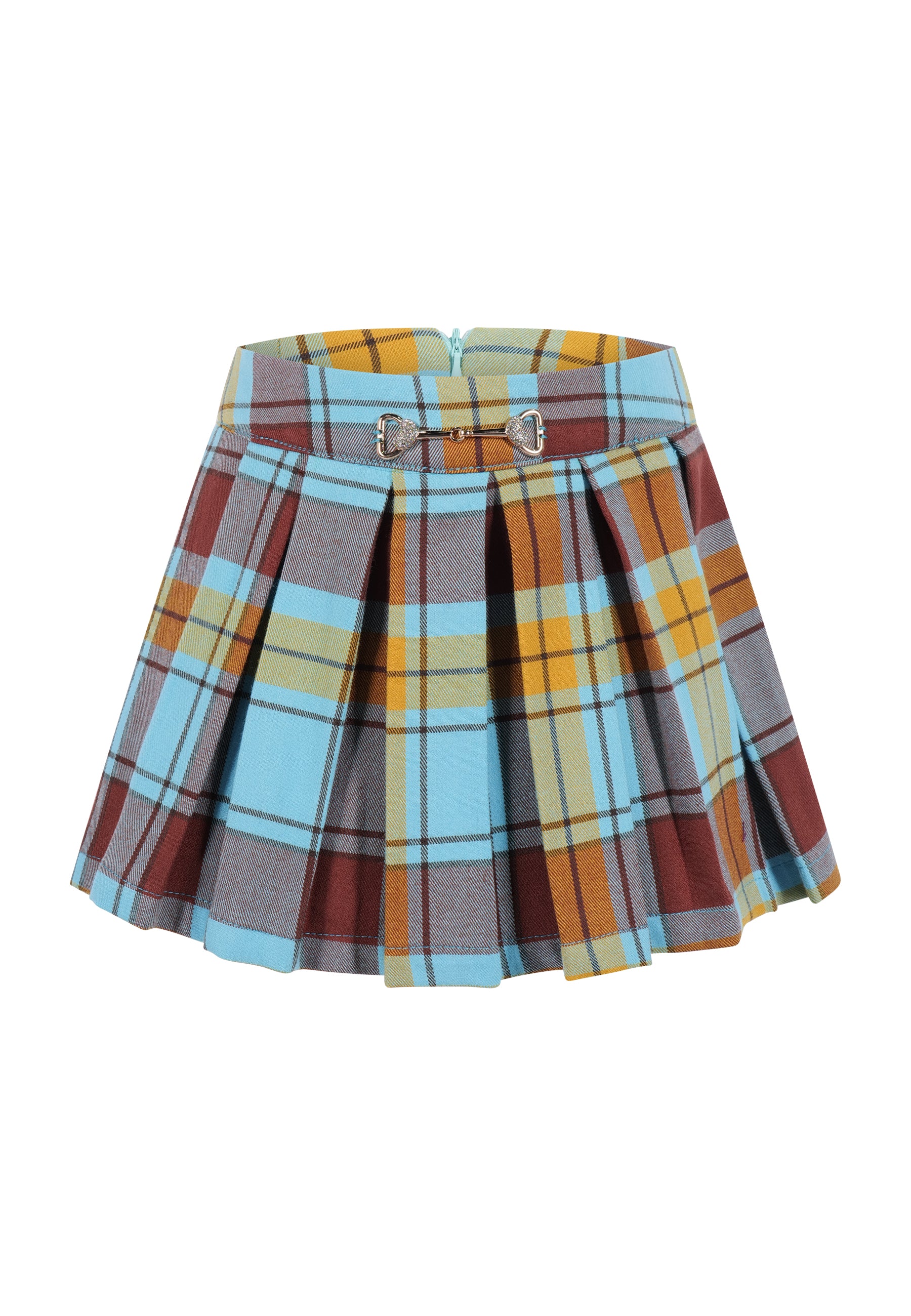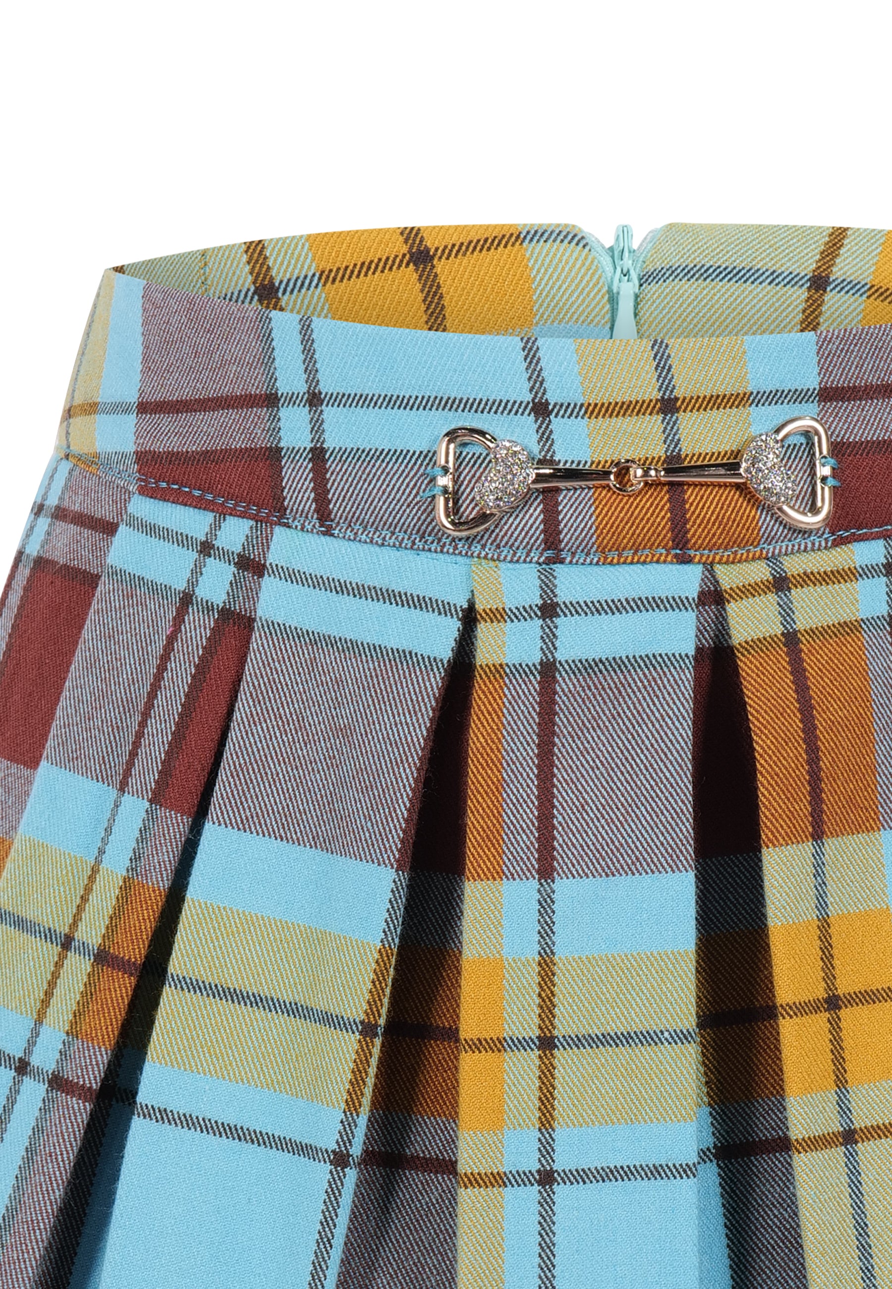 GONNA PANTALONE CON INSERTO A PIEGHE SUL DAVANTI. BUSTINO CON ELASTICO ASOLATO INTERNO. DETTAGLIO FIBBIA DI METALLO CON CUORE STRASS AL CENTRO. CHIUSURA POSTERIORE CON ZIP IN TONO.