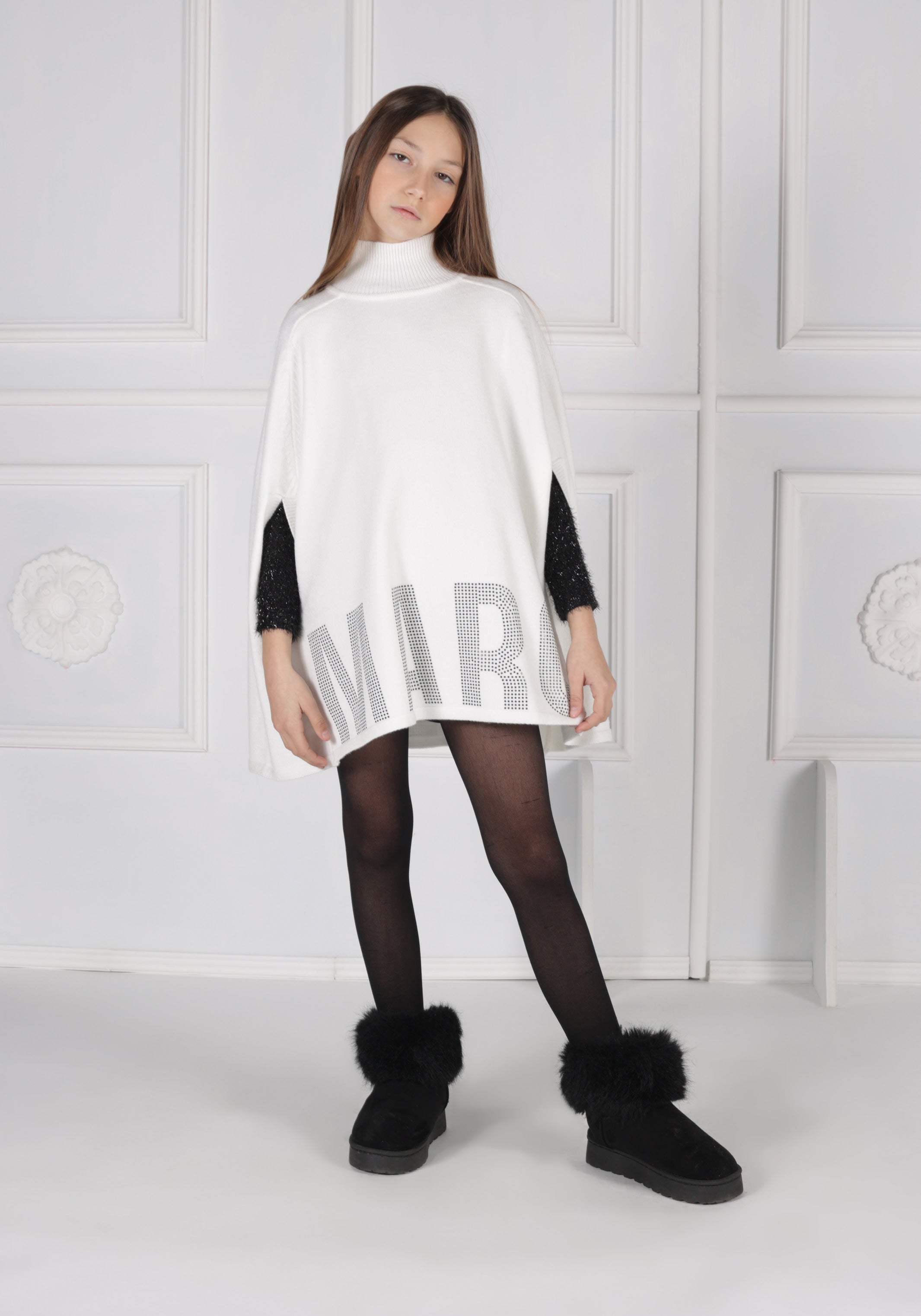 Wool Cape with High Neck, Sleeve Opening and Logo on the Bottom