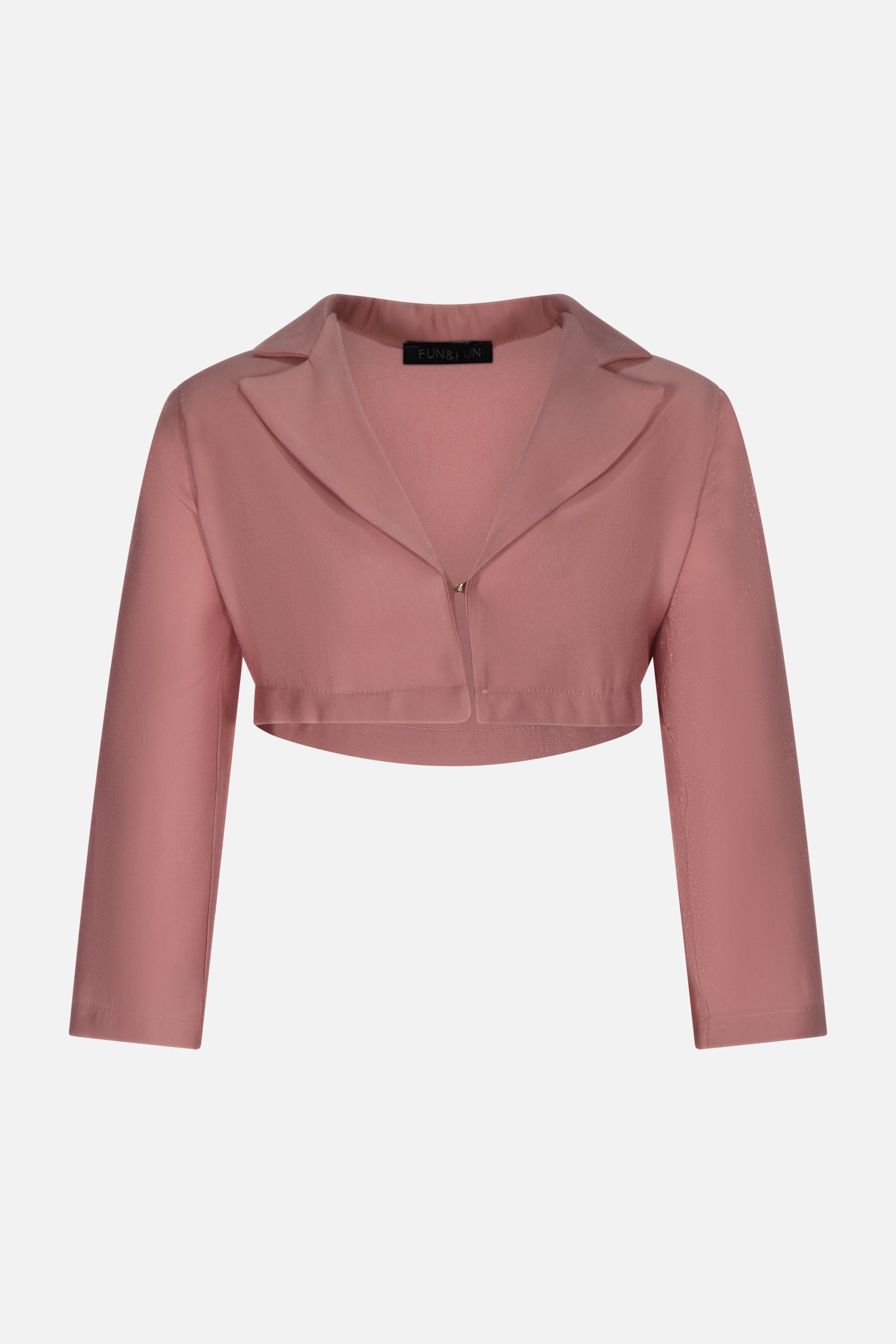 BOLERO IN FLUID FABRIC WITH TONE LAMINATION, ALL UNLINED WITH INTERNAL HOOK FOR FUNCTIONAL OPENING IN THE CENTER OF THE FRONT