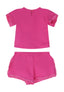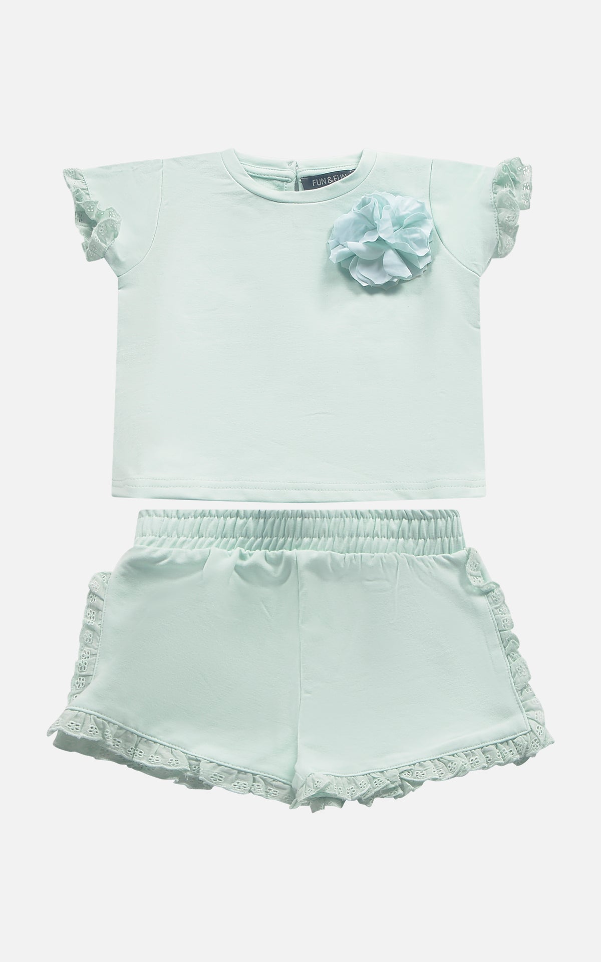 This adorable Fun&Fun set for newborns includes a matching T-shirt and shorts, both embellished with a delicate flower applique. Crafted from soft, breathable materials, it offers maximum comfort for little ones during every adventure. The T-shirt features an eye-catching design, while the shorts ensure a practical and comfortable fit. Perfect for sunny days or moments of play, this set is a must-have in your child's wardrobe!