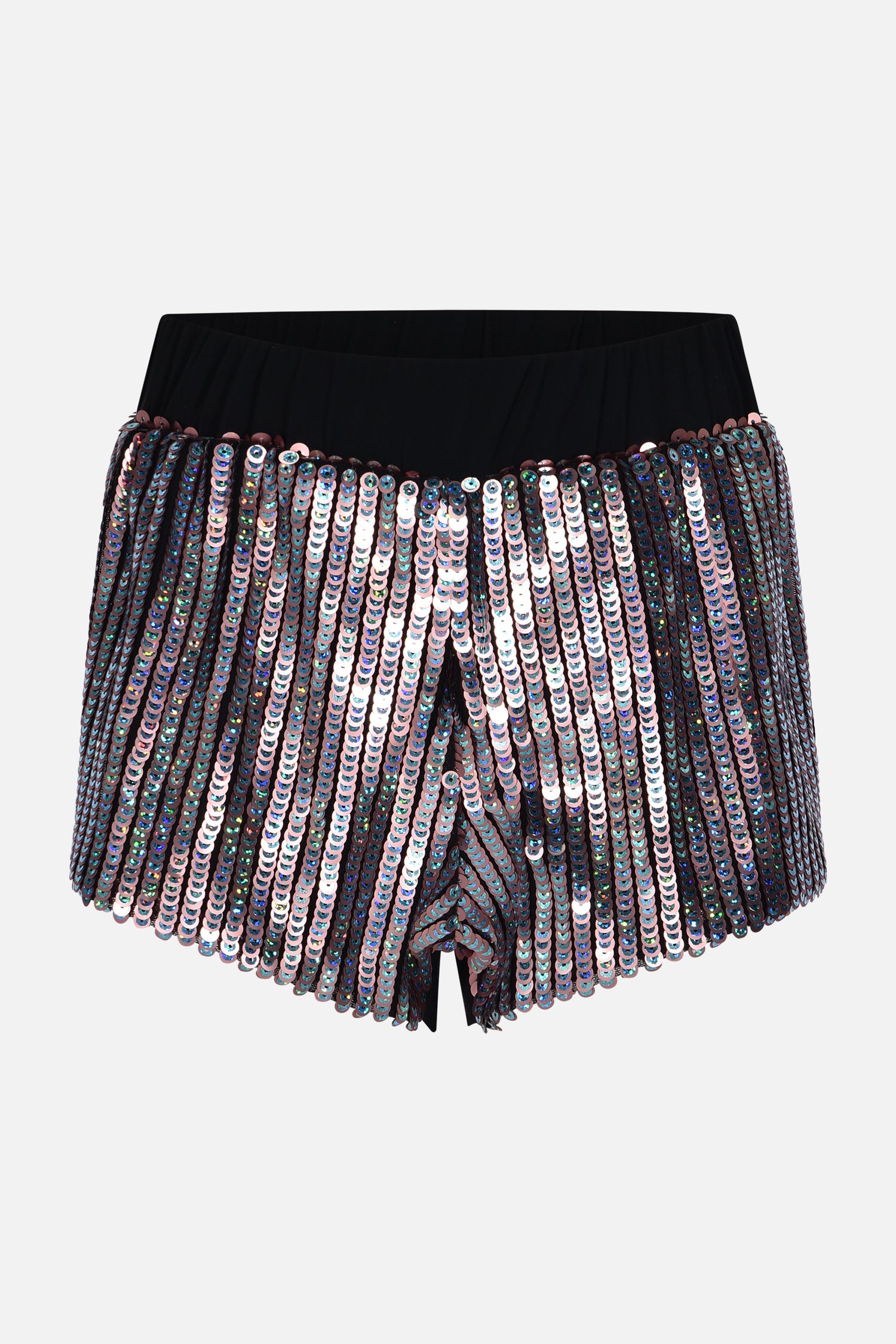 💫 The perfect shorts to get you noticed! The sequined front catches the light with every move, while the stretchy back ensures a comfortable and perfect fit. The elastic waistband ensures a secure and comfortable fit, without sacrificing style.