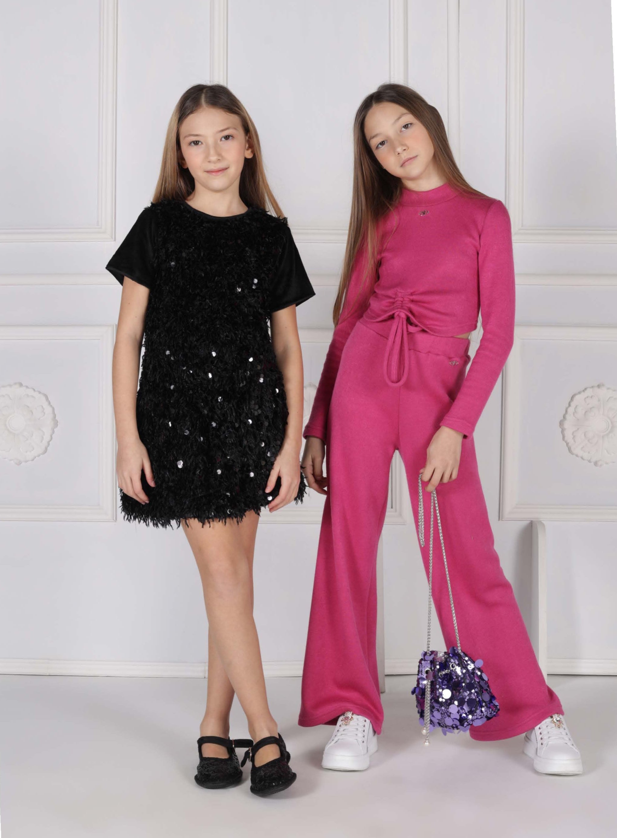 Wide-leg trousers made from soft fabric for maximum comfort and freedom of movement. Elasticated waistband and side logo plaque detail add a distinctive, elegant touch. Ideal for completing casual-chic looks or more sophisticated outfits.