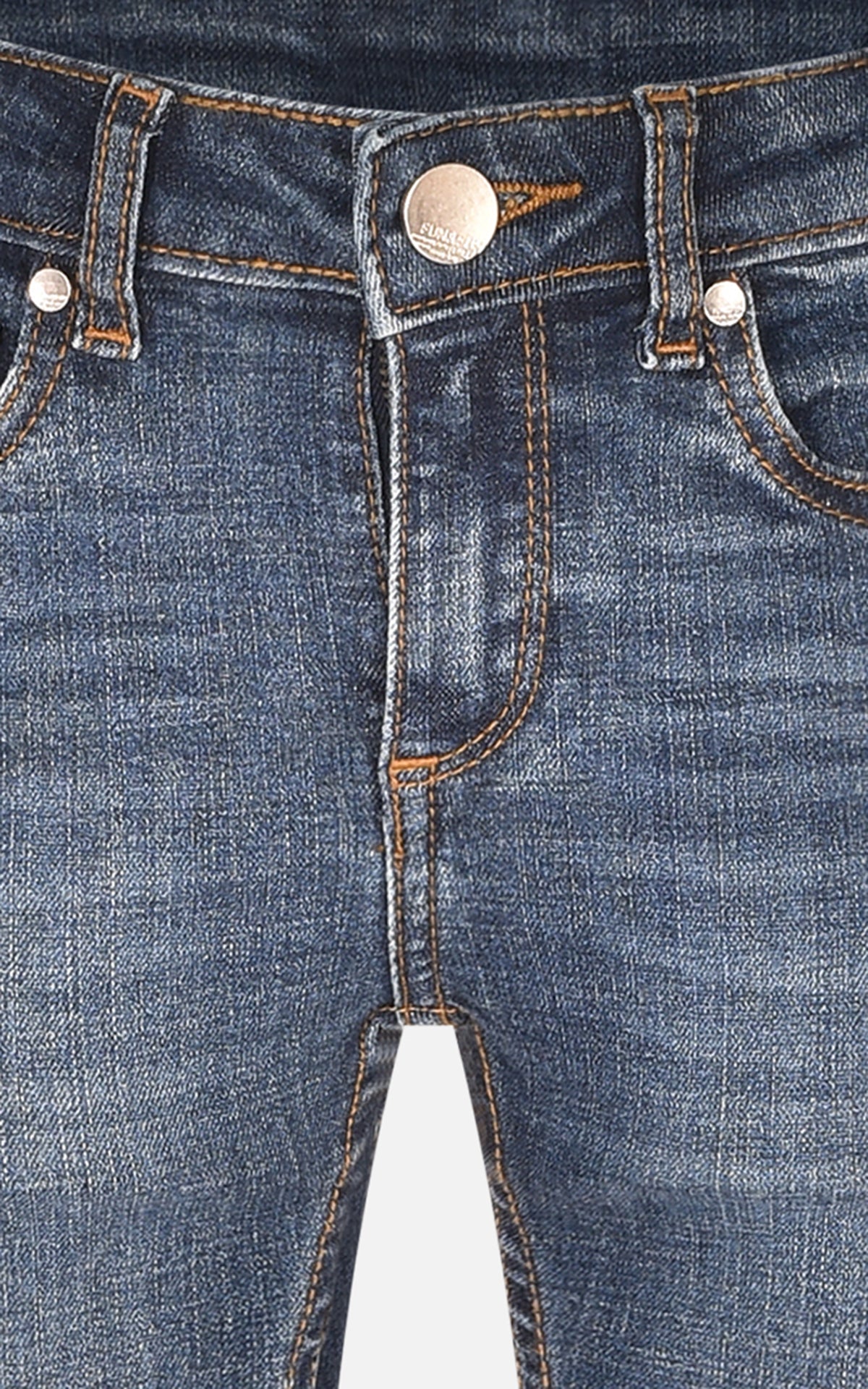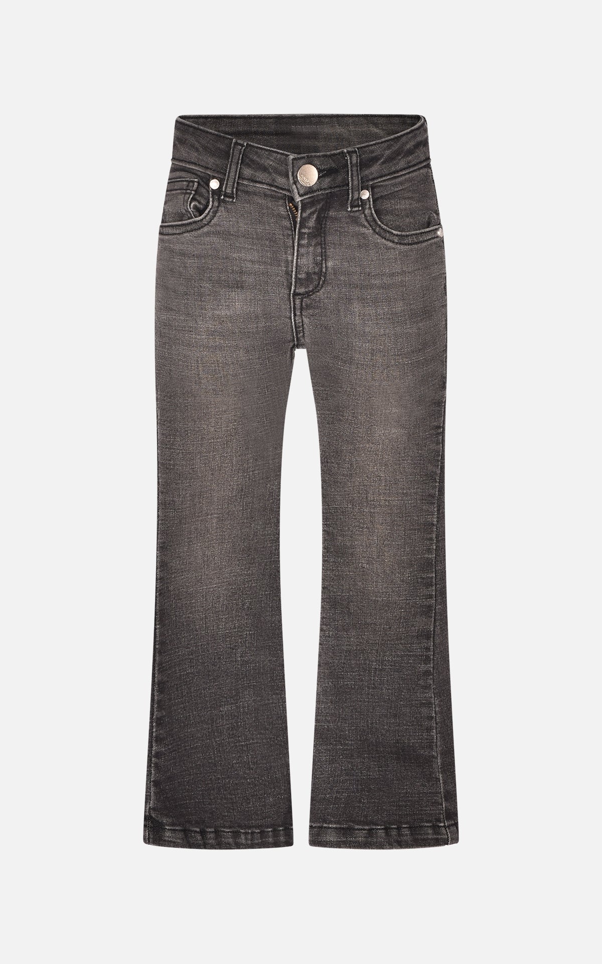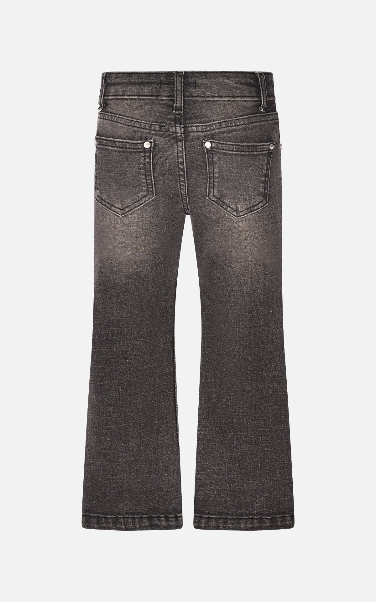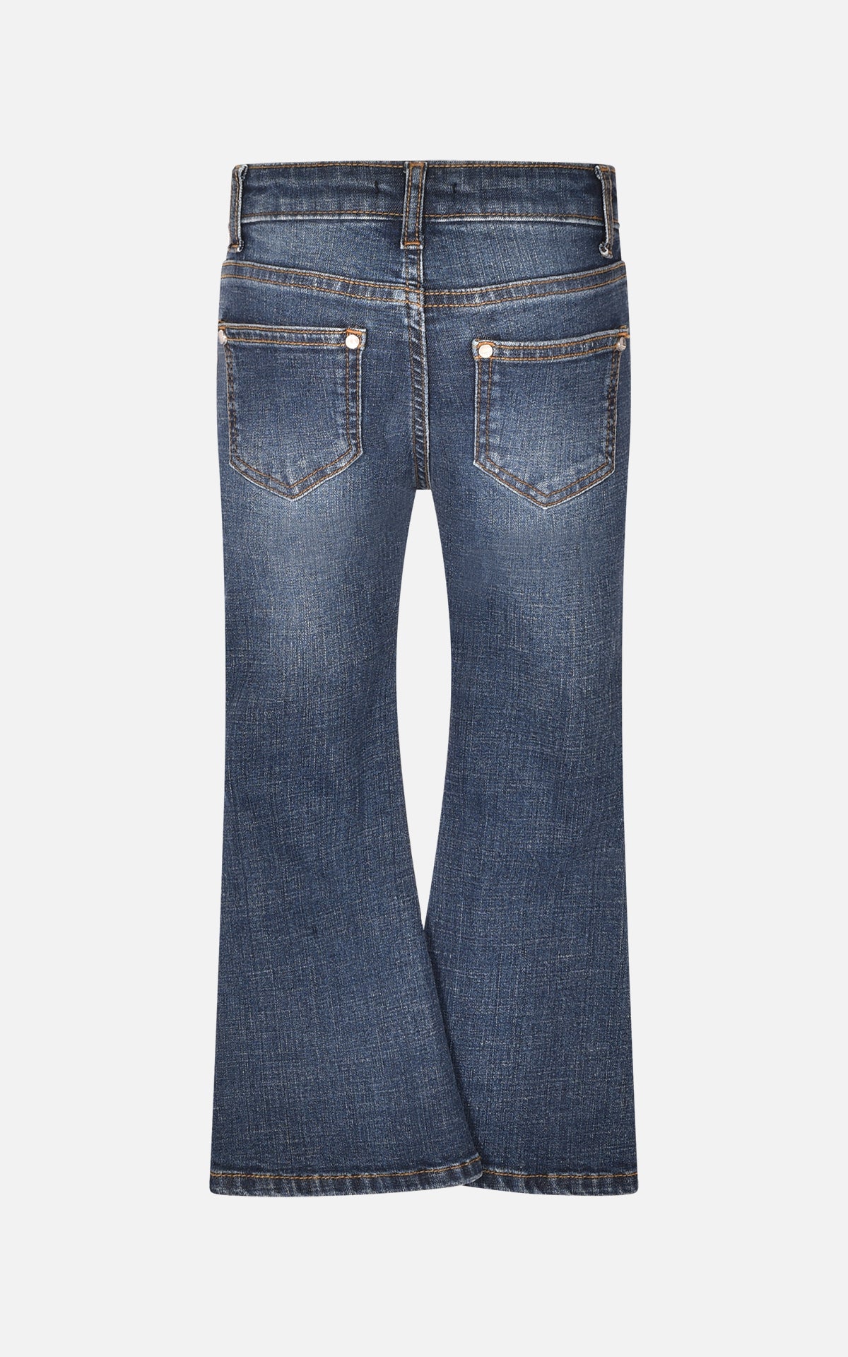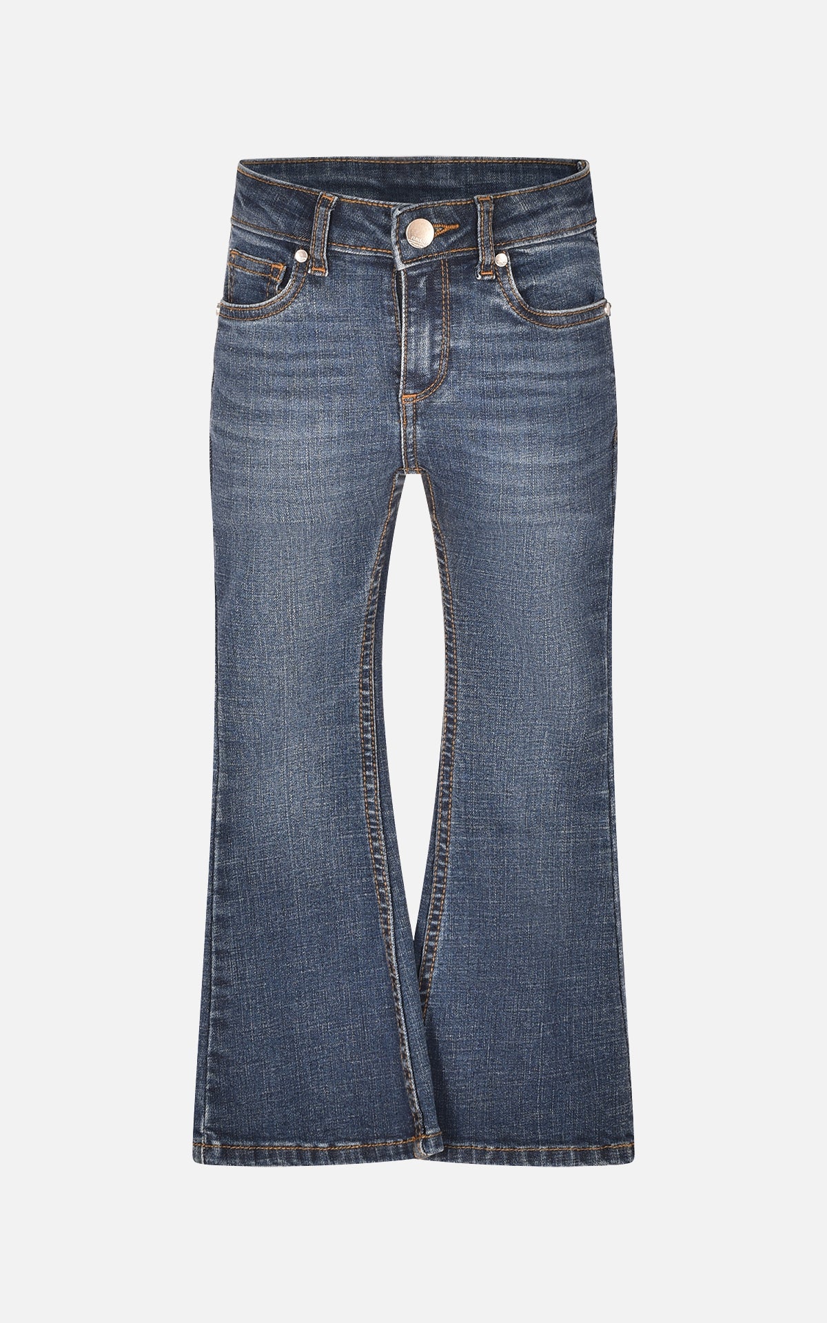 These denim flares are a versatile and fashionable piece, designed for comfort and style. The adjustable waistband on the inside ensures a perfect fit, while the front fastening with a hidden zip and metal button adds a stylish and functional detail. The front and back pockets complete the design, giving it practicality and a touch of classic. A must-have for any wardrobe, ideal for a casual but refined look.