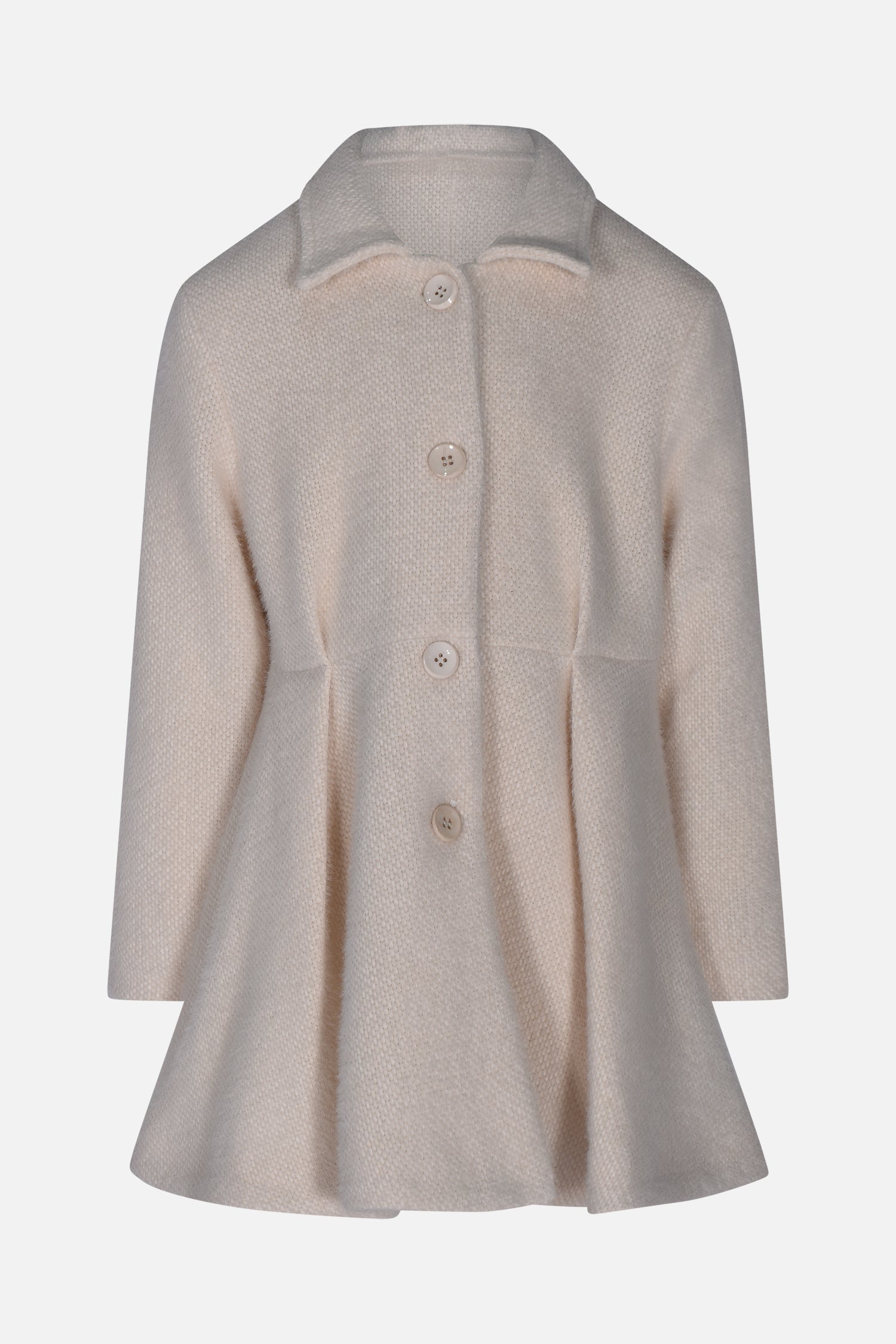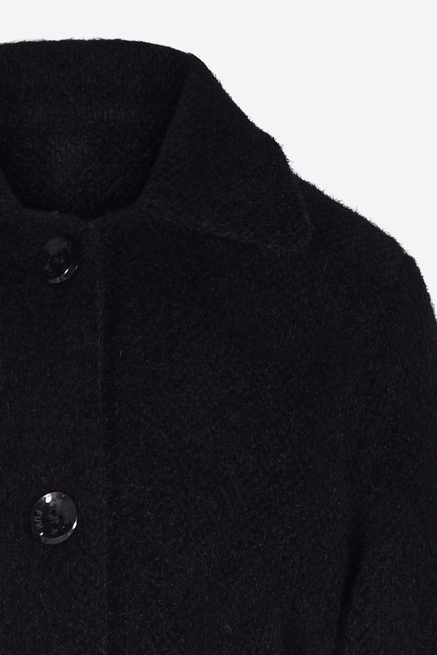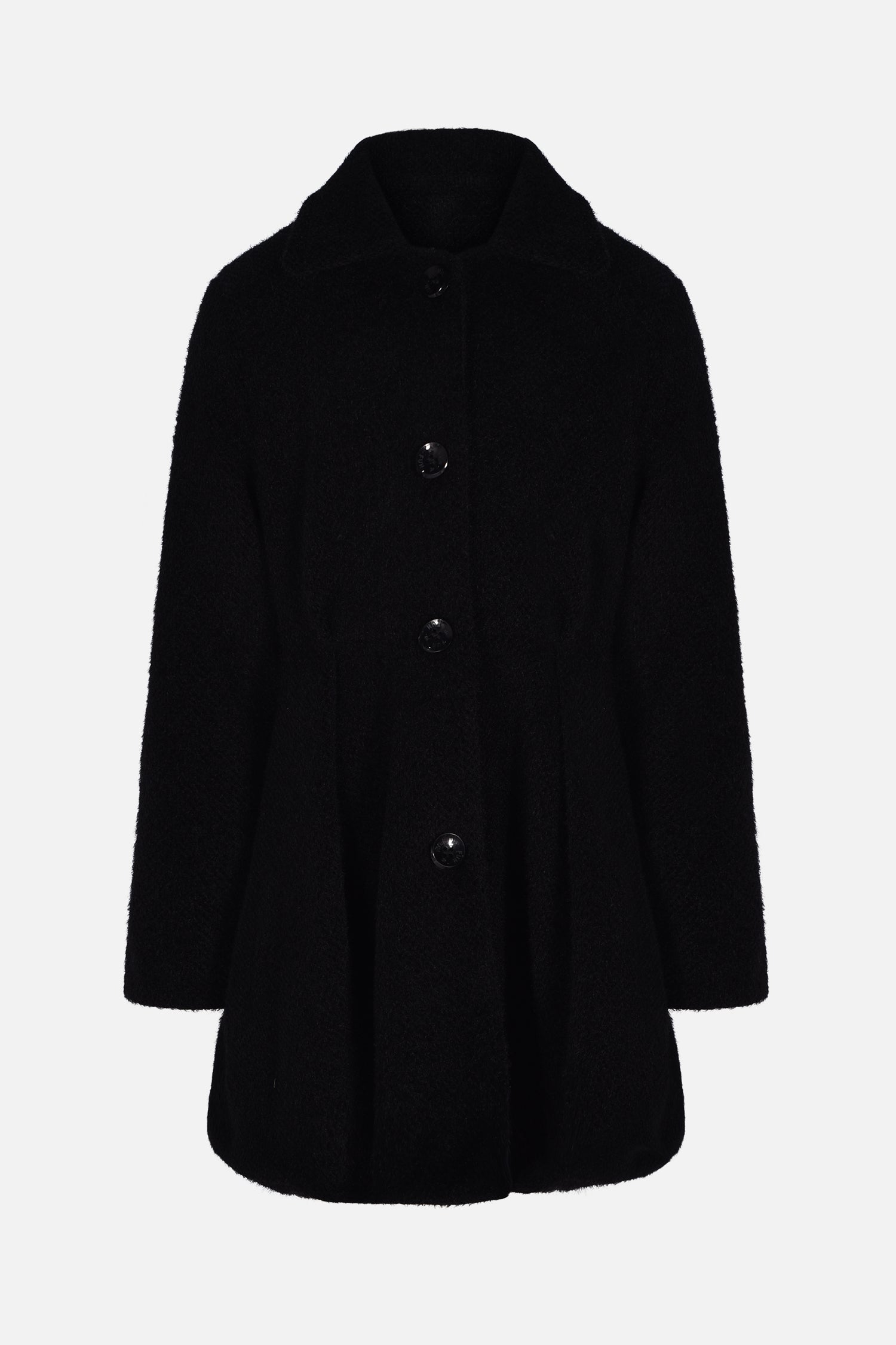 ABRIGO ELEGANTE FIT EN TEJIDO SUAVE DE LANA, CUELLO CAMISA CON BOTONES A LA VISTA CON CIERRE FRONTAL + CORTES EN CINTURA Y PINZAS.