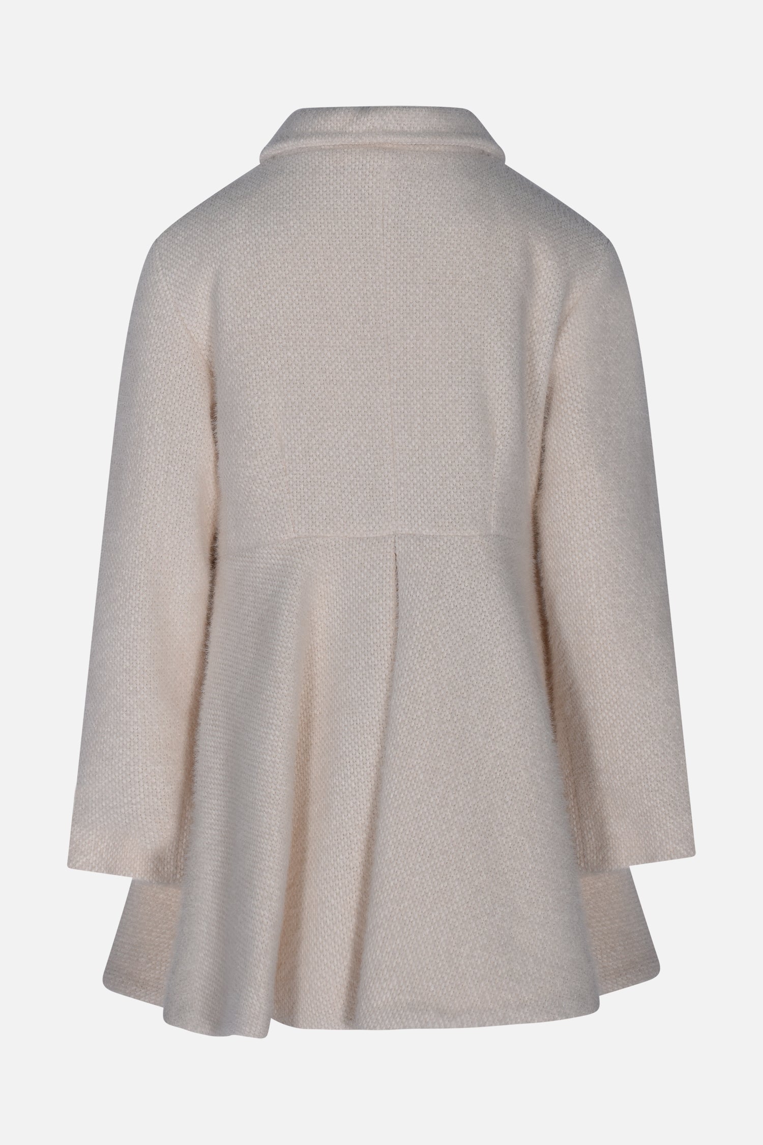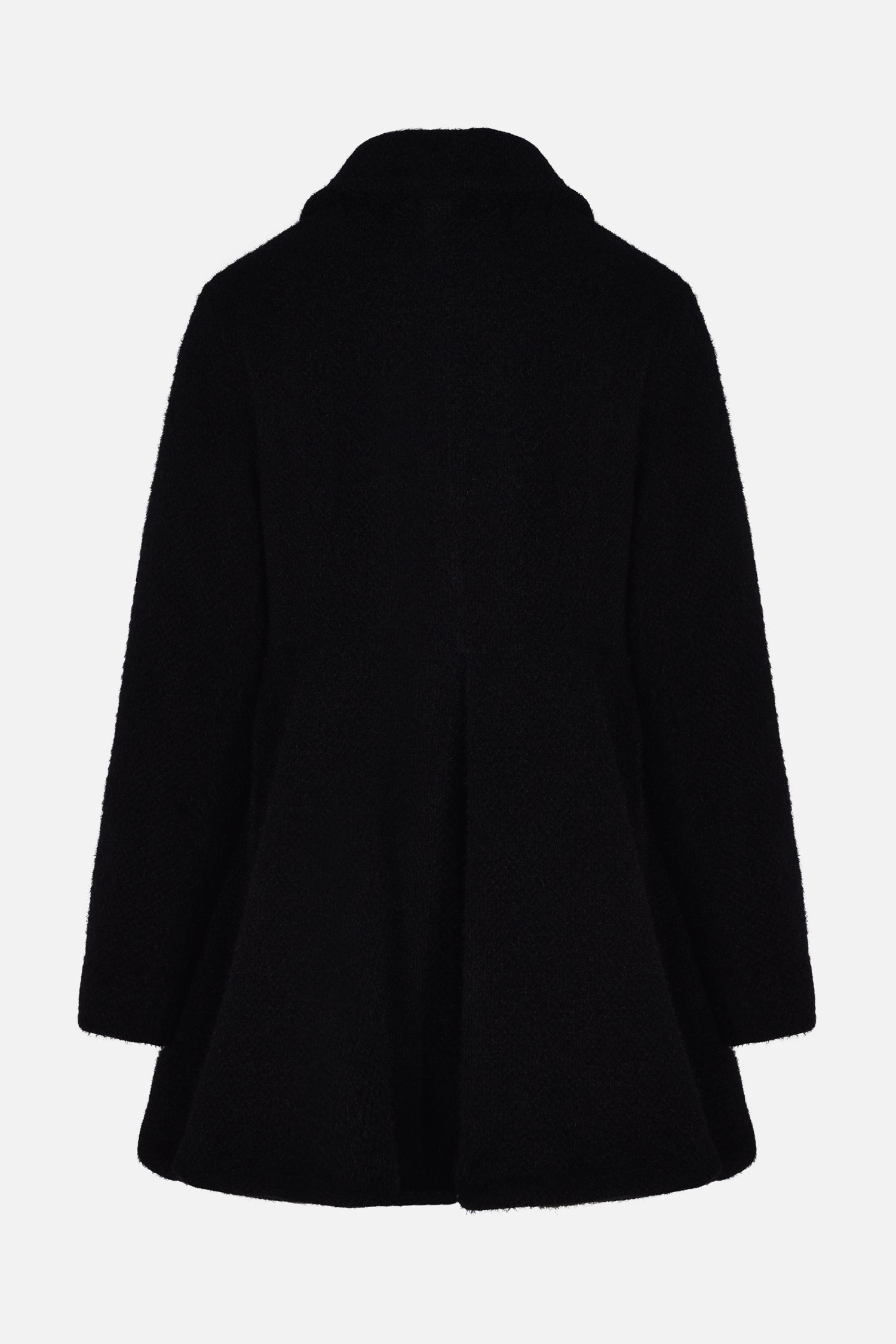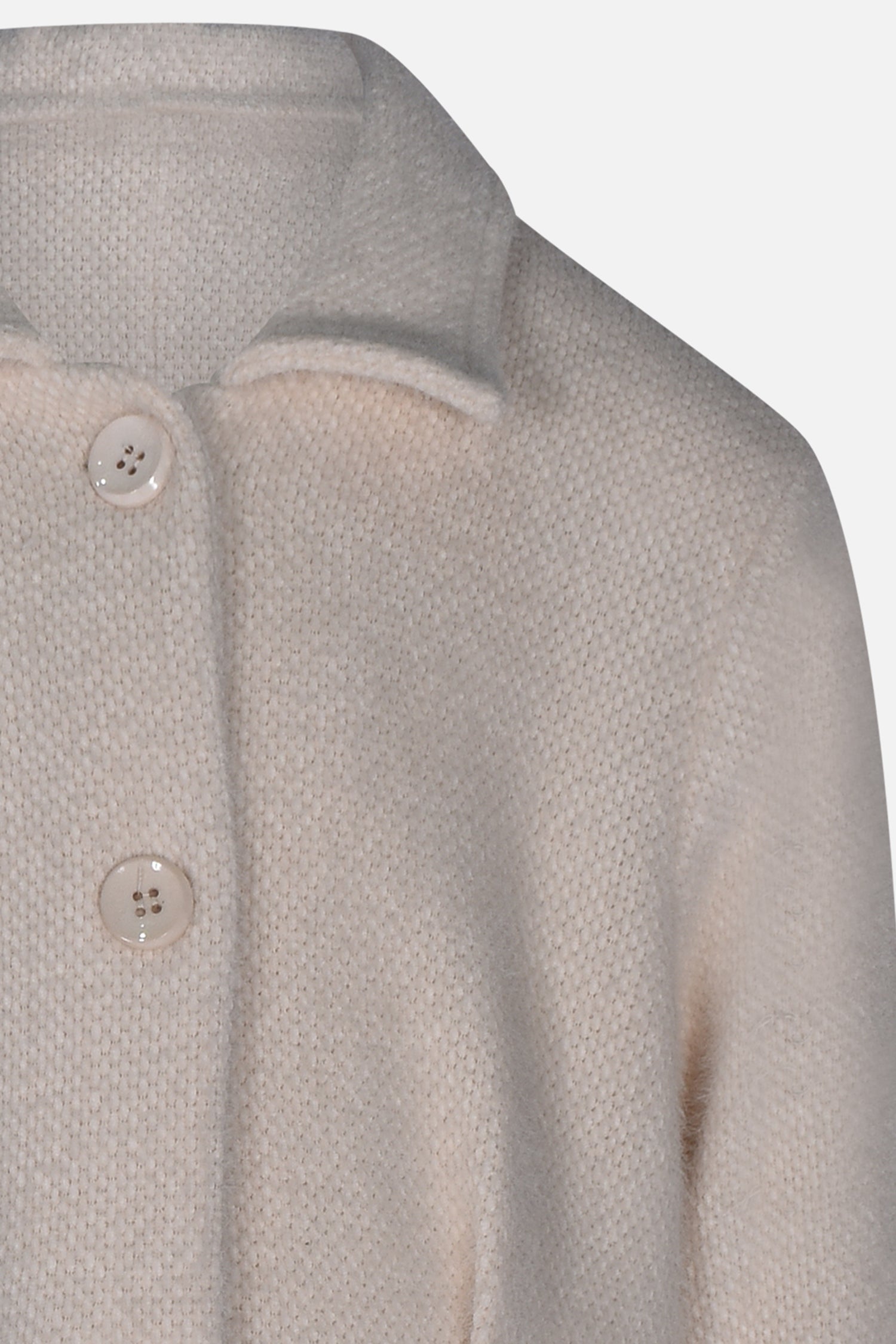ABRIGO ELEGANTE FIT EN TEJIDO SUAVE DE LANA, CUELLO CAMISA CON BOTONES A LA VISTA CON CIERRE FRONTAL + CORTES EN CINTURA Y PINZAS.