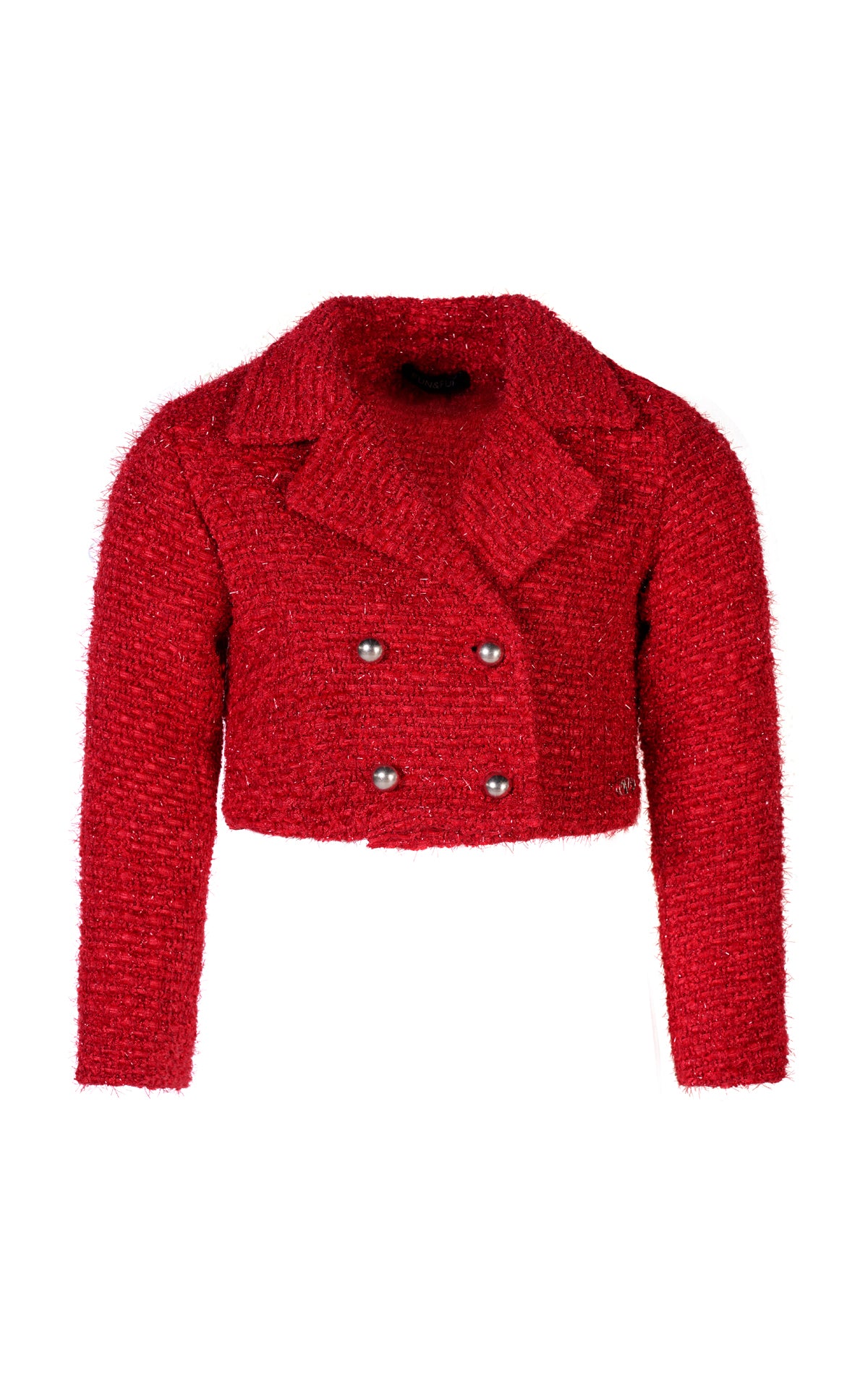 CHAQUETA DE TWEED LAME CON SOLAPA Y MANGA LARGA.