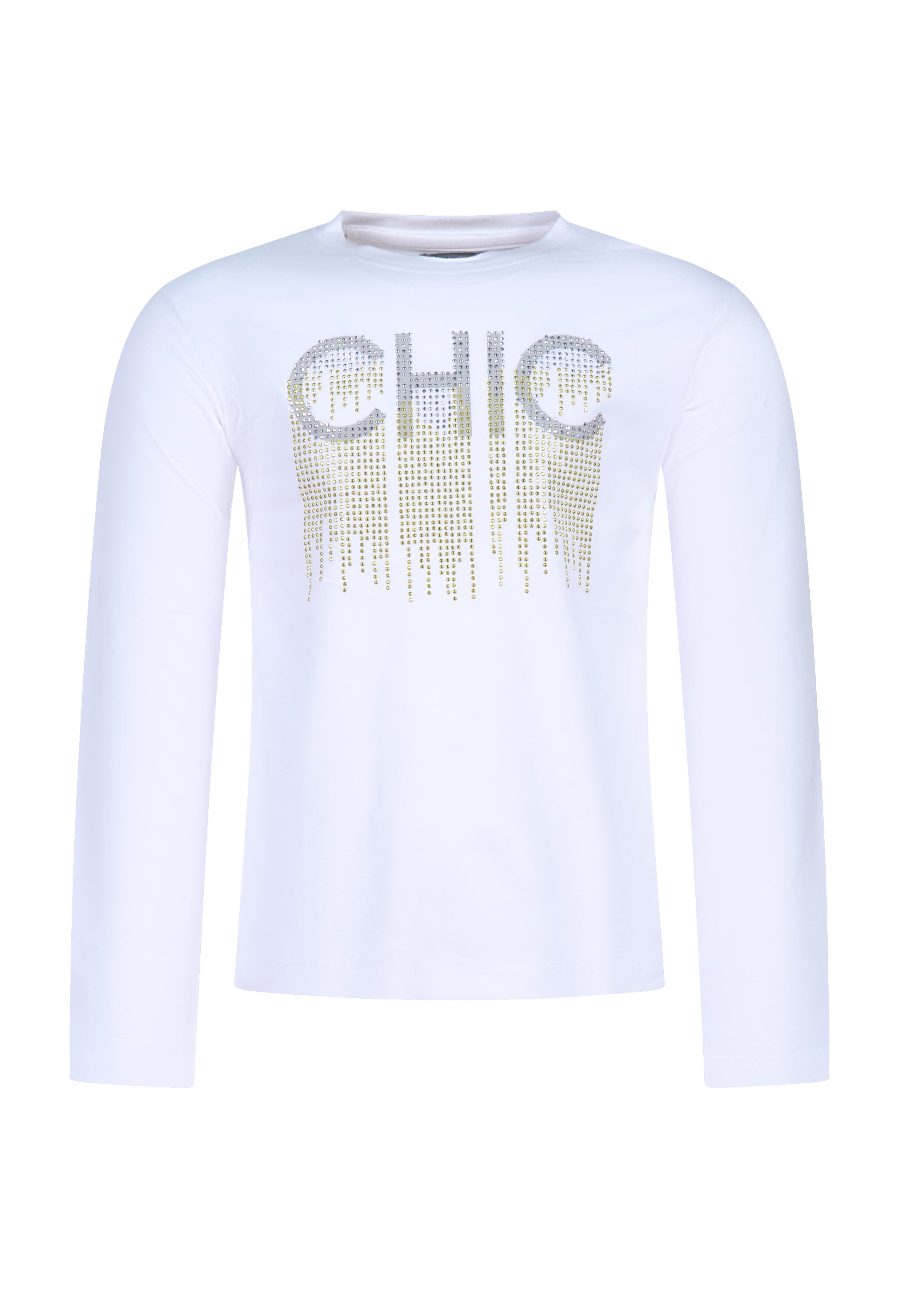 CAMISETA DE ALGODÓN CON CUELLO REDONDO Y MANGA LARGA CON APLICACIÓN GRÁFICO DE PEdrerías