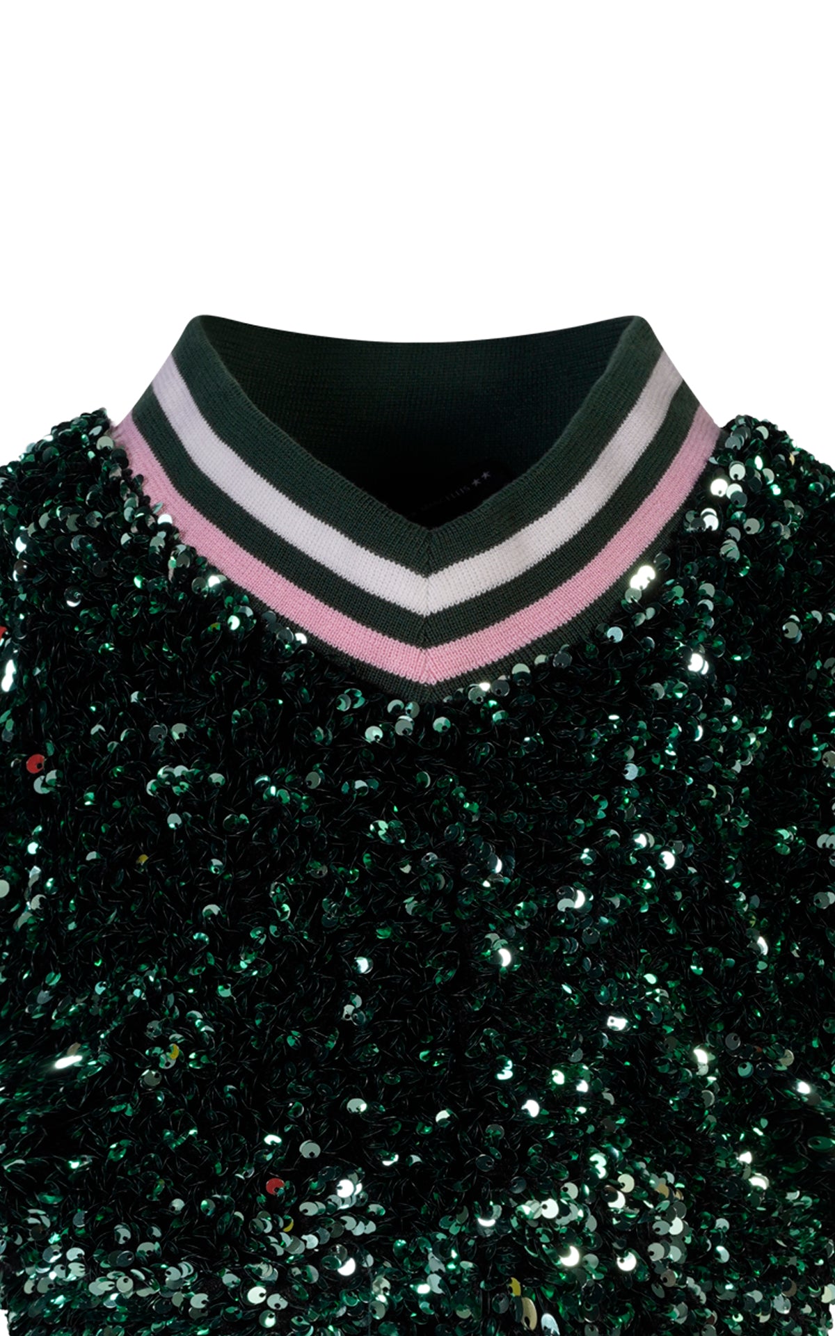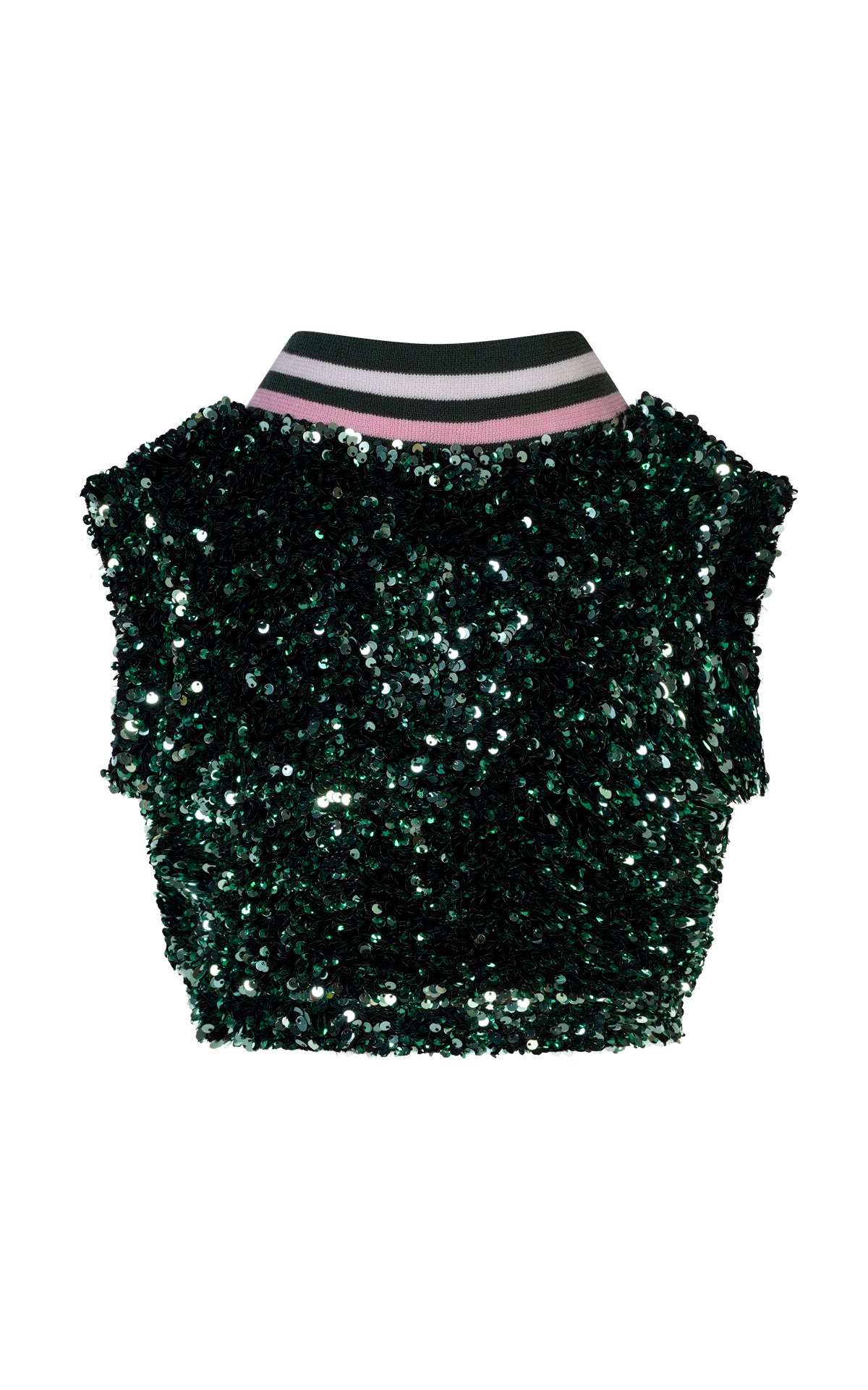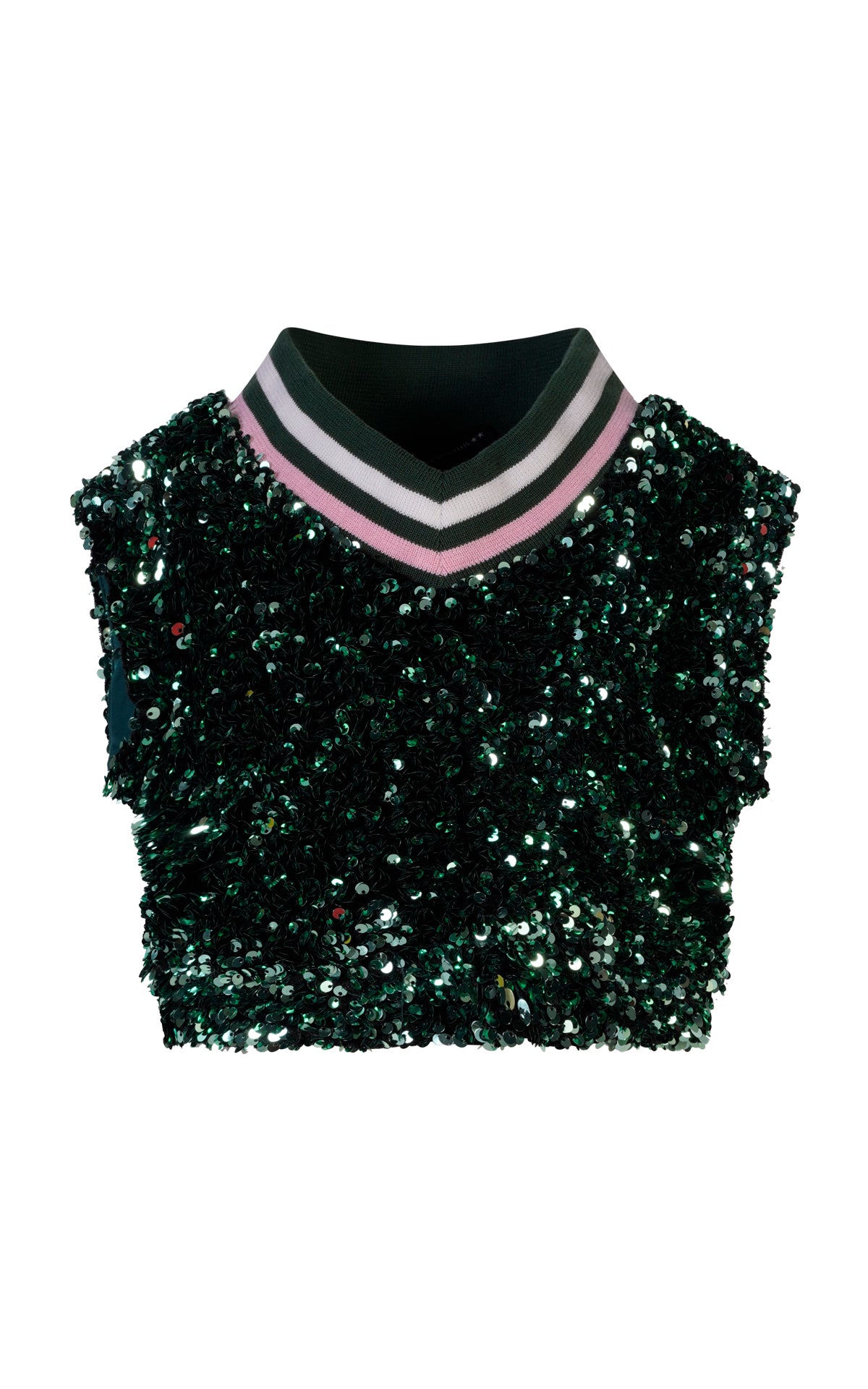 TOP - Gilet in Paillettes con Collo a Punta in Costina Smacchinata a Righe