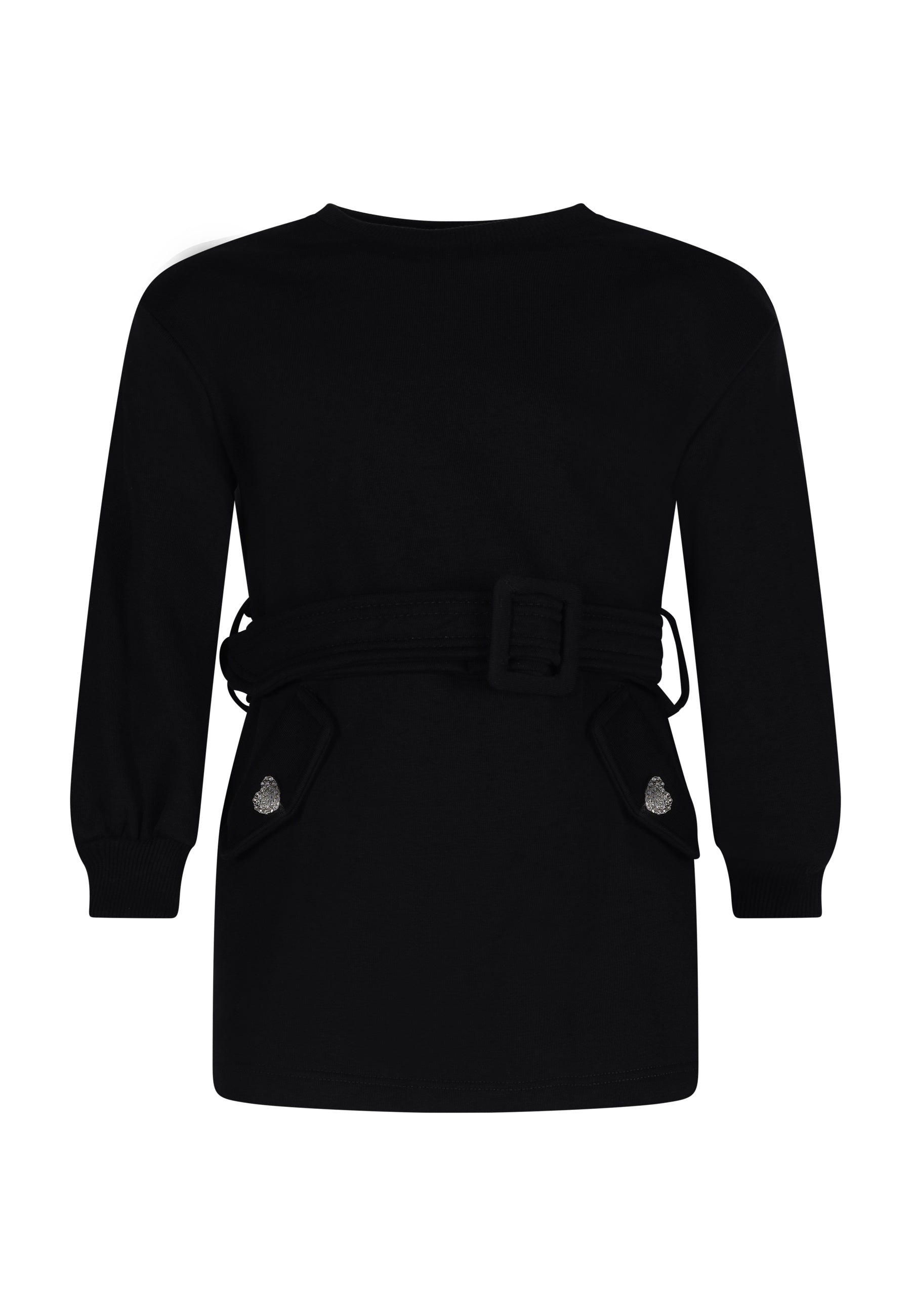 Abitino Fun&Fun con bottoni a cuoricini diamantati e cintura in tessuto.