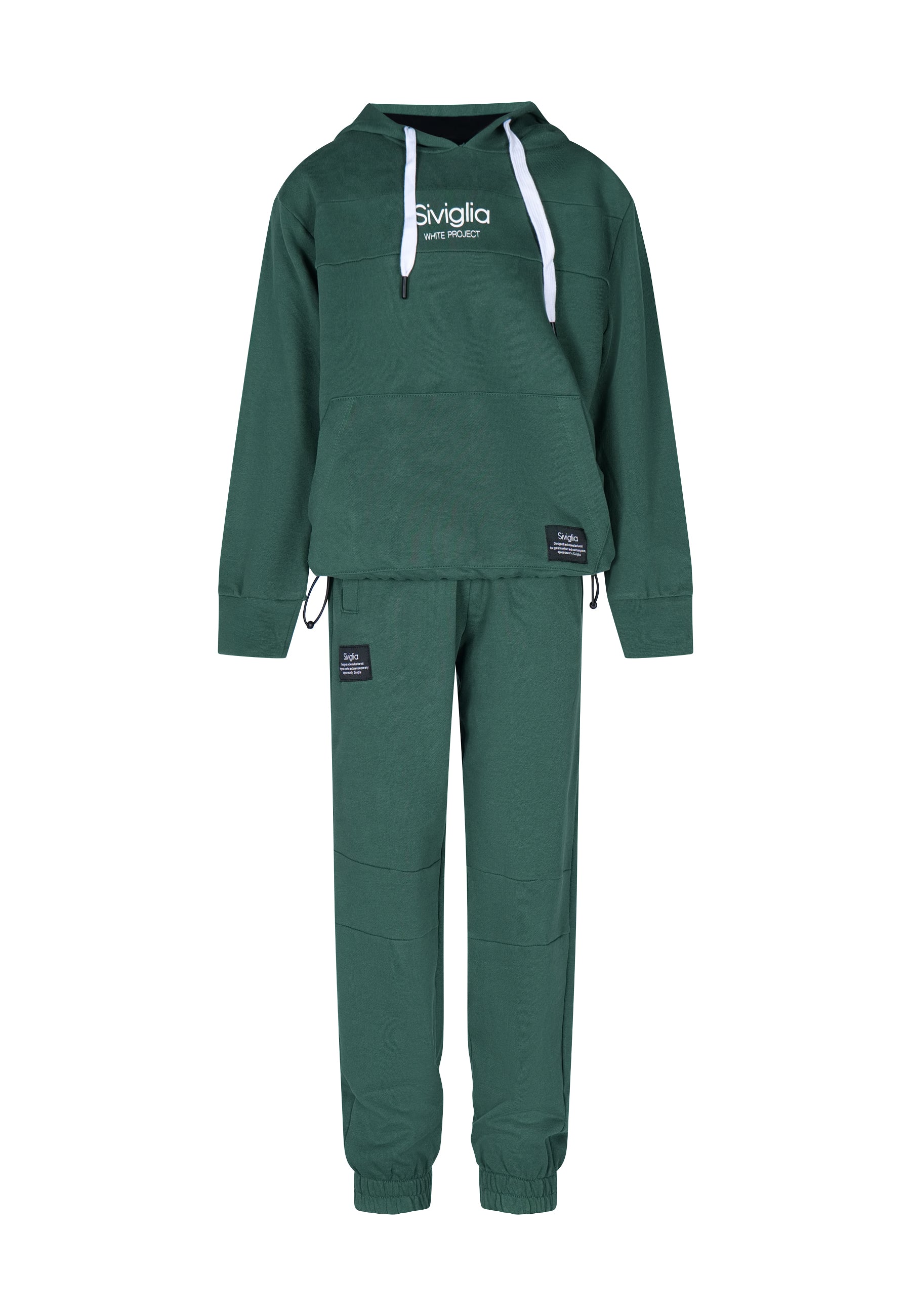 Completo tuta verde con stampa Siviglia. Pantalone + Felpa con cappuccio