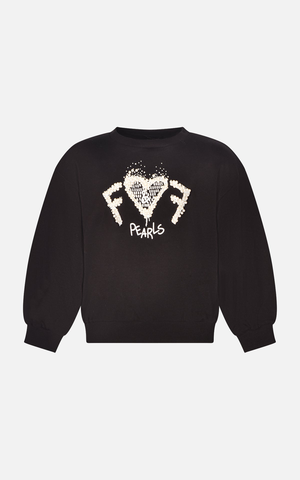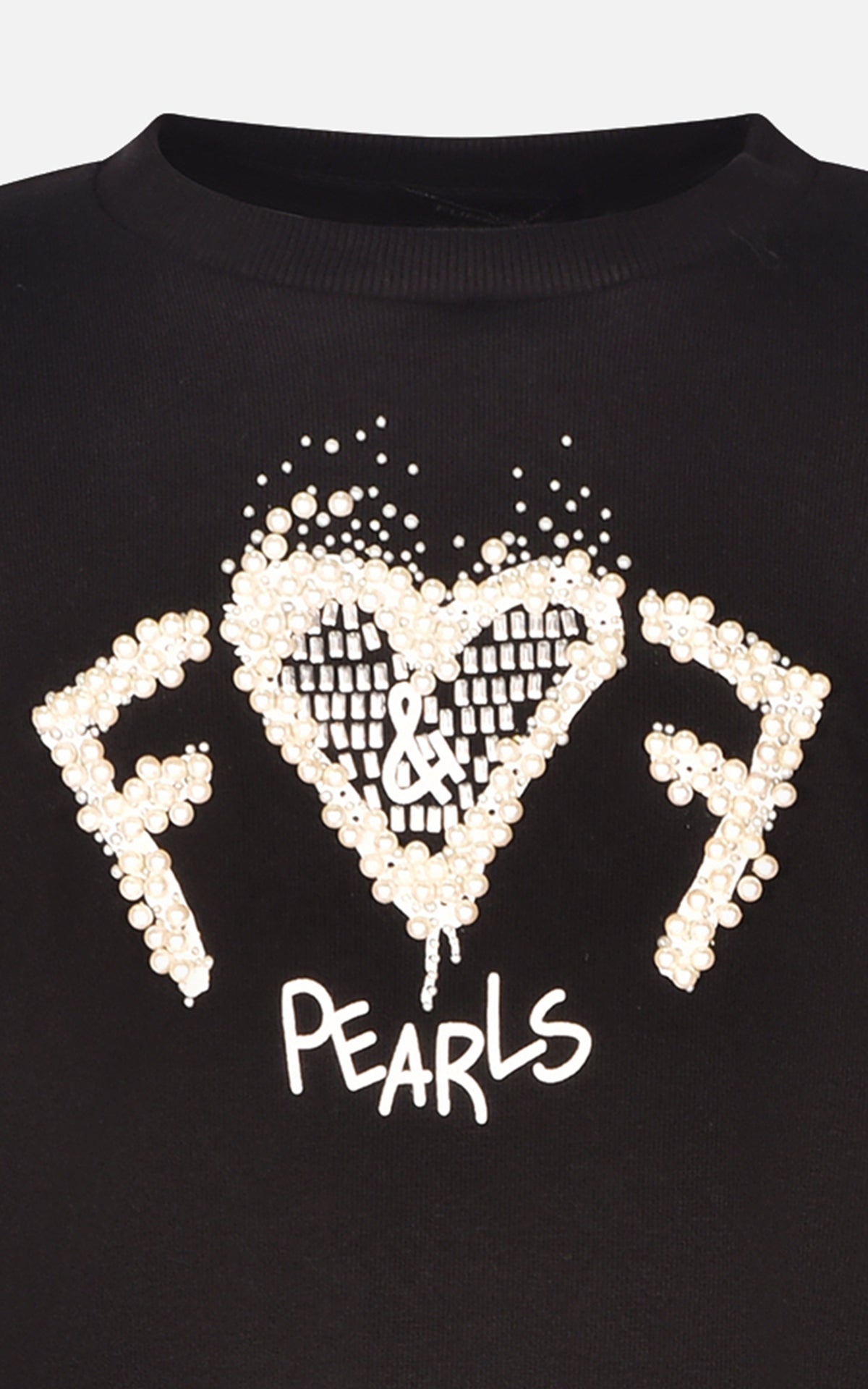 -Felpa di cotone con collo rotondo e maniche lunghe. Dettaglio stampa davanti con applicazioni di perle.