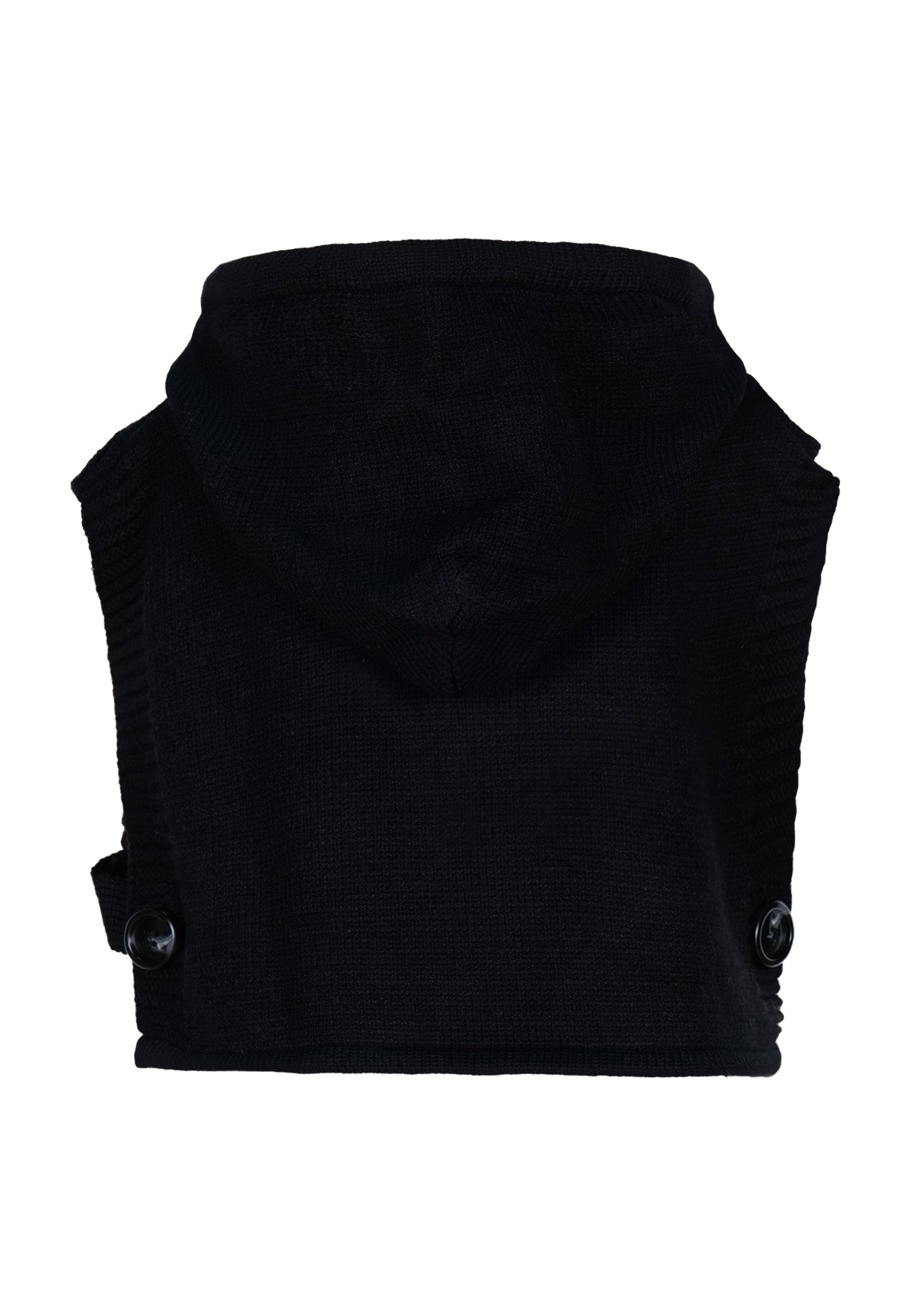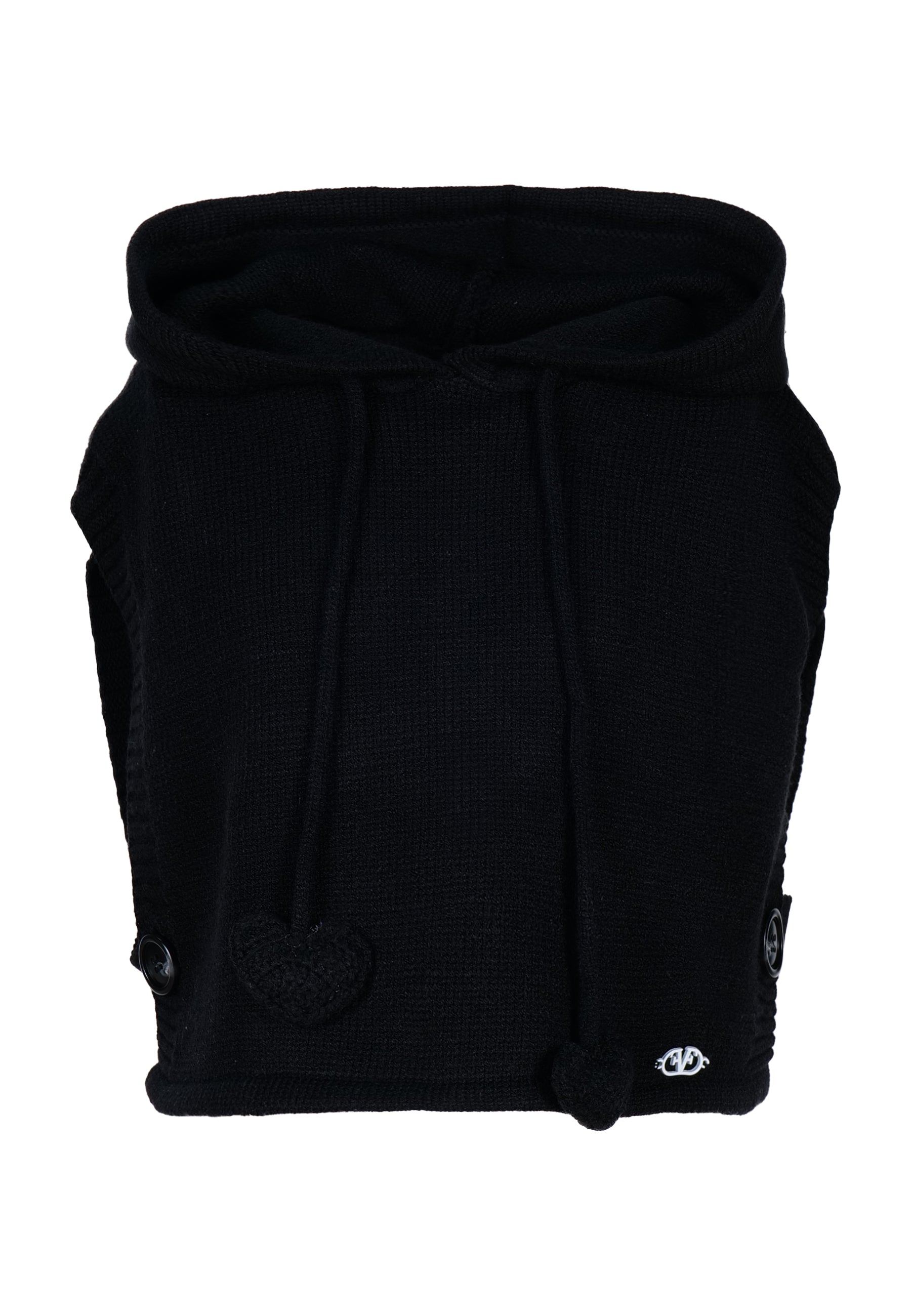Mantellina con cappuccio in maglia e laccetto regolabile con finale a forma di cuore.