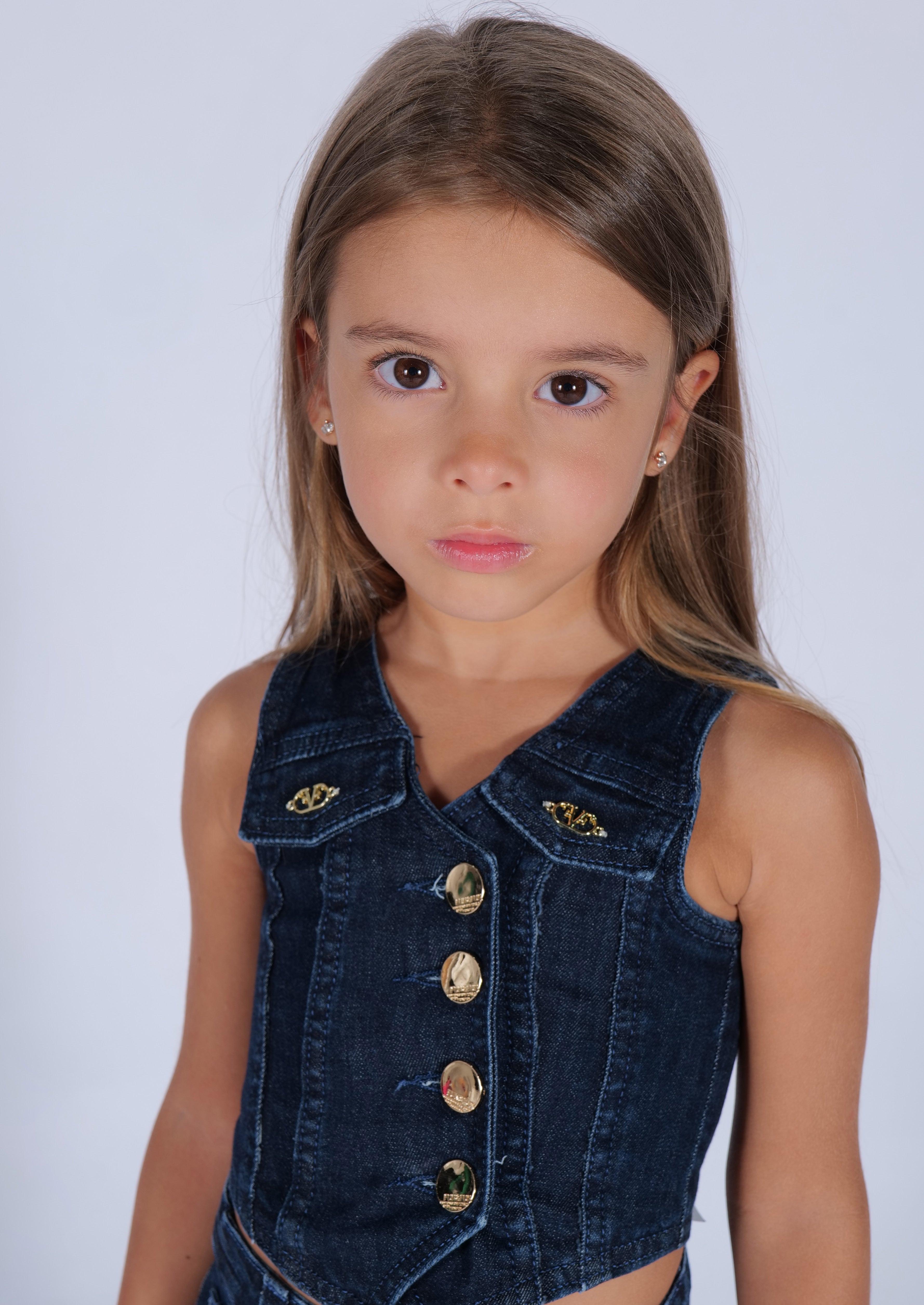 Gilet in tessuto denim con un raffinato effetto slavato, dotato di scollo a V e giromanica regolare. Presenta patte applicate sul petto e una chiusura frontale con bottoni metallici, per un look casual e moderno. Il dettaglio del logo applicato sulla tasca aggiunge un tocco distintivo. Perfetto per abbinamenti versatili e contemporanei.