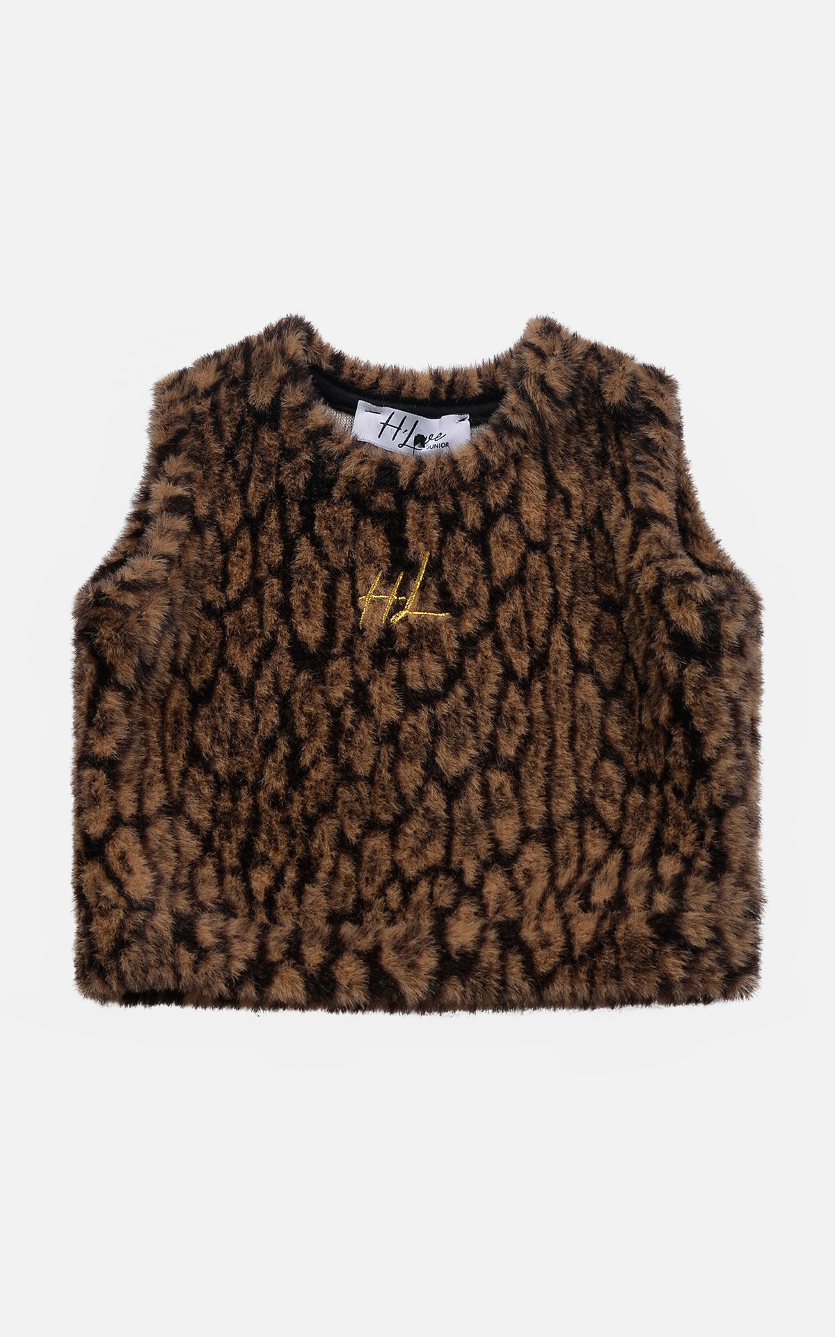 GILET IN TESSUTO MAGLIA FANTASIA MACULATO CON BOTTONI PRISMATICI GOLD + RICAMO LOGO FRONTALE