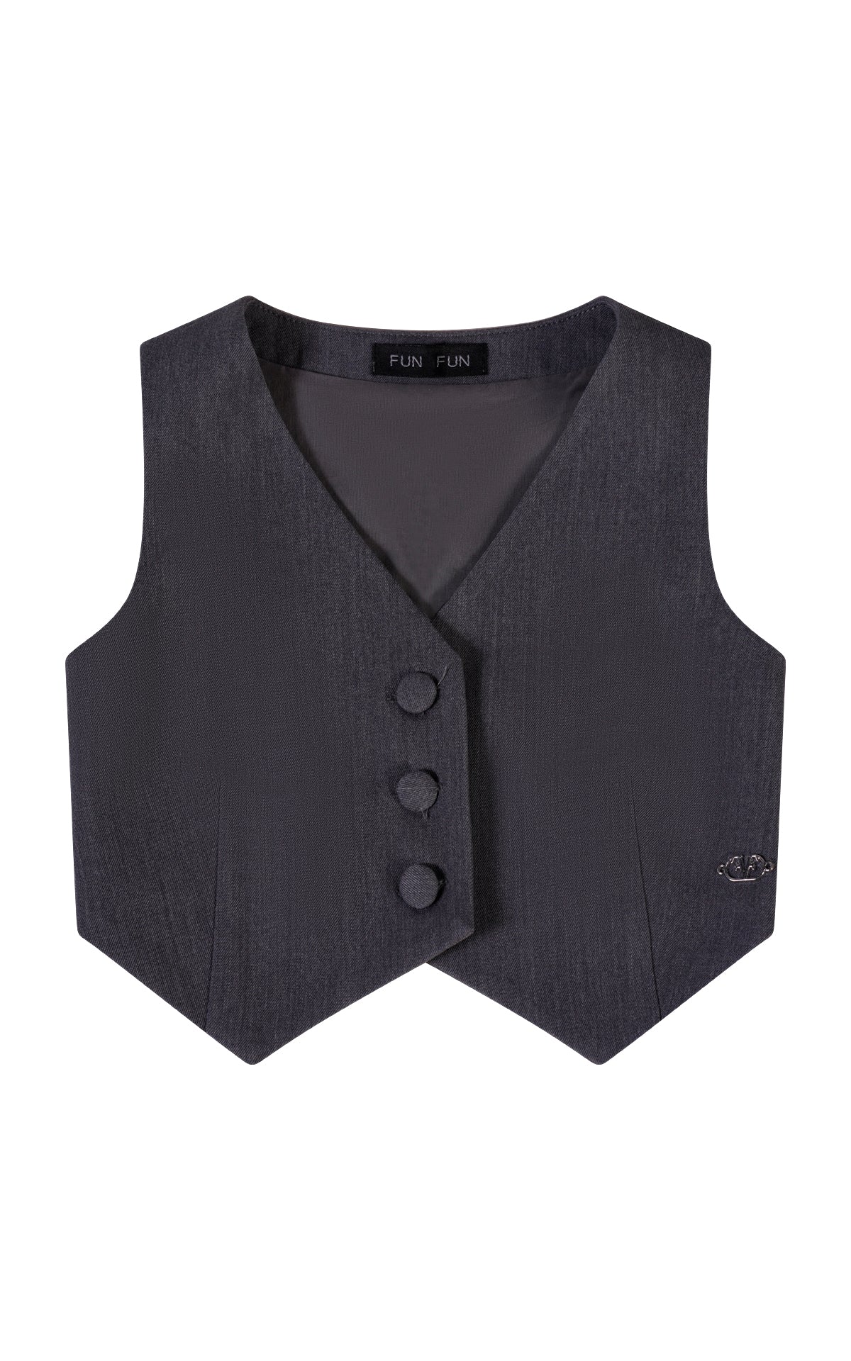 GILET IN TESSUTO EFFETTO MANO LANA CON CHIUSURA FRONTALE MEDIANTE BOTTONI IN TONO IN TESSUTO. PLACCHETTA LOGO FRONTALE LATERALE .