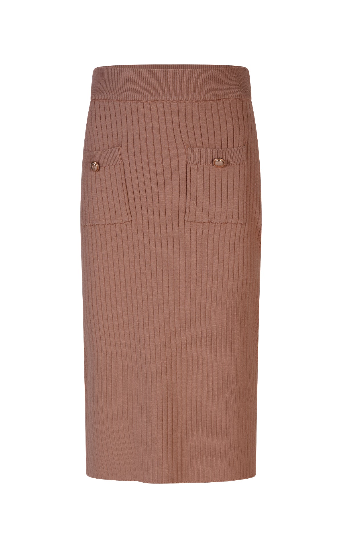 GONNA MIDI IN LANA A COSTE CON TASCHE SUL DAVANTI E BOTTONI GOLD DECORATIVI
