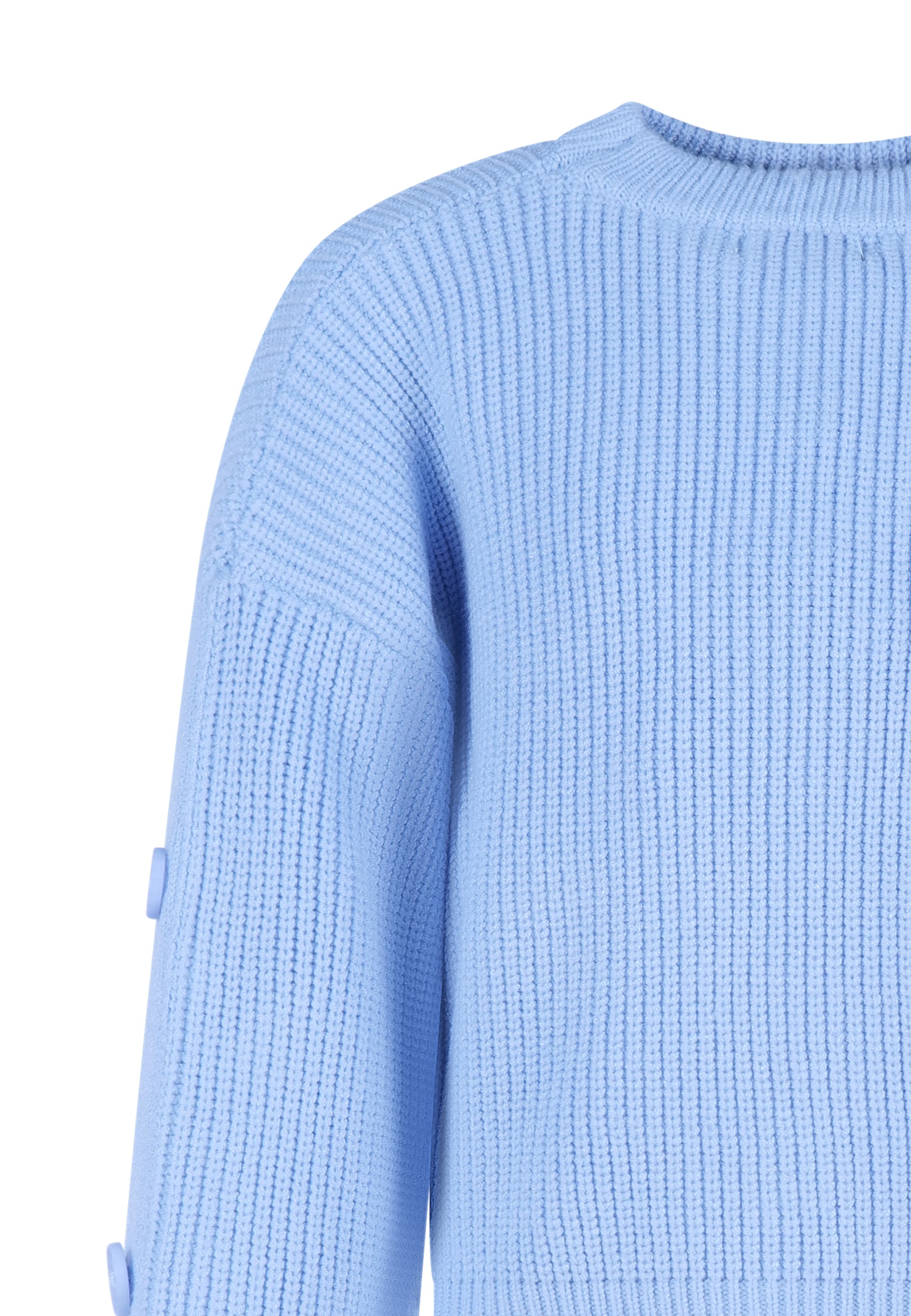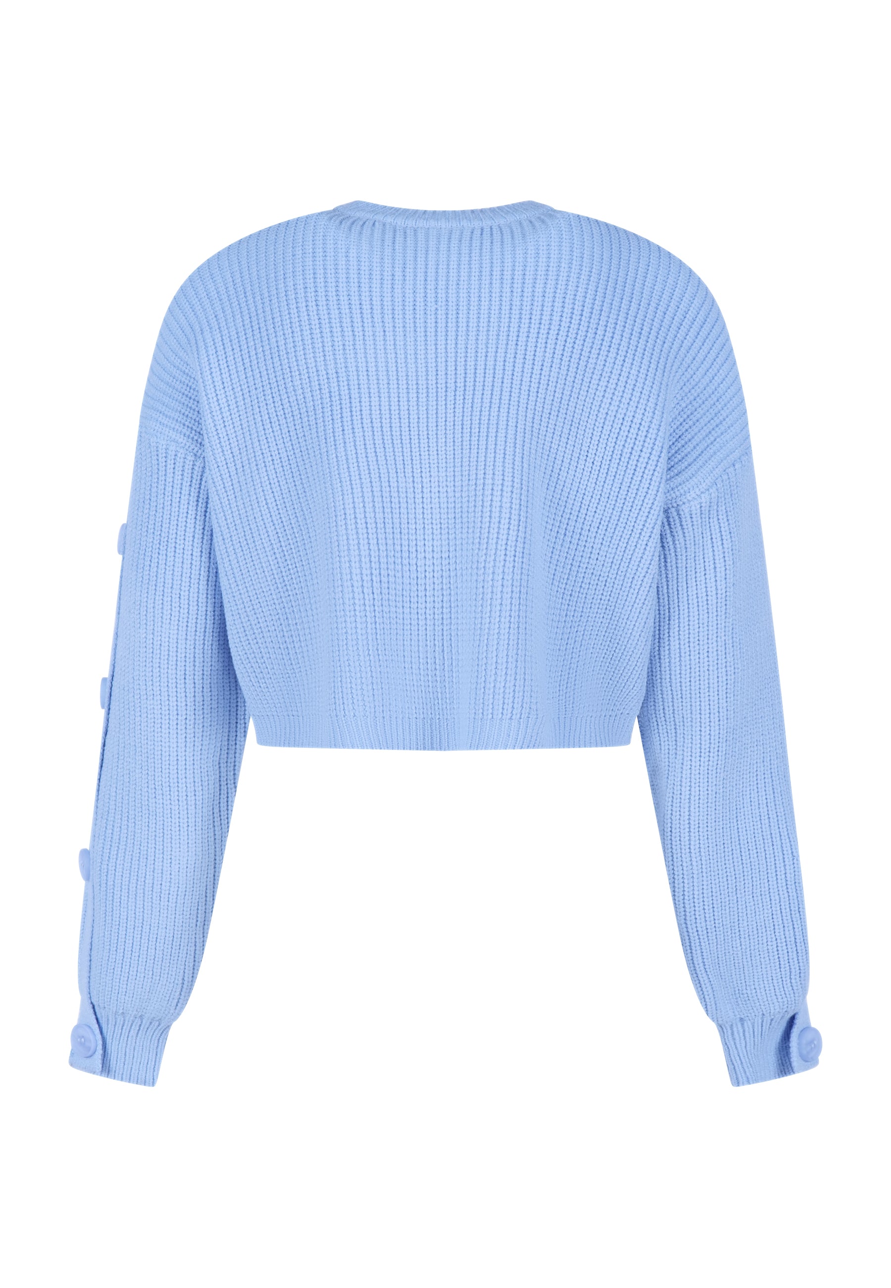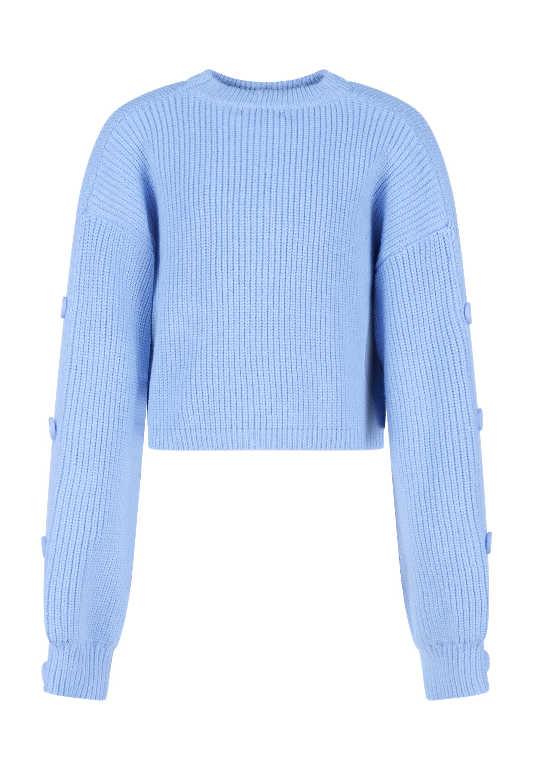 MAGLIA CROP IN LANA SMACCHINATA A COSTE CON BOTTONI CUCITI LUNGO LE MANICHE IN TONO.