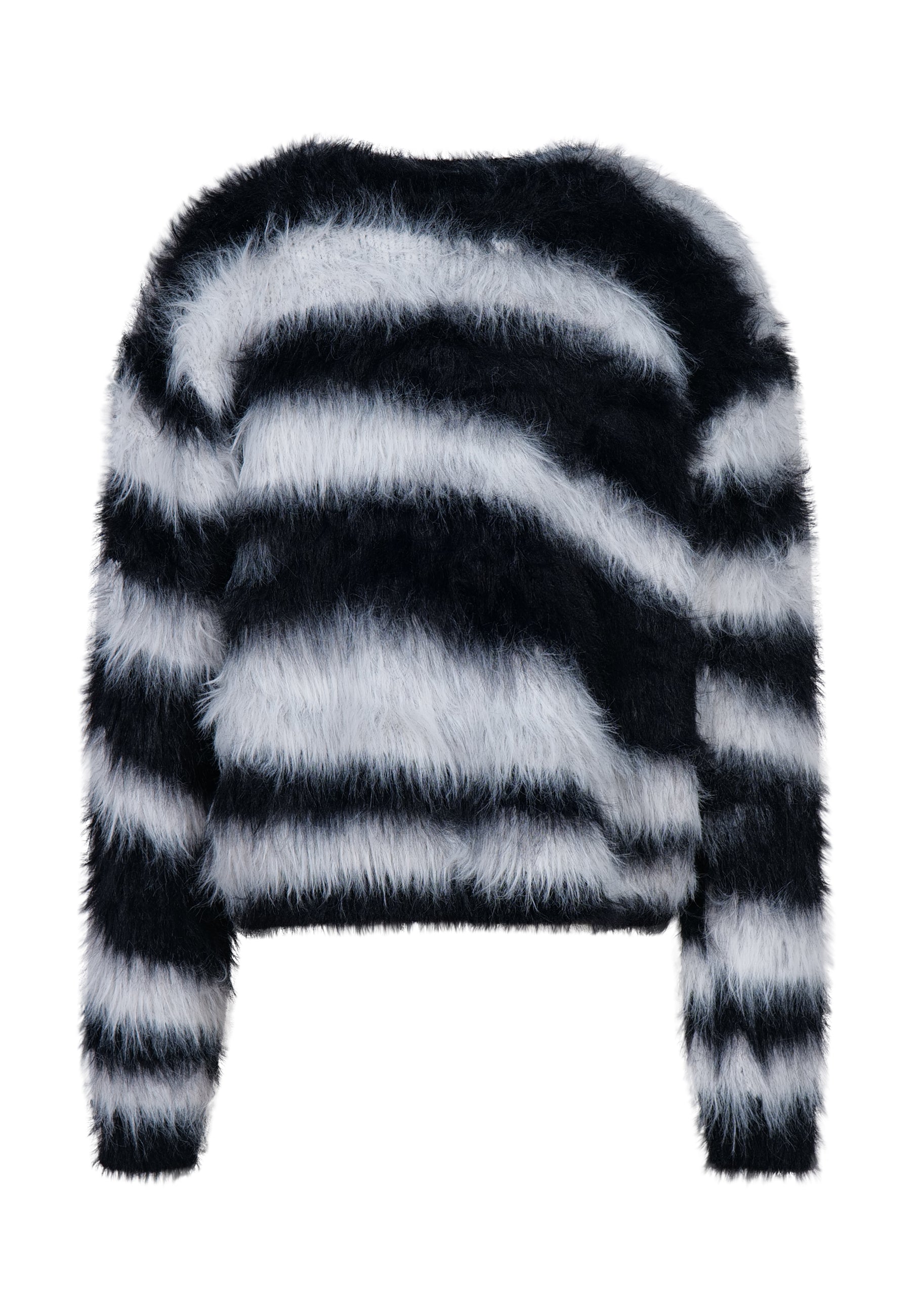 Pullover in maglia jacquard effetto pelo. Collo rotondo e maniche lunghe . Finiture a coste.