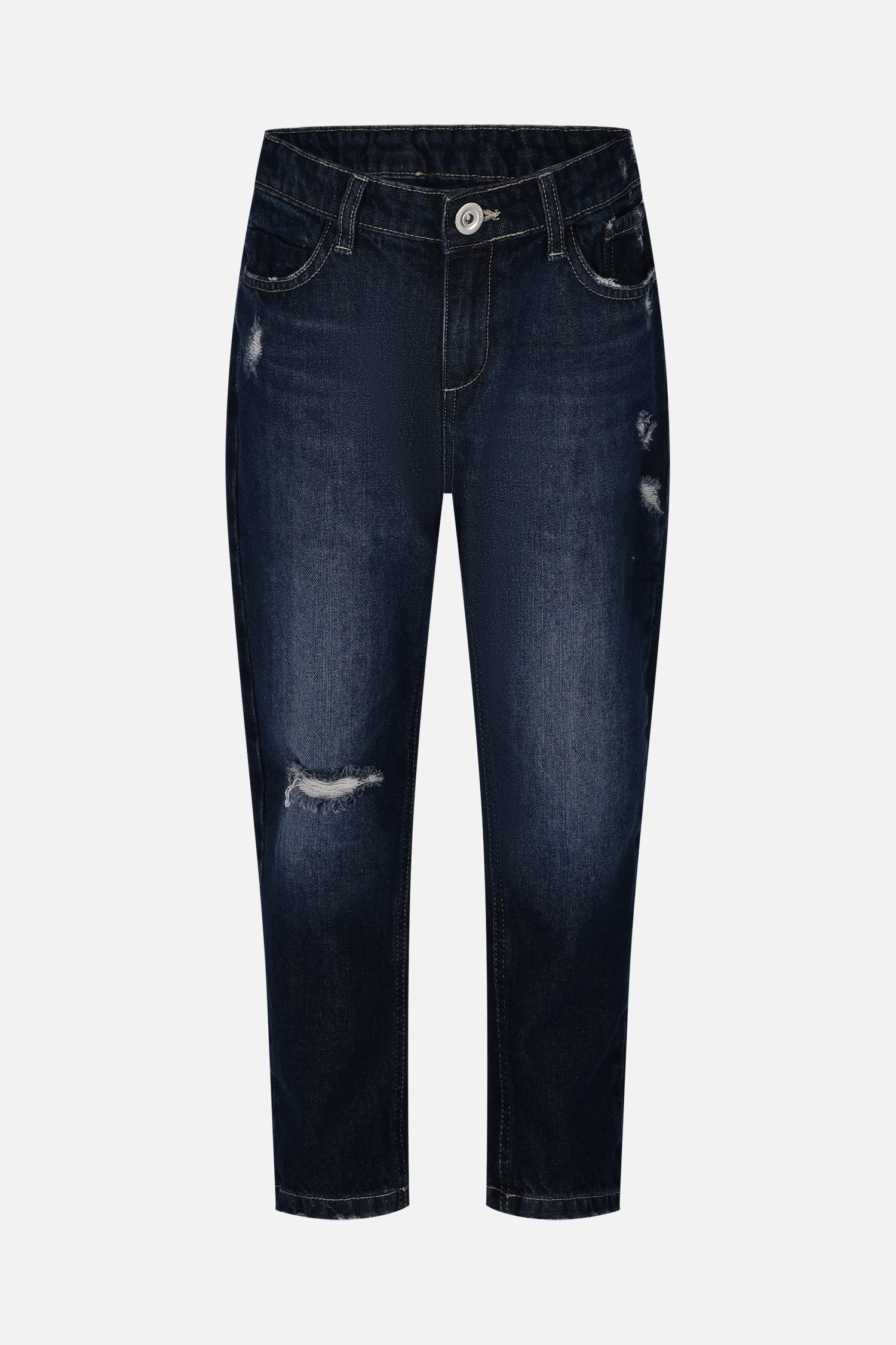 Singolo strappo piccolo sul ginocchio, un dettaglio trendy che aggiunge un tocco di originalità e personalità.
