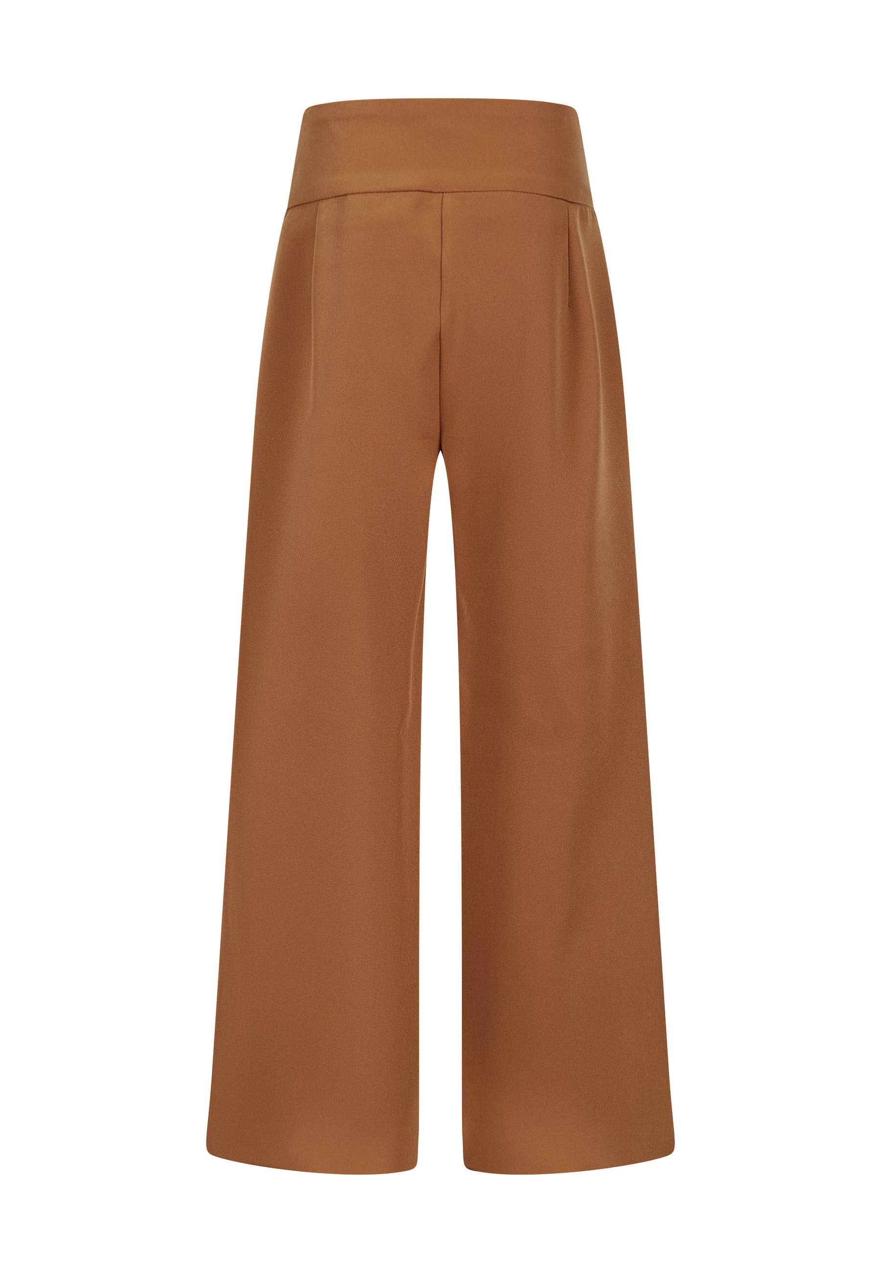PANTALONI SVASATI TESSUTO TECNICO VITA ALTA CON CUCITURE E NERVINE FRONTALI CHIUSURA FIANCO MEDIANTE ZIP INVISIBILE