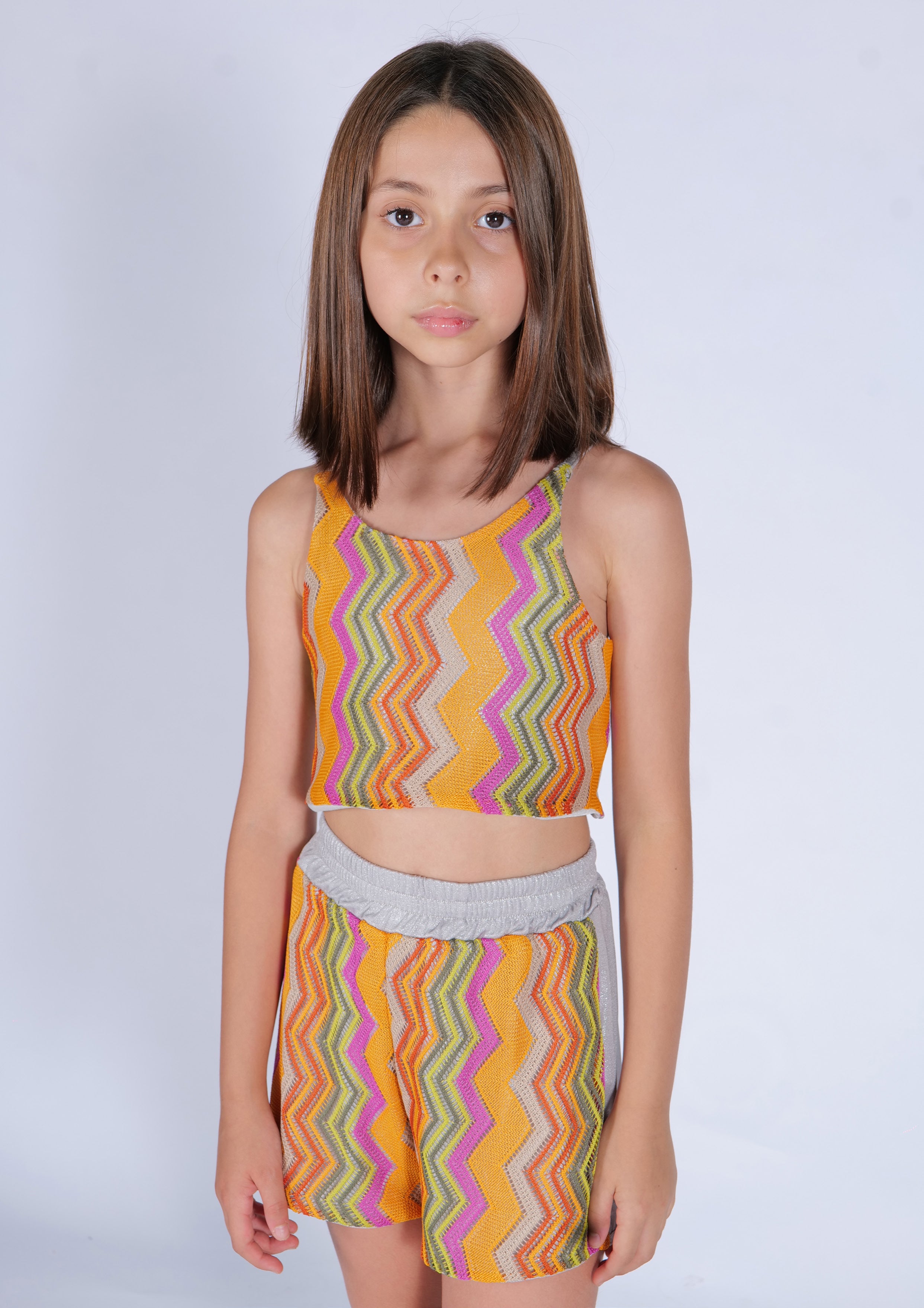 TOP CORTO IN MAGLIA LAVORATA MULTICOLOR HLOVE
