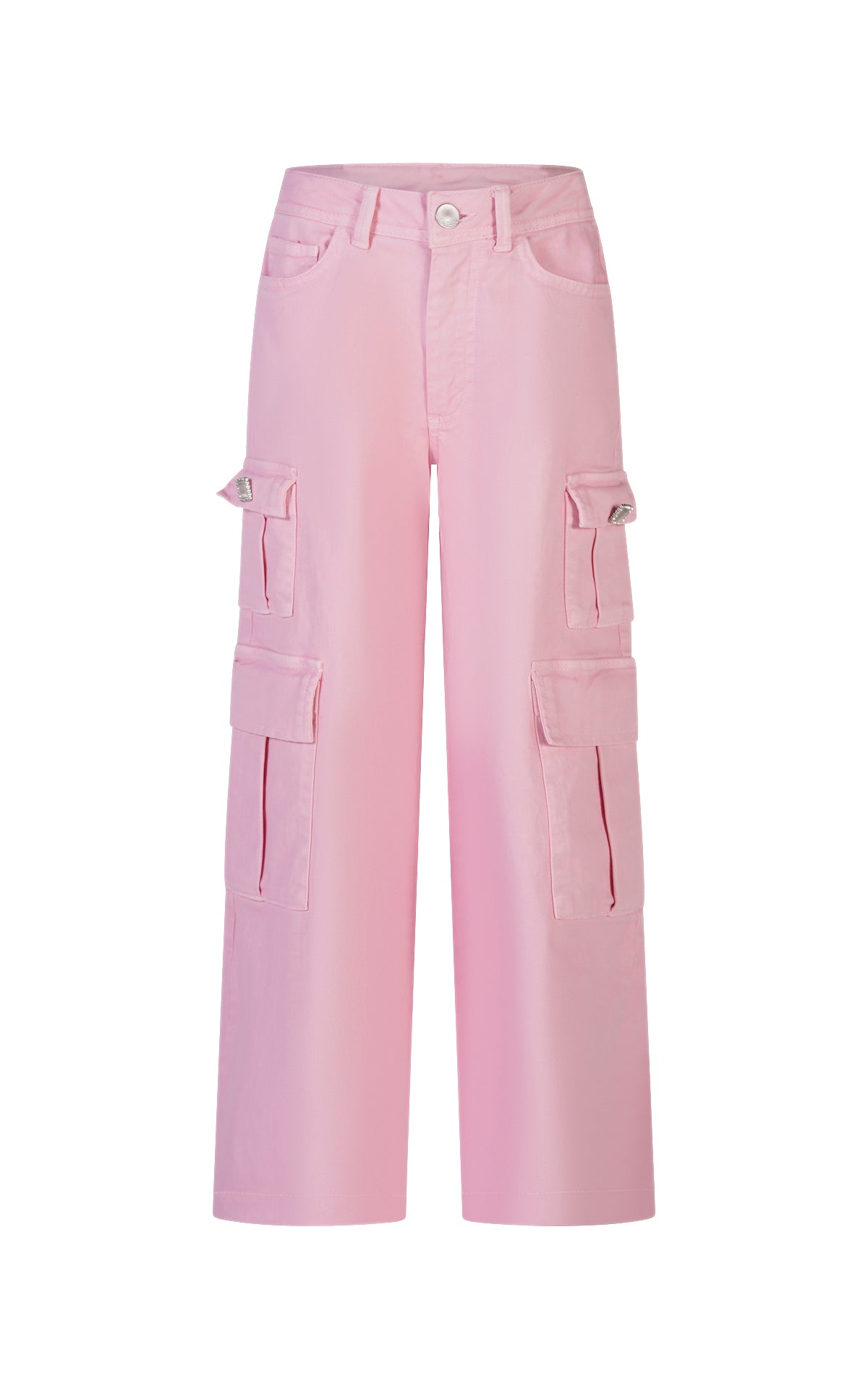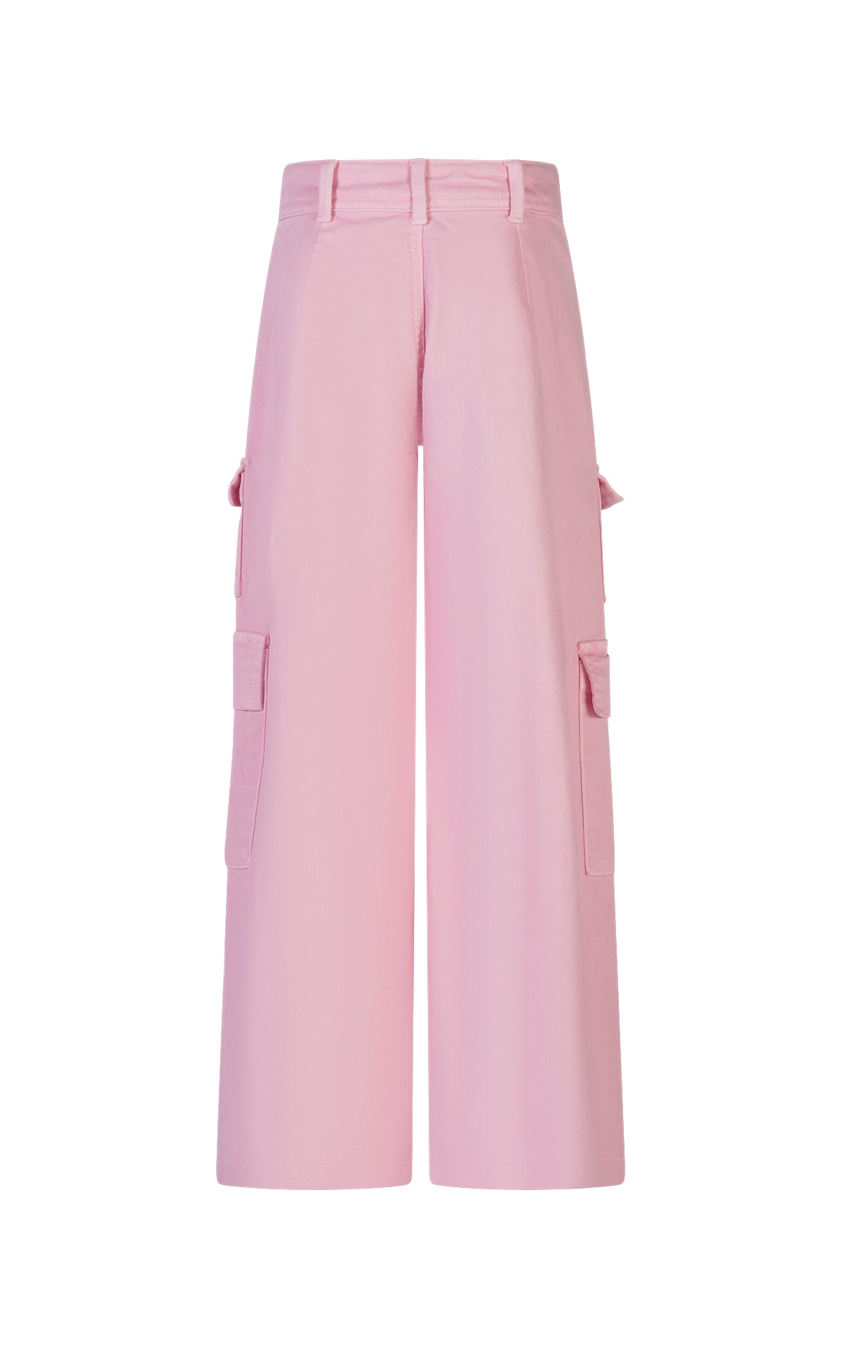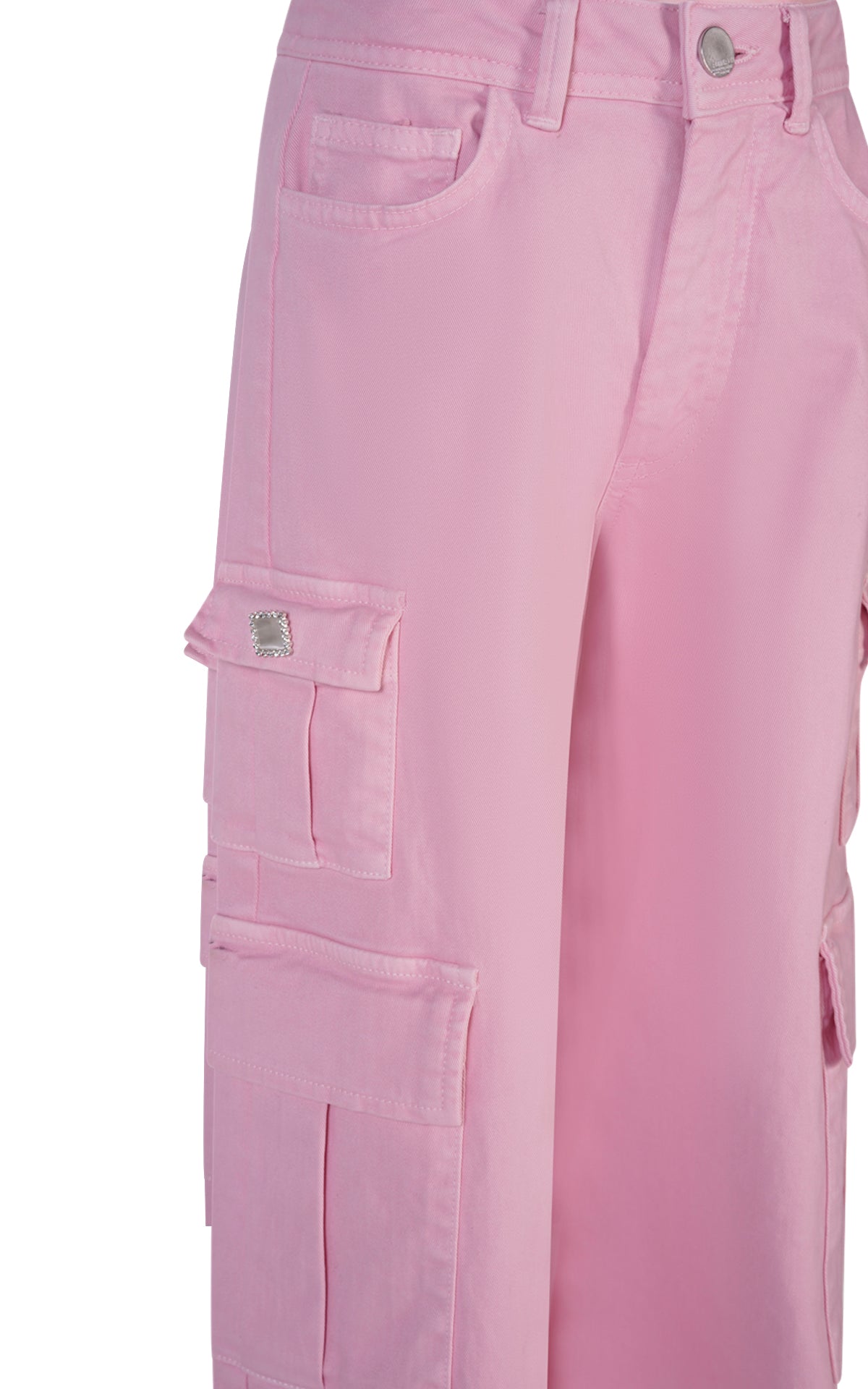 Pantalone modello cargo dal taglio ampio sul fondo, realizzato in tessuto denim tinto di alta qualità. Chiusura frontale con zip e bottone chiodo logato per un tocco distintivo. La vita è elasticizzata con asole per massimo comfort e vestibilità. Tasche sagomate sul fondo e grandi tasconi funzionali applicati sulle gambe, chiusi da bottoni gioiello per un dettaglio elegante e pratico. Perfetto per look casual urbani e dinamici, adatto a clienti in tutto il mondo.