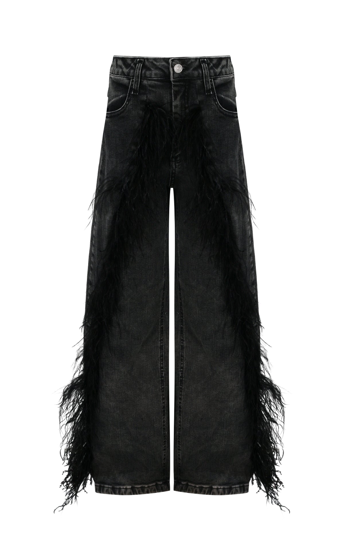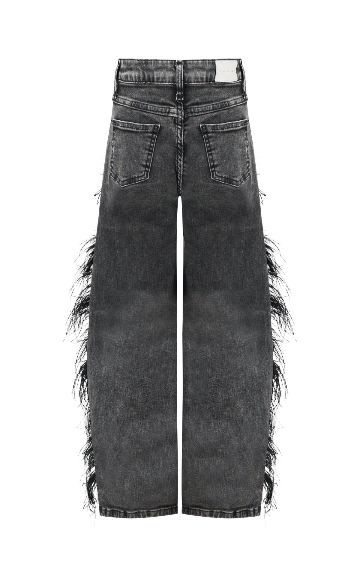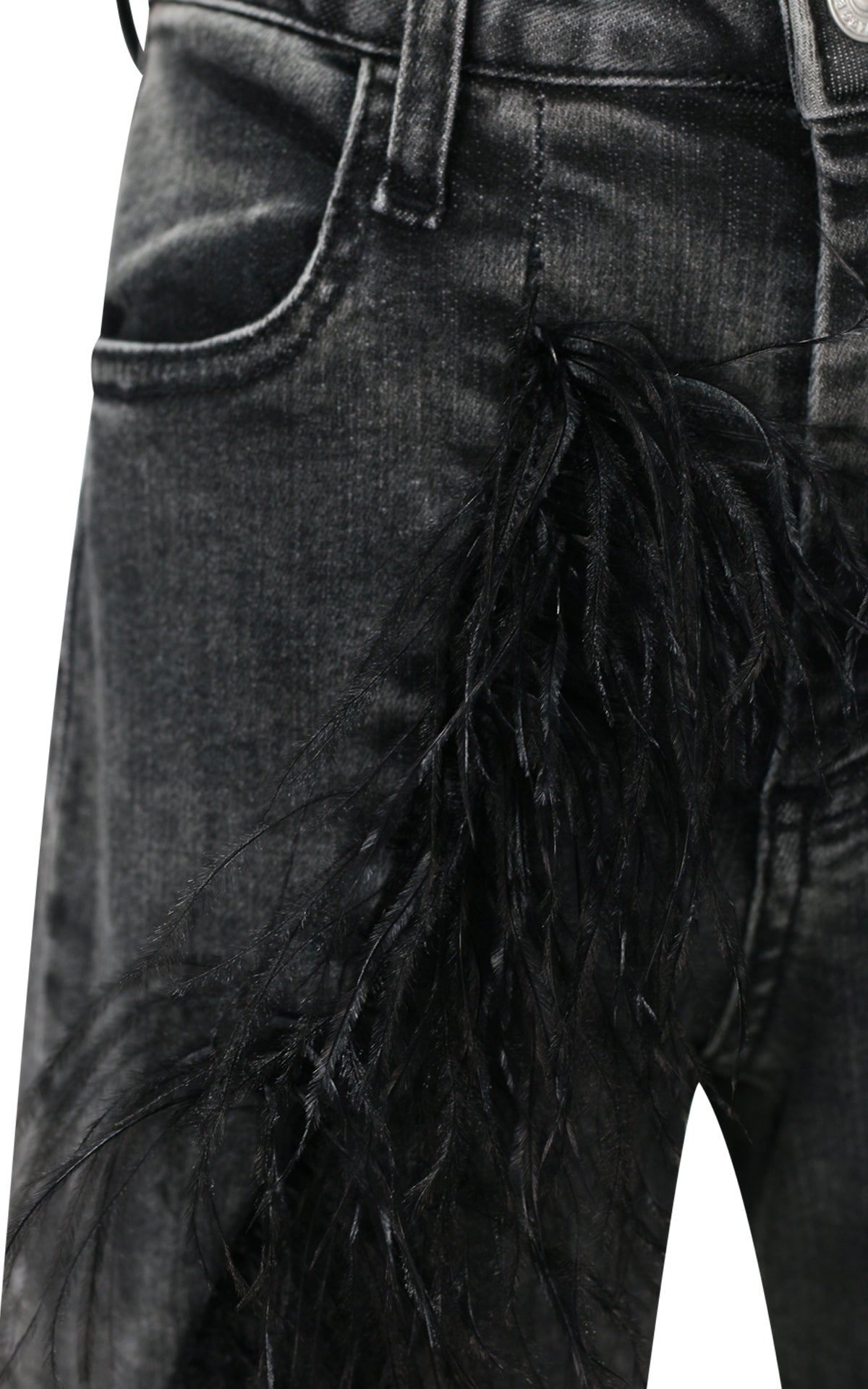 Pantalone Balloon in Denim Grey con Tagli Decorativi e Piume – Salpina Logo sul Retro