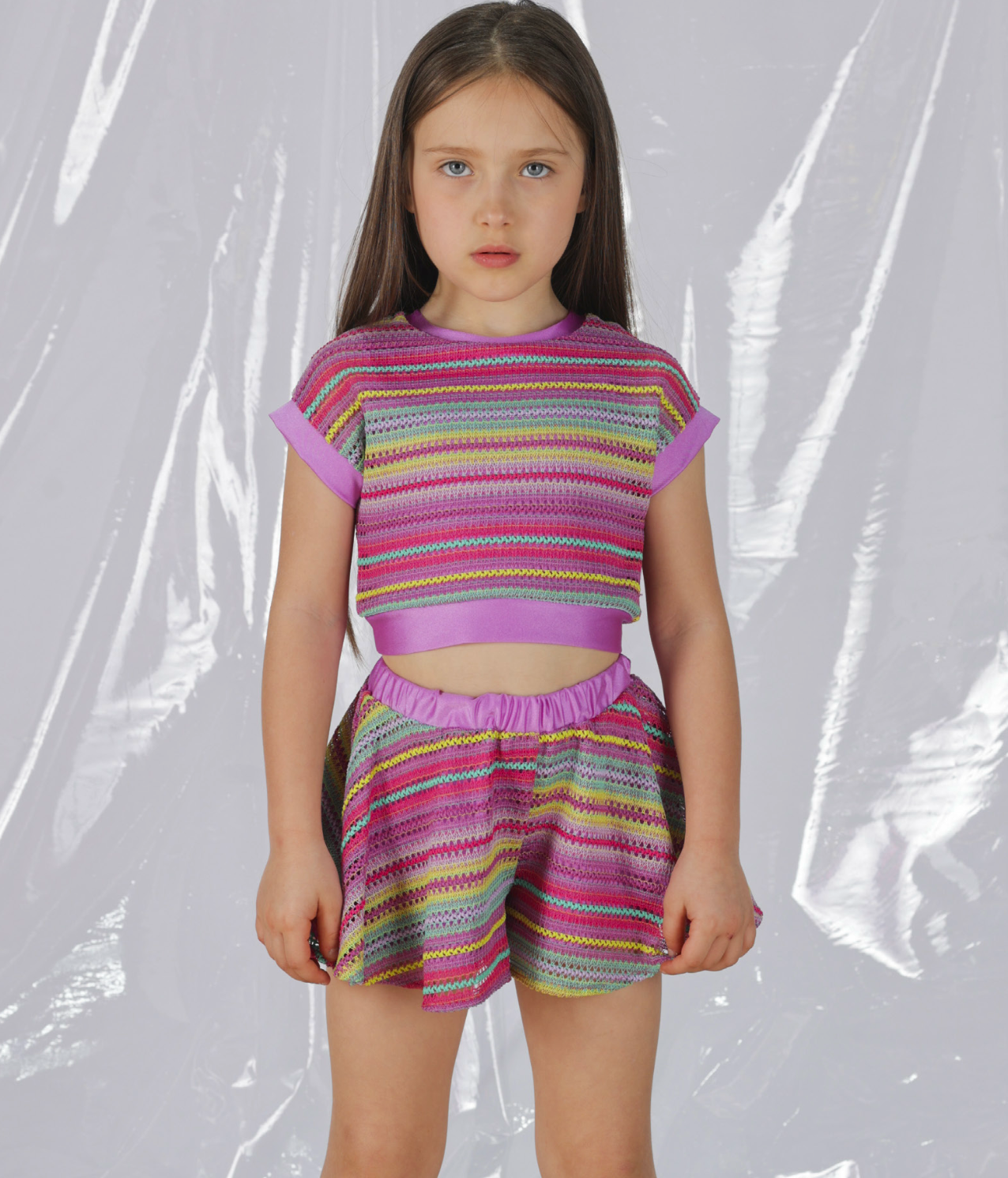 Short Fun&Fun con fantasia multicolor. Un capo estivo vivace e giocoso, perfetto per aggiungere un tocco di colore e allegria al tuo guardaroba.