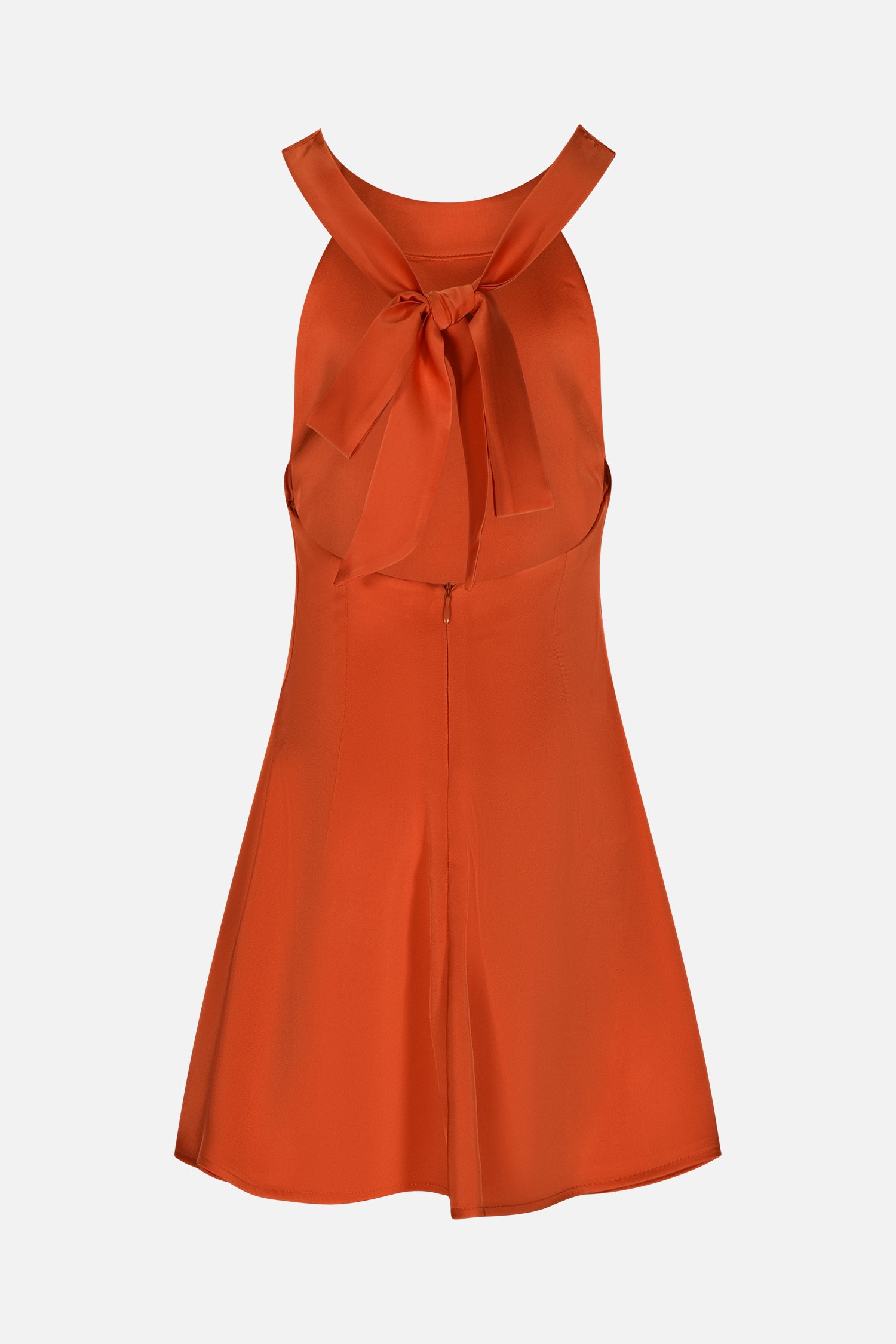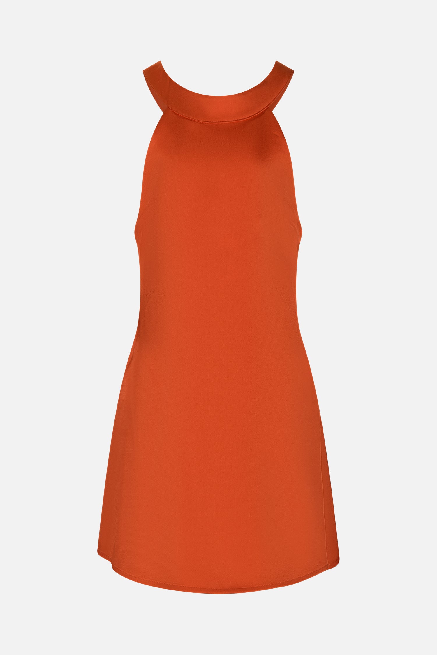 Vestito Corto con Scollo Halter in Tessuto Satinato