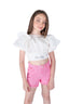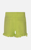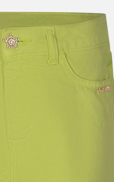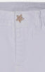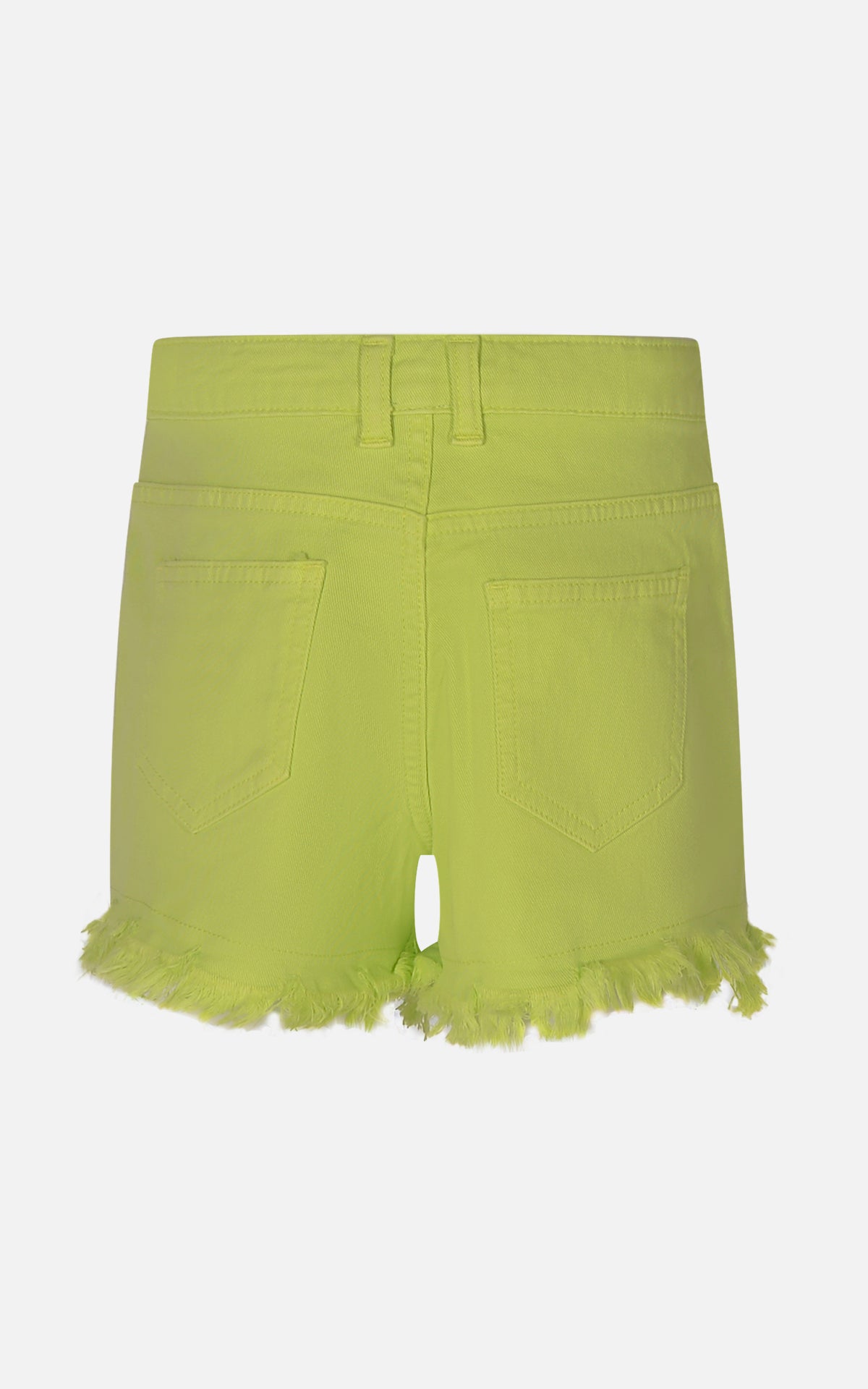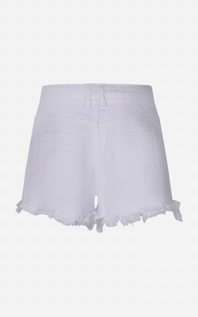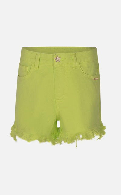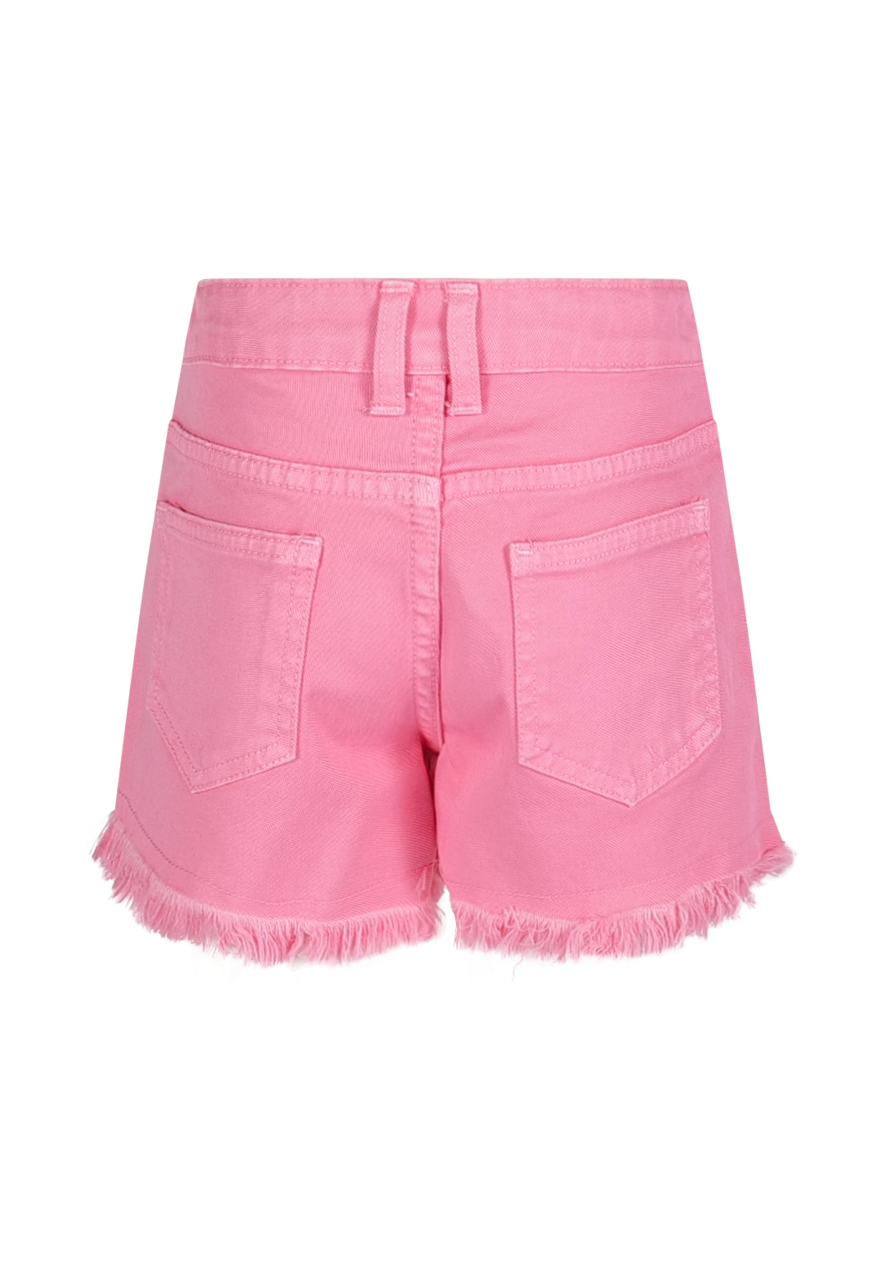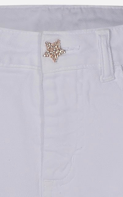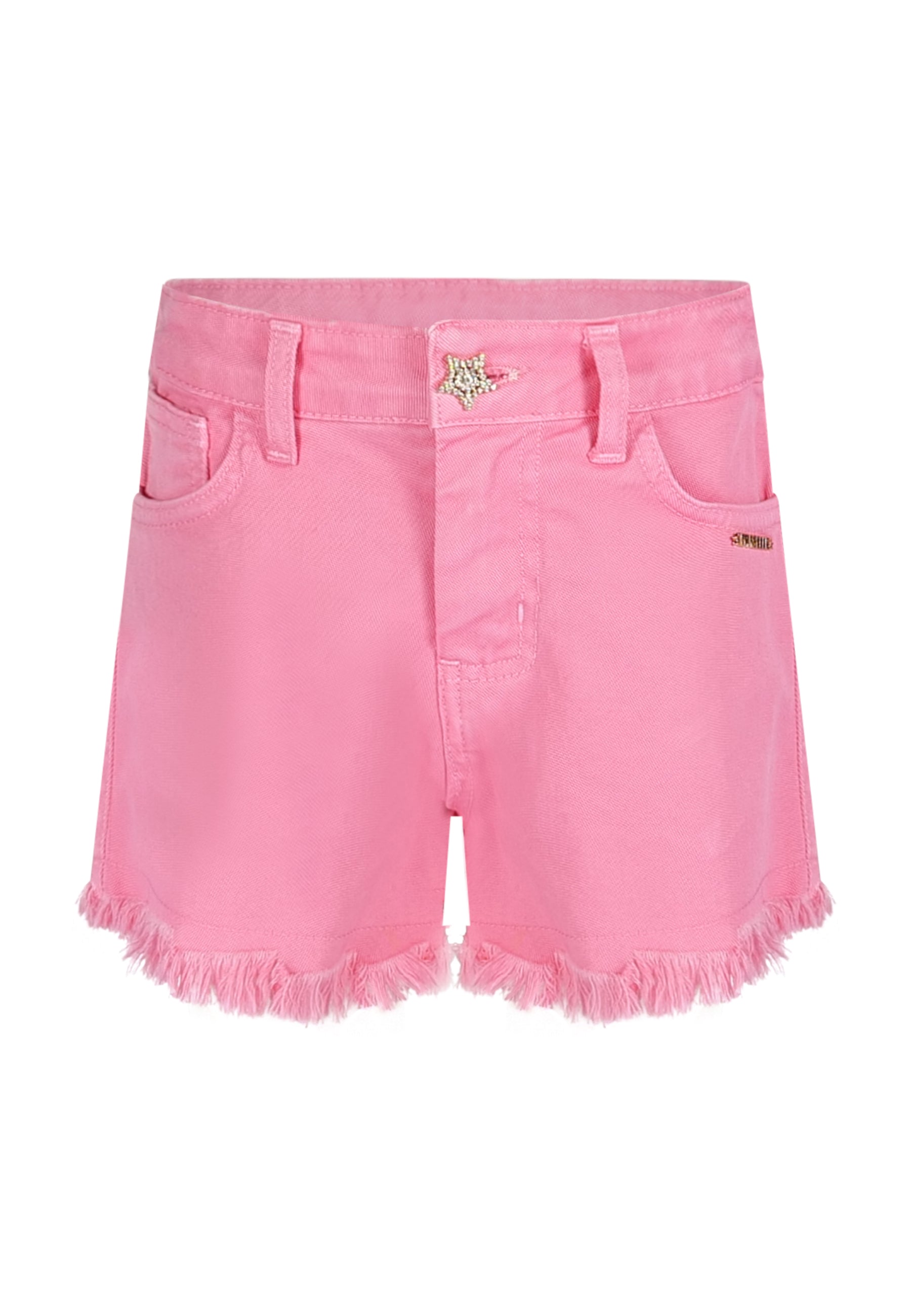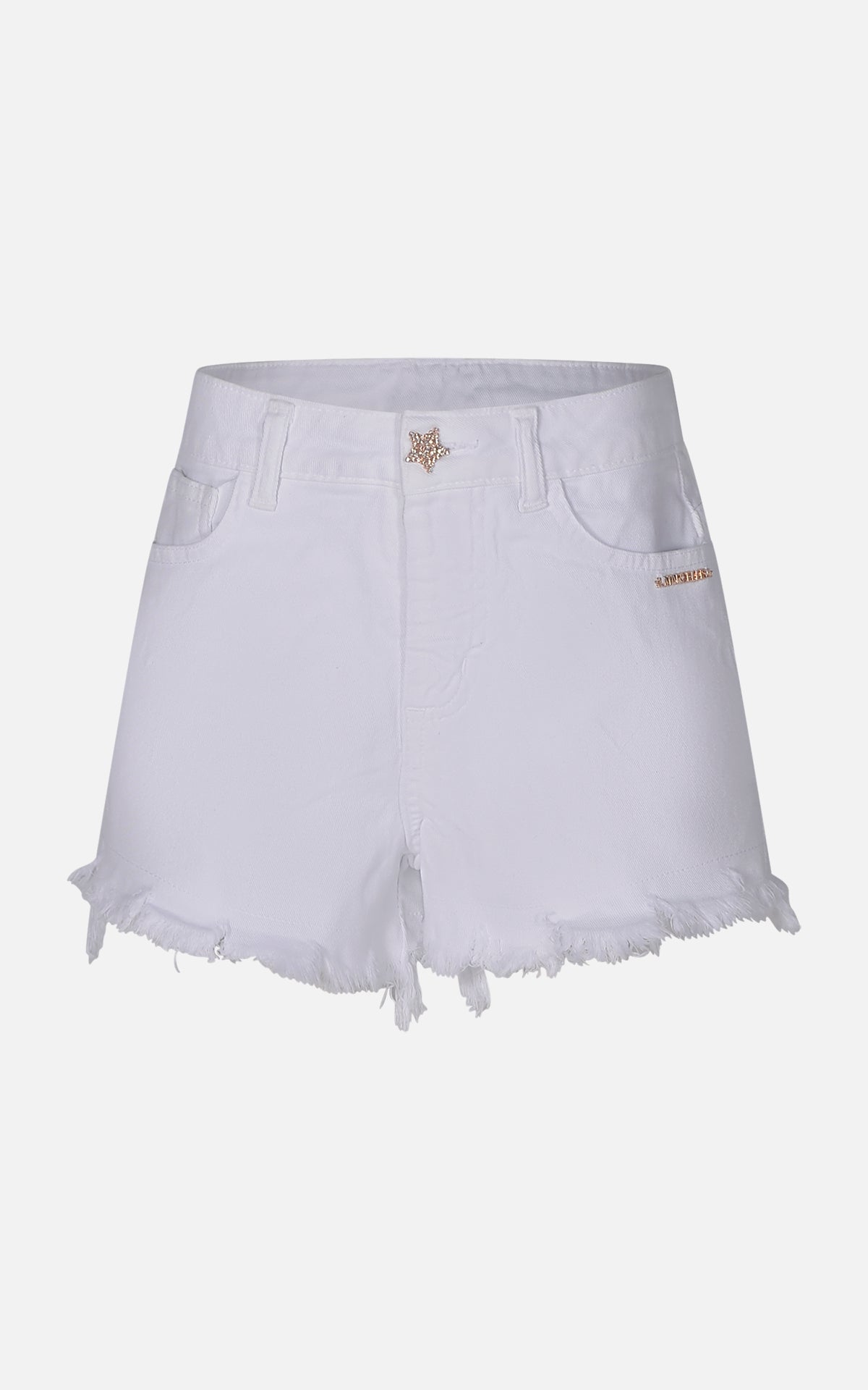 Pantaloncini in jeans con taglio vivo e bottone a stella.