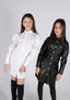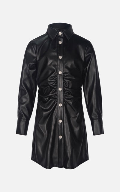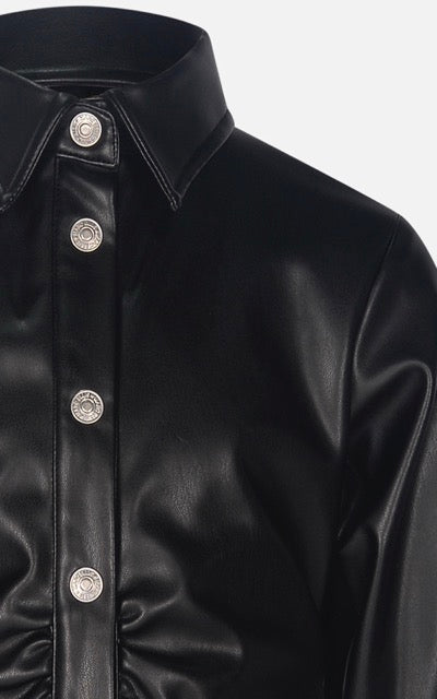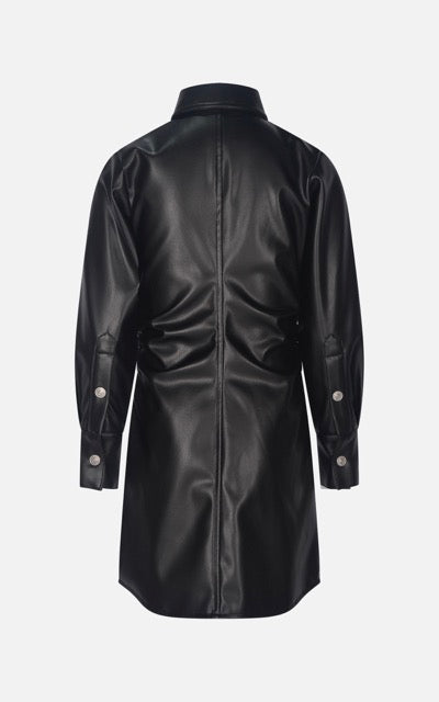 ABITO CAMICIA IN SIMILPELLE, ABBOTTONATURA CENTRO DAVANTI MEDIANTE BOTTONI A PRESSIONE NIKEL, ARRICCIO NEI FIANCHI