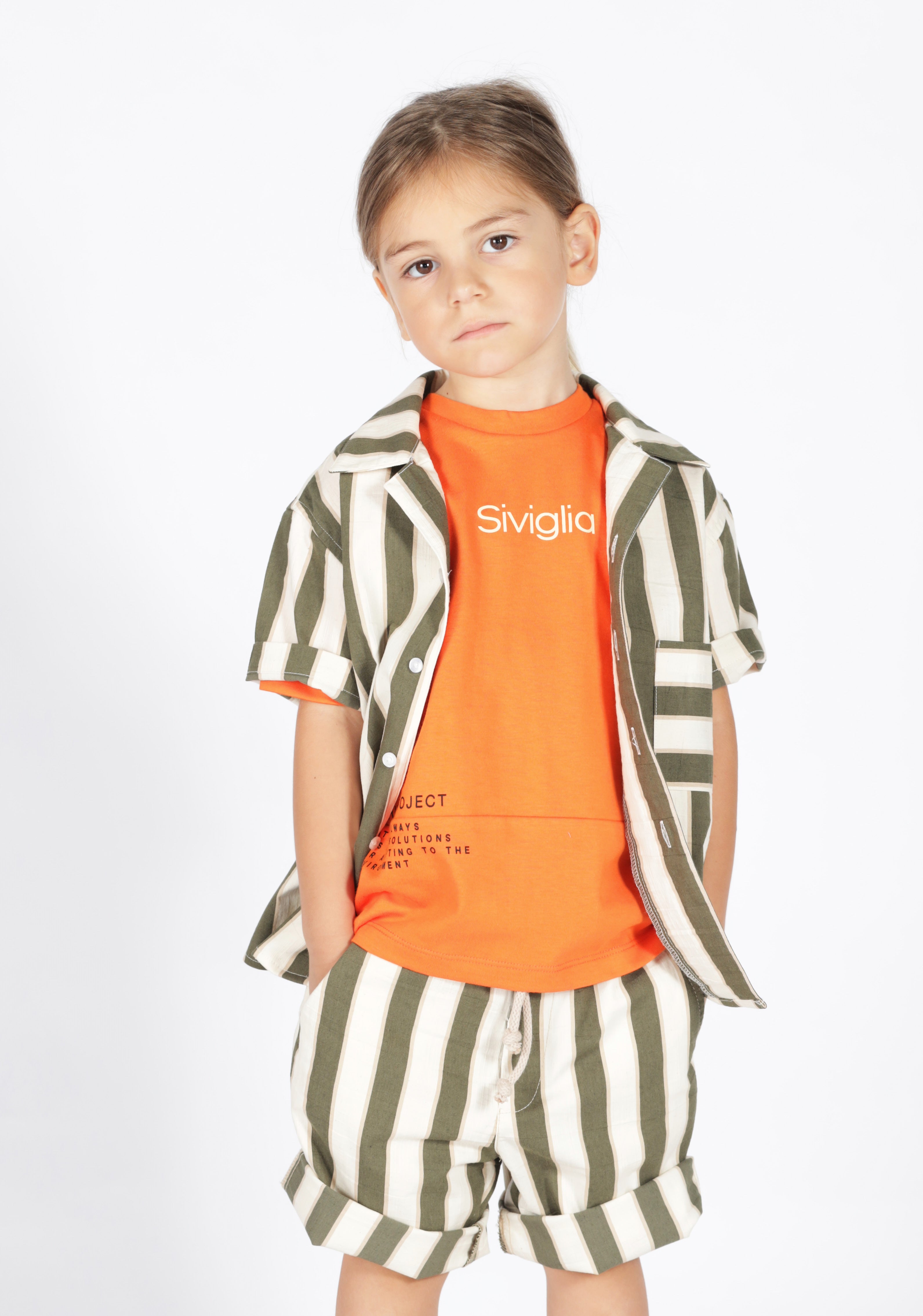 Il pantalaccio bermuda a righe Siviglia in cotone è il capo perfetto per i giorni più caldi. Con il suo design a righe verdi su base white, questo bermuda unisce comfort e stile, perfetto per le avventure estive dei più piccoli.