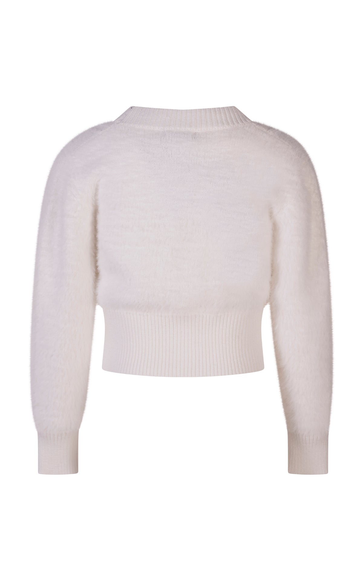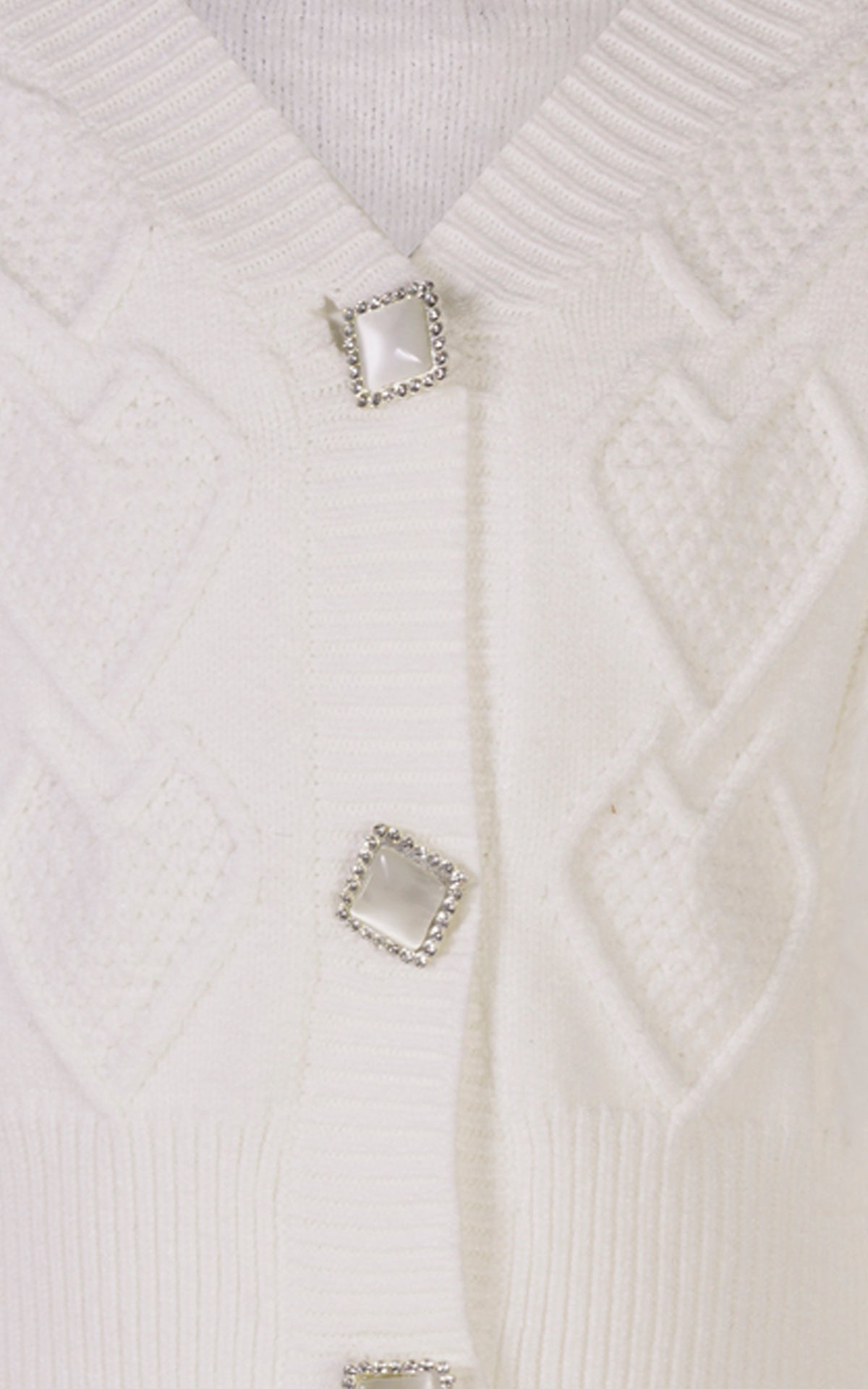 Cardigan in Lana Effetto Pelo con Bottoni Gioiello e Dettaglio Cuore