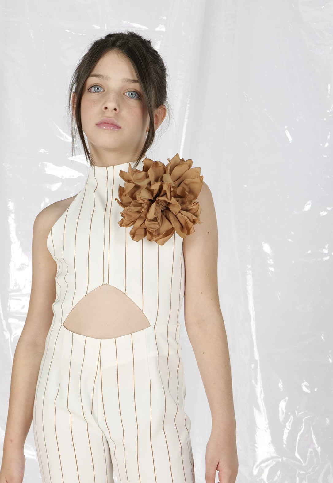 Applicazione a fiore, un dettaglio romantico e trendy che aggiunge un tocco di originalità e femminilità.
