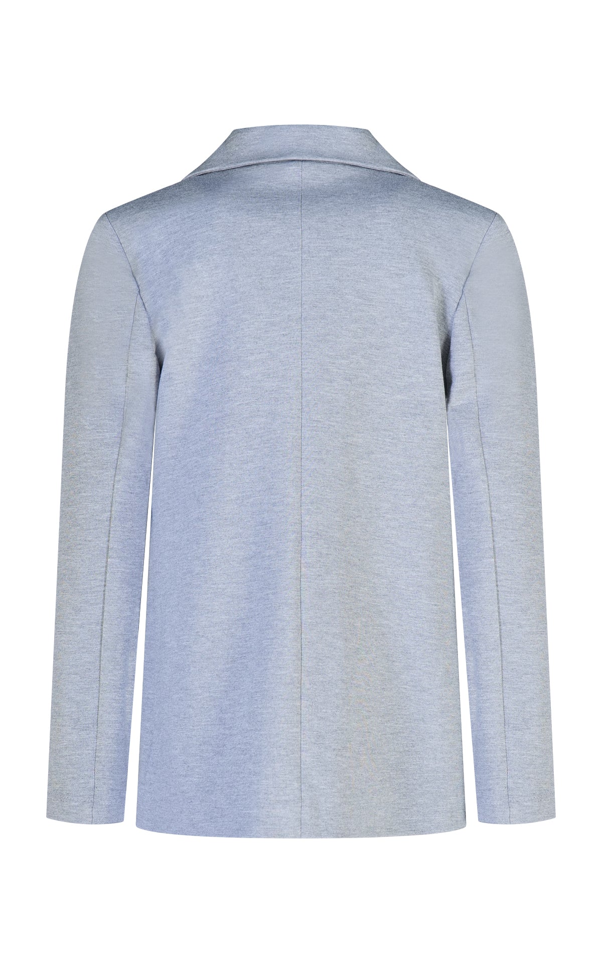 bLAZER LUNGO IN TESSUTO PUNTO MILANO MELANGE CON TASCHE A TOPPA SUL DAVANTI E BOTTONI NAPOLENICI NIKEL PER APERTURA FUNZIONALE CENTRO DAVANTI