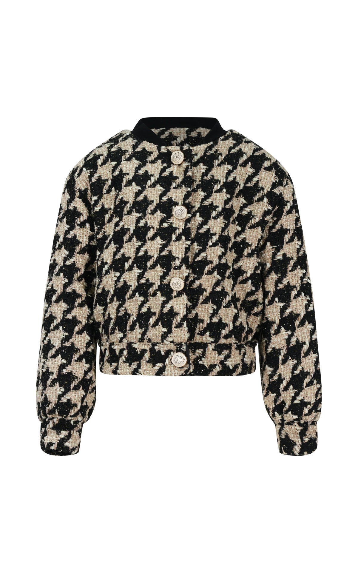 CAPOSPALLA MODELLO BOMBER IN TESSUTO JAQUARD OPERATO DISEGNO DIEP DE POUL CON POLSO E COLLO IN COSTINA E BOTTONI NAPOLEONICI GOLD PER APERTURA FUNZIONALE CENTRO DAVANTI