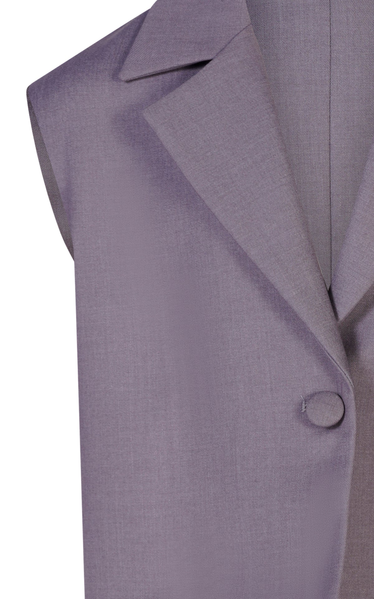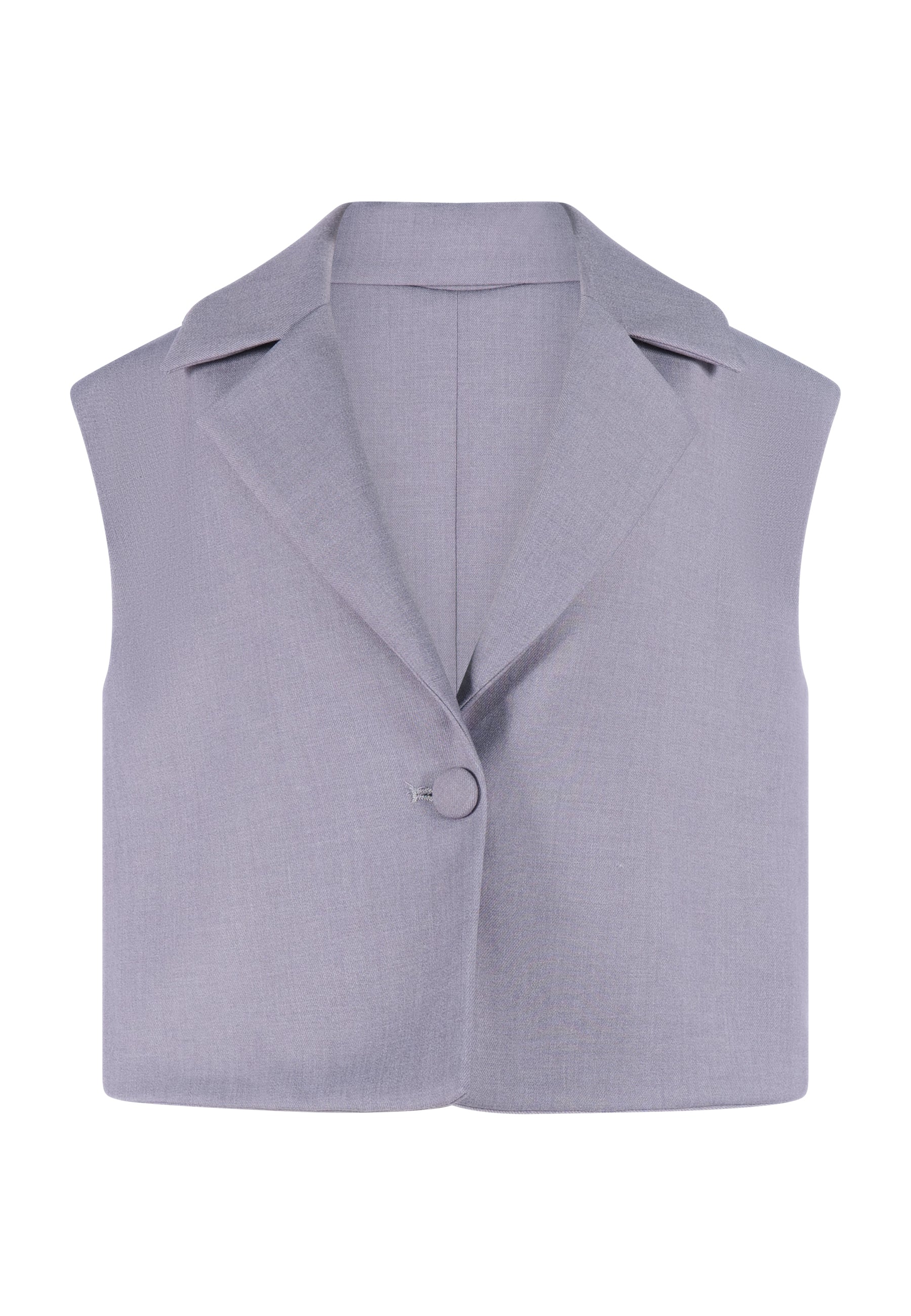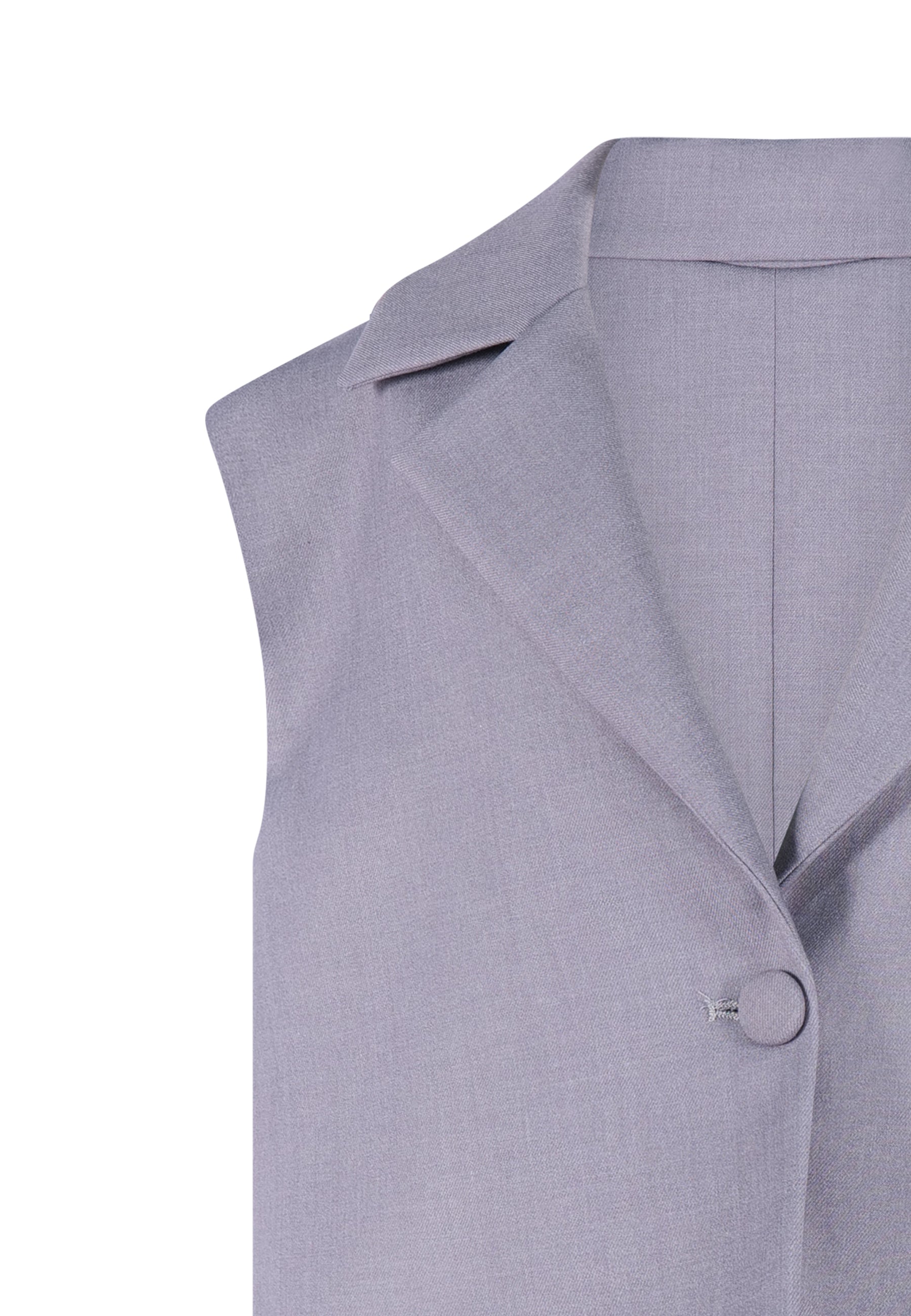 GILET OVER CORTO IN TESSUTO FRESCO LANA CON COLLO E REVER, APERTURA CENTRO DAVANTI MEDIANTE UN BOTTONE RIVESTITO.