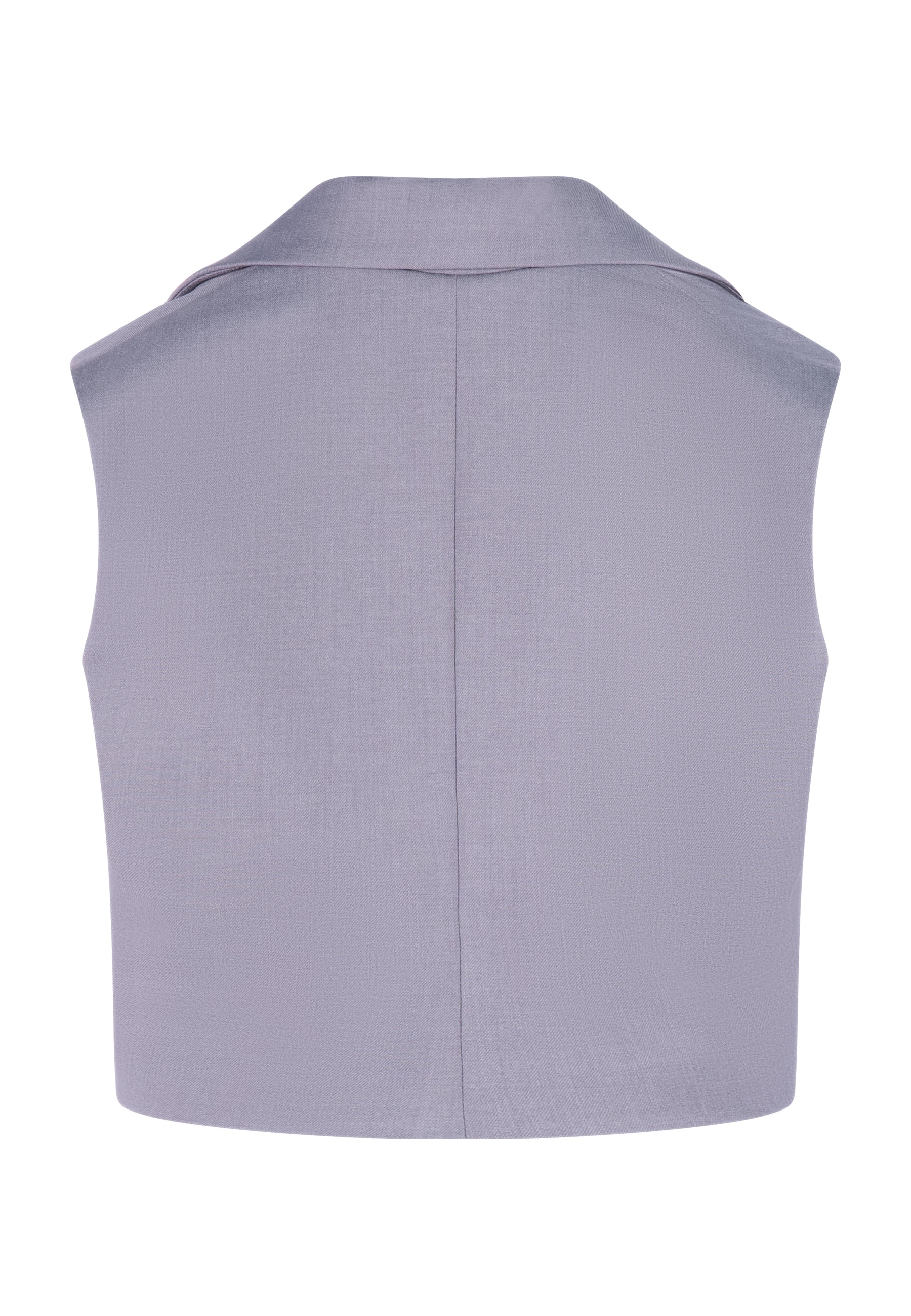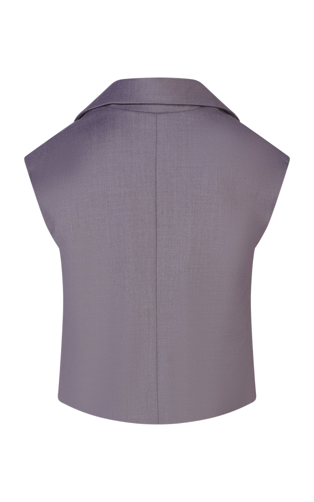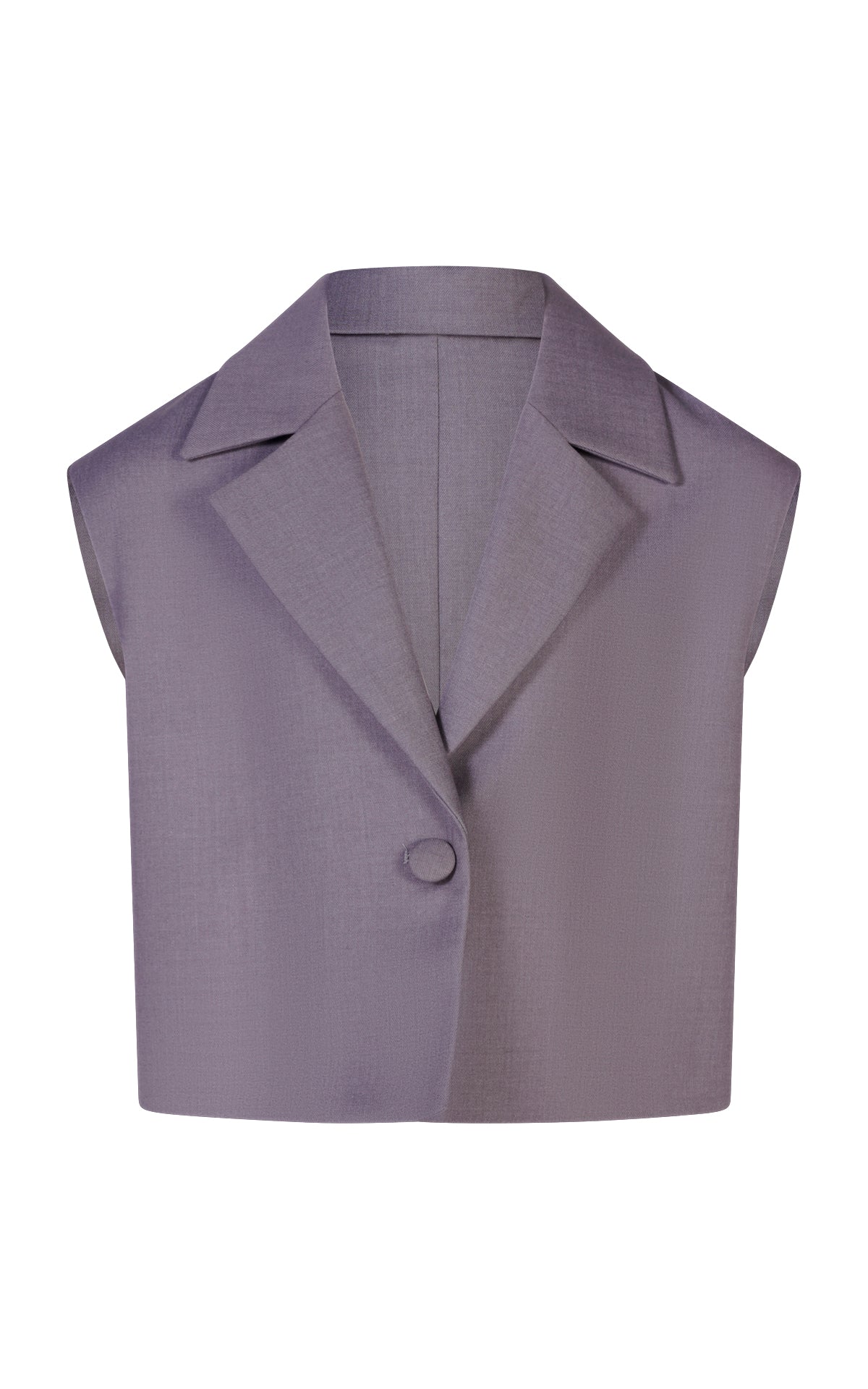 GILET OVER CORTO IN TESSUTO FRESCO LANA CON COLLO E REVER, APERTURA CENTRO DAVANTI MEDIANTE UN BOTTONE RIVESTITO.
