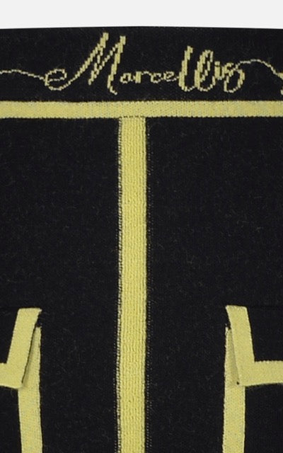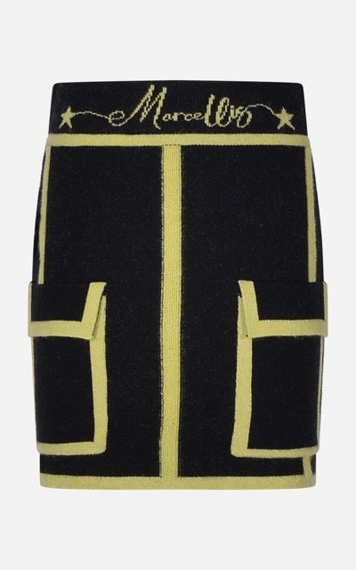 GONNA MINI IN LANA CON TASCHE E PATTE, INSERTI IN PUNTO SPUGNA COLORATI, INTARSIO LOGO E ELASTICO IN VITA